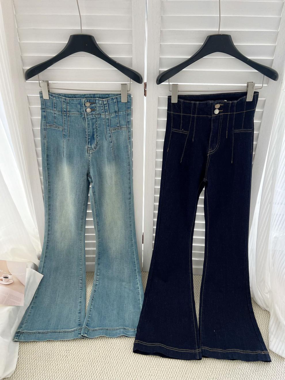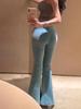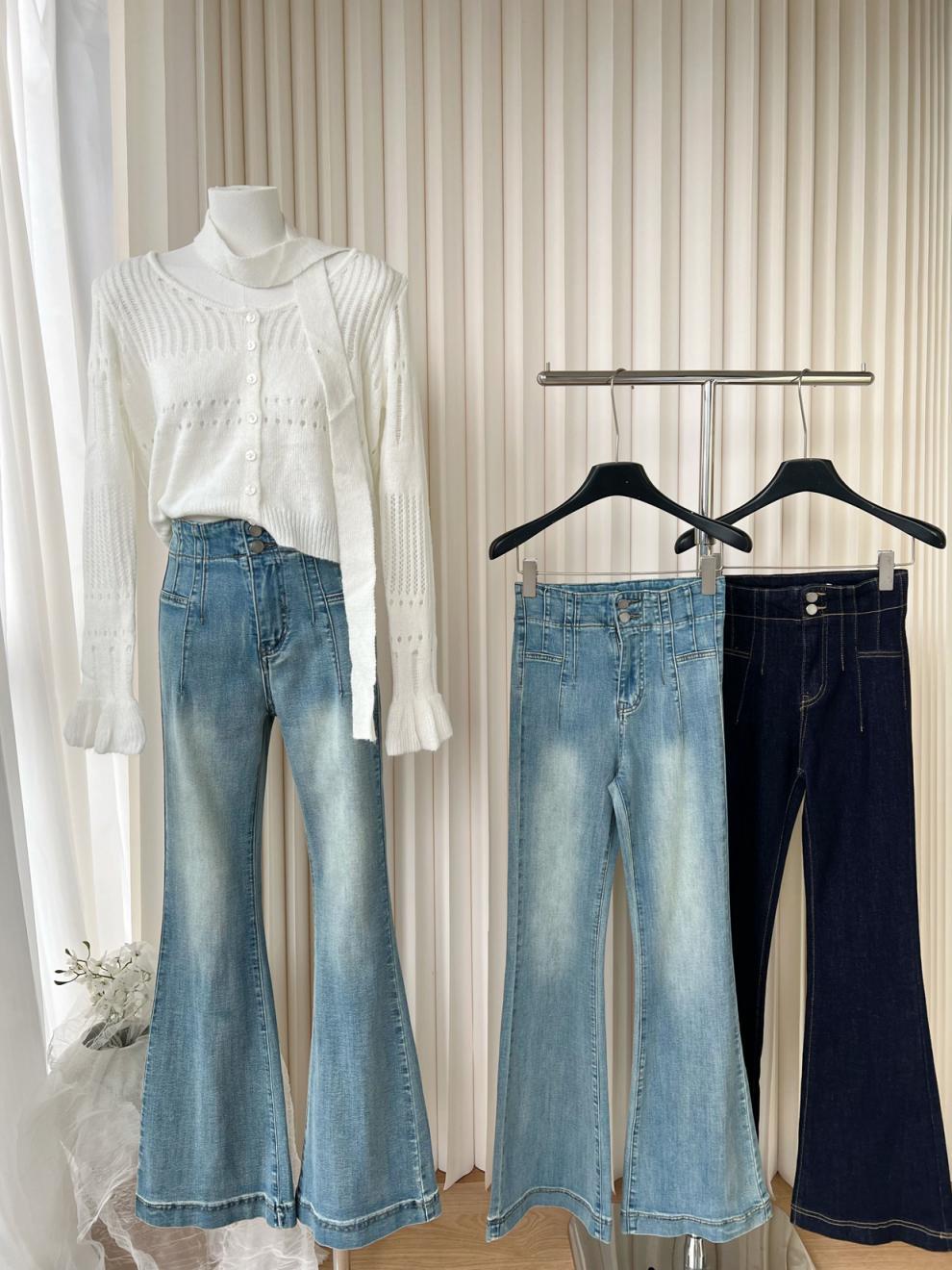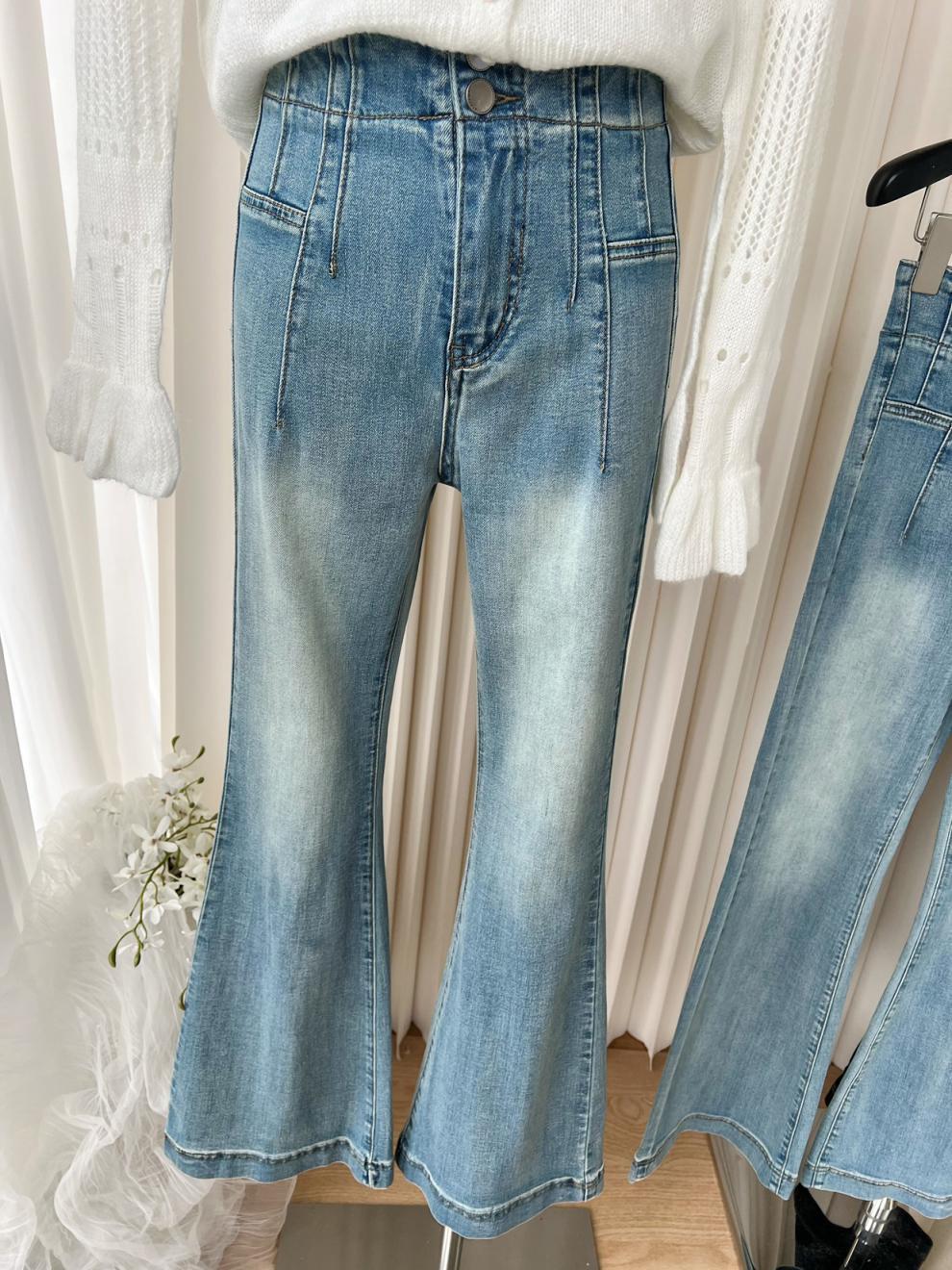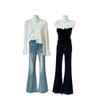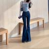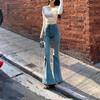 Pantalones vaqueros de algodón azul que levantan la cadera para mujer, elásticos, agradables para la piel, ajustados, de cintura alta y micro acampanados.