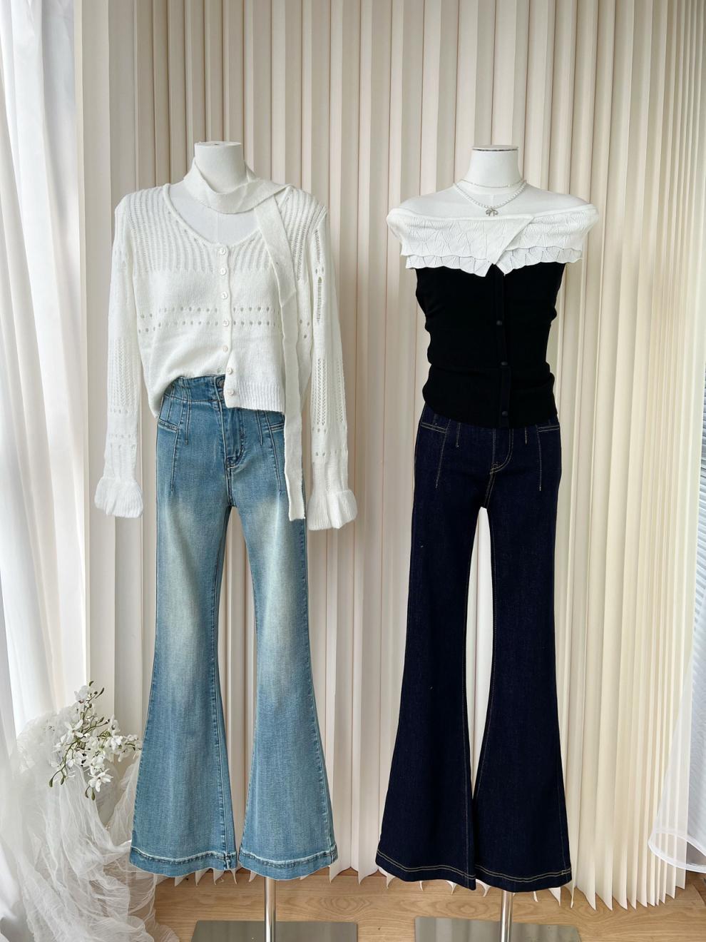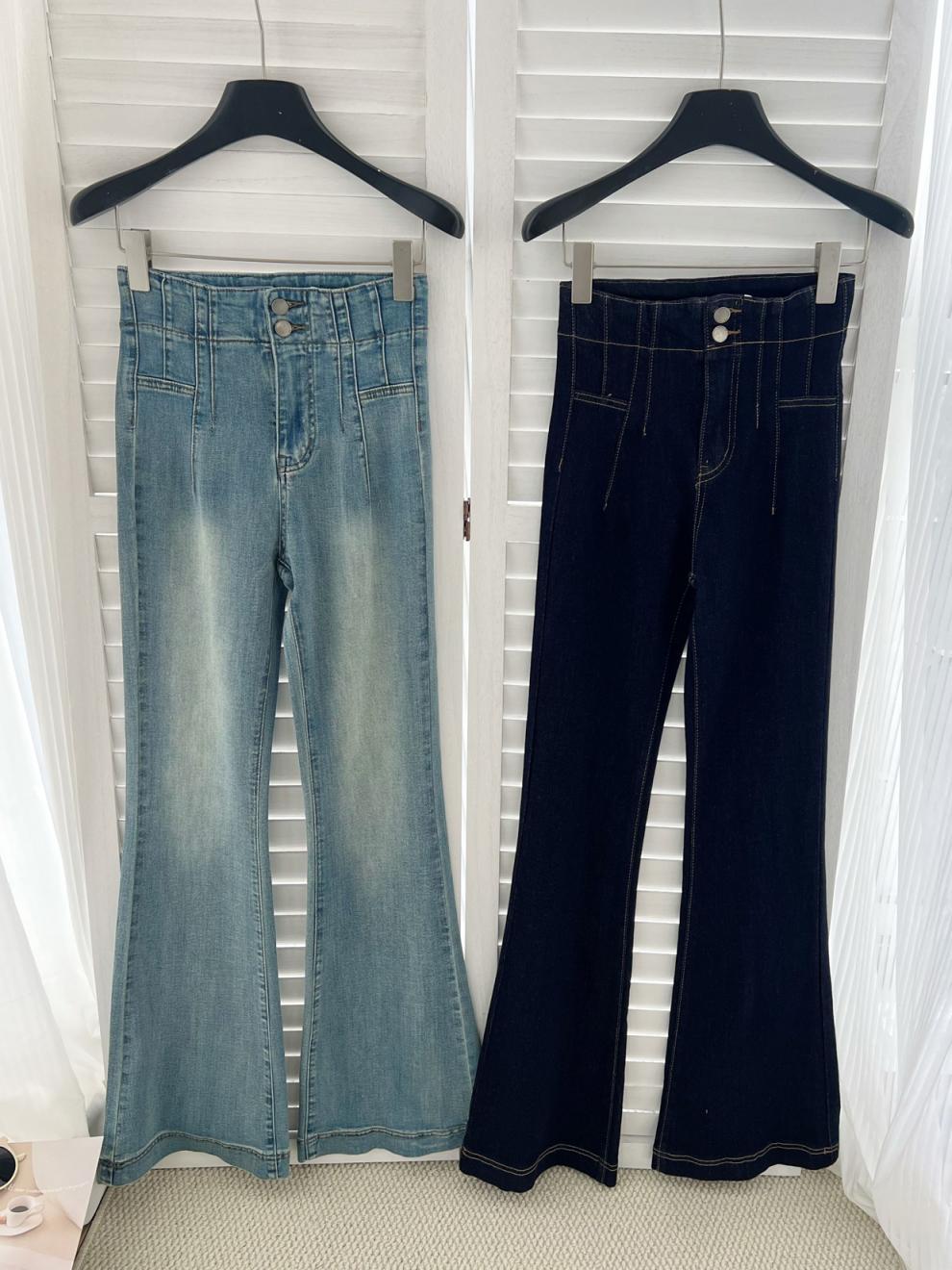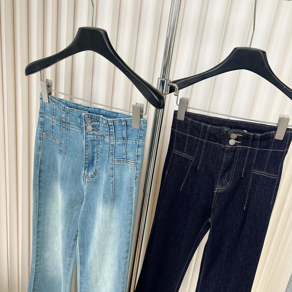Pantalones vaqueros de algodón azul que levantan la cadera para mujer, elásticos, agradables para la piel, ajustados, de cintura alta y micro acampanados.