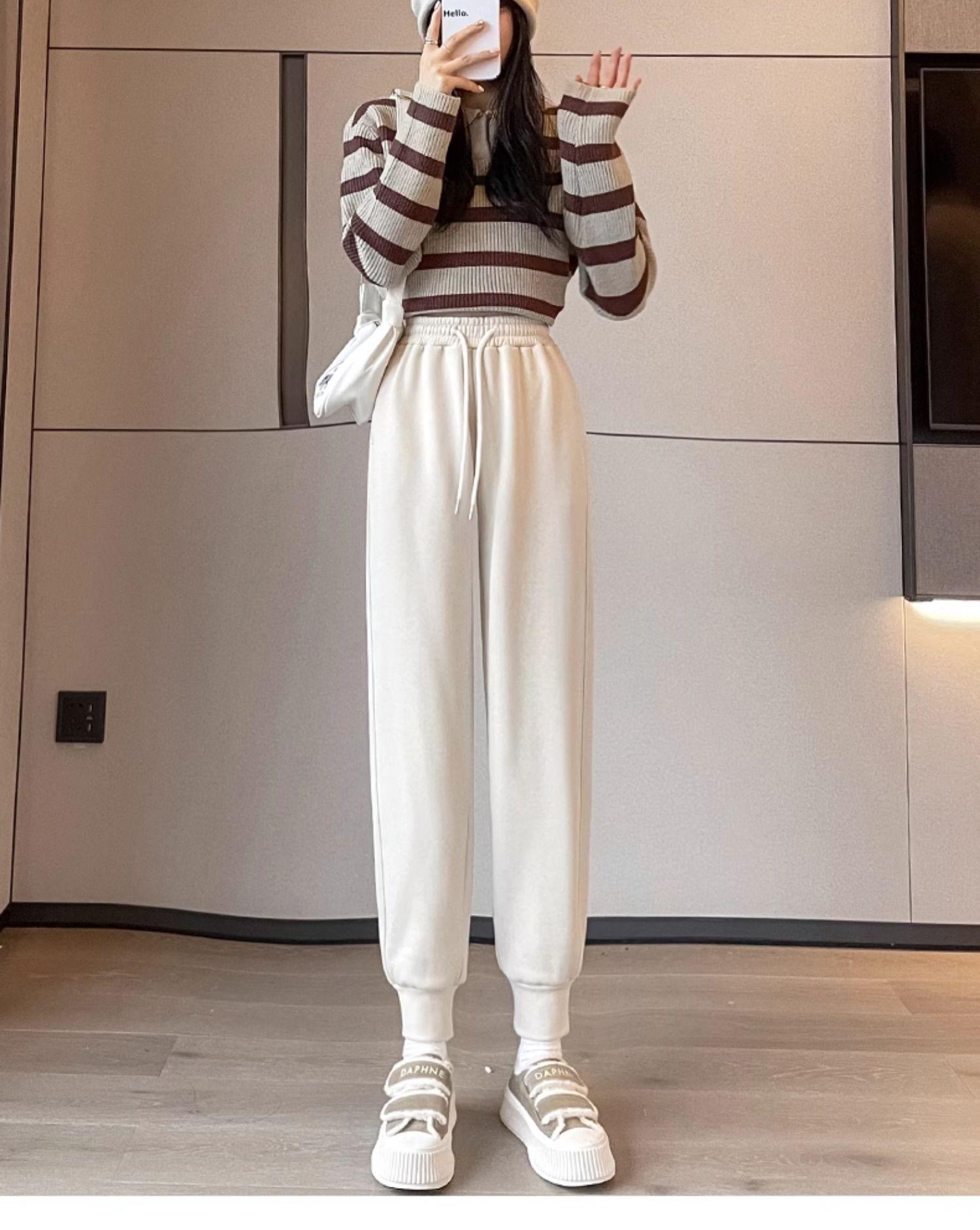 Pantalones Wei para Mujer Primavera Otoño e Invierno con forro polar Ropa Exterior para Piernas Pantalones Deportivos Casuales Harlan Cálidos de Algodón 2025 Nuevo