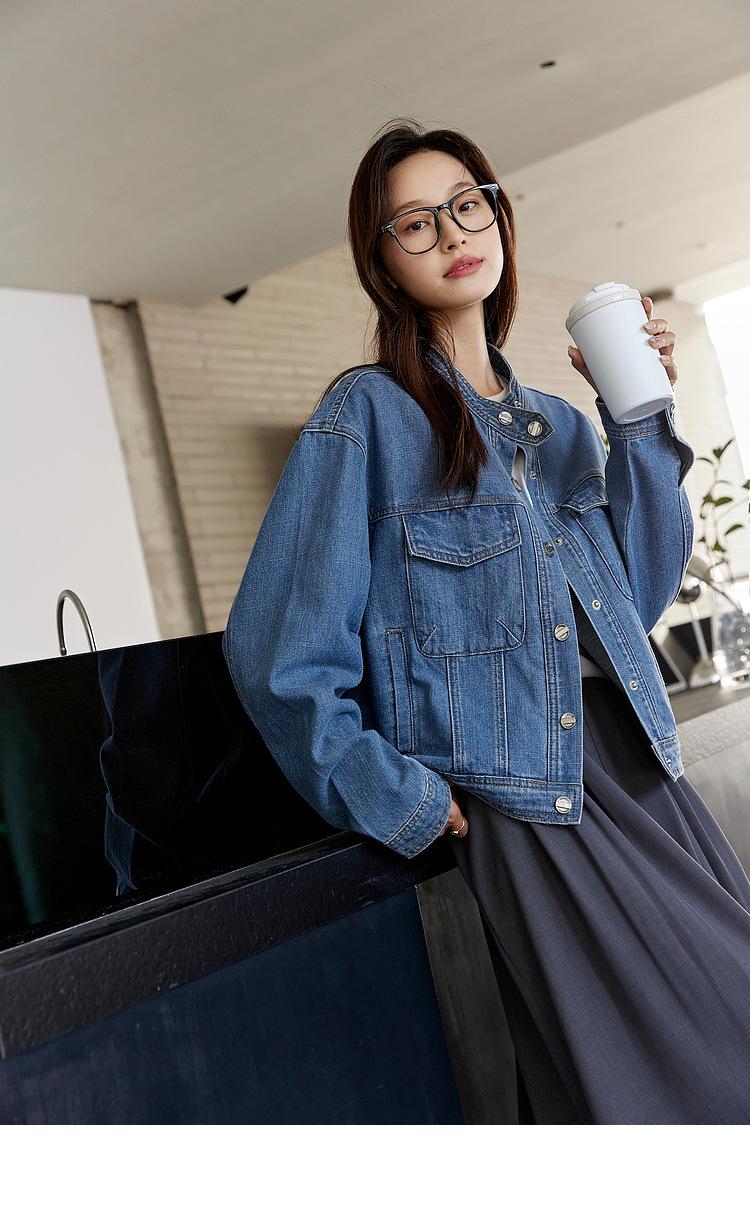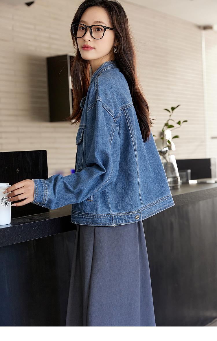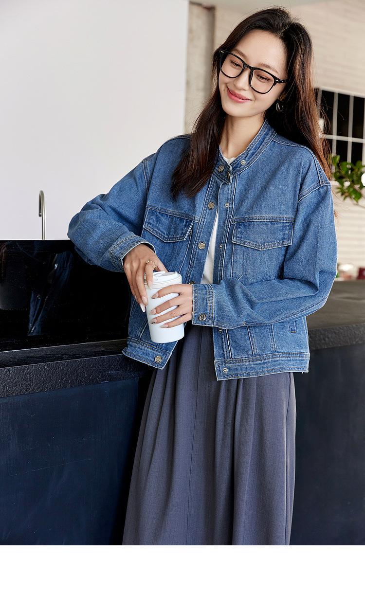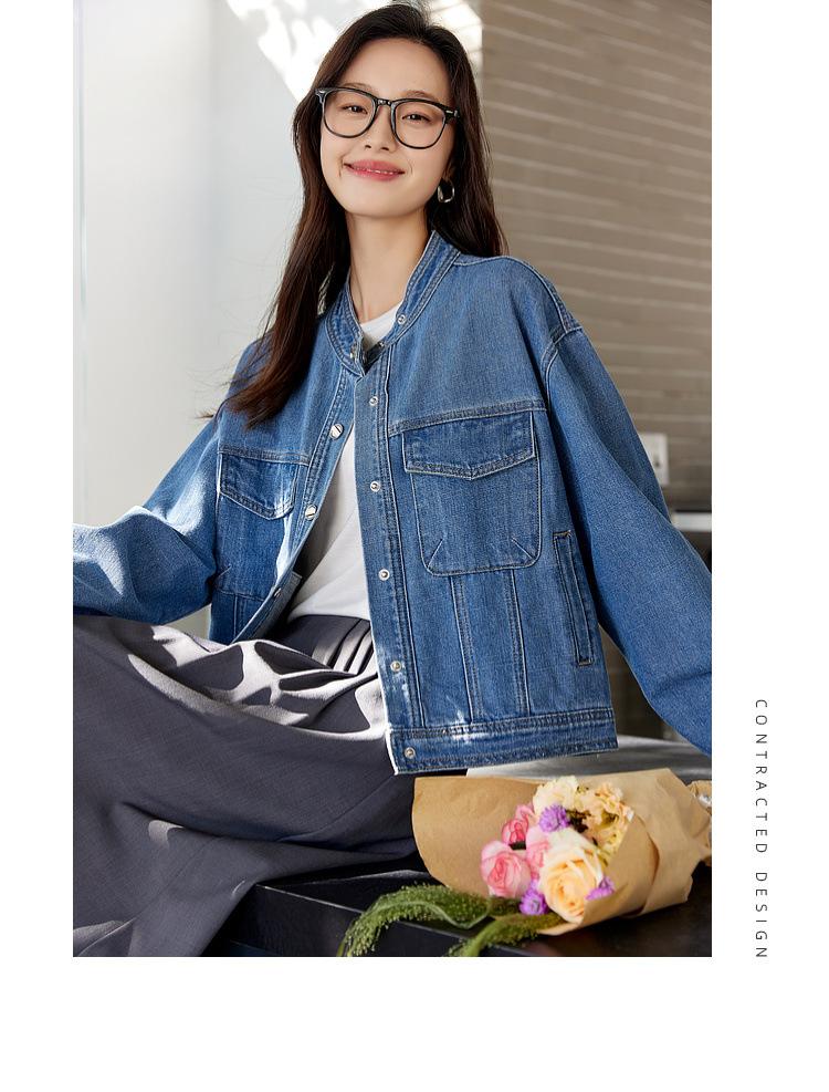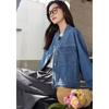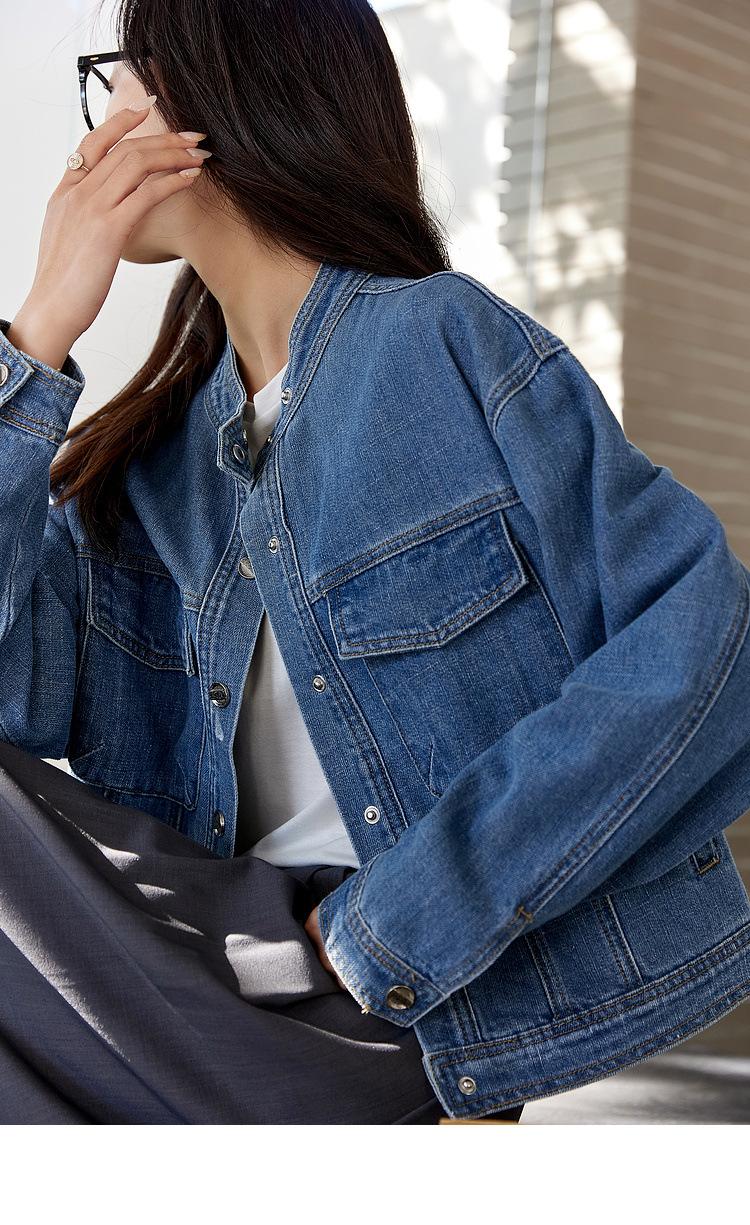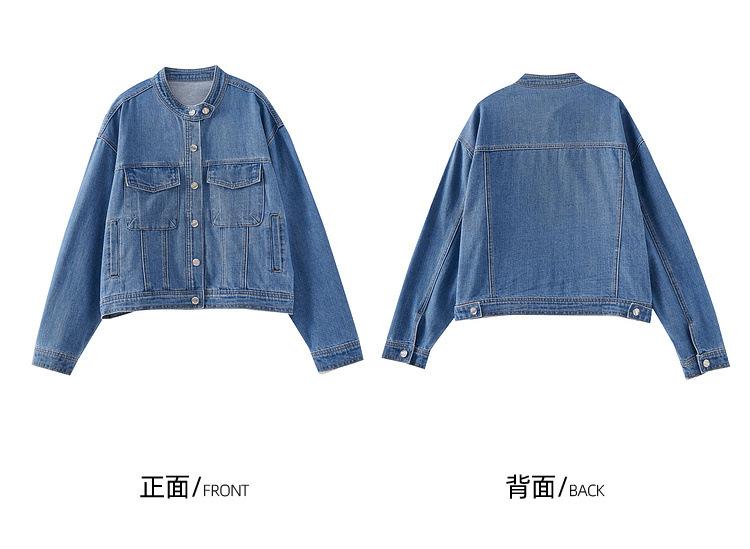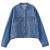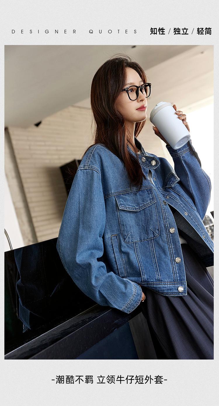 Abrigo corto de mezclilla lavada recta, informal, de manga larga y cuello alto para mujer, de Zhen Xi, a la moda, combinable, CQ617