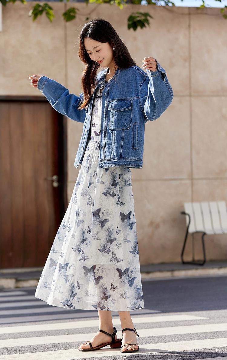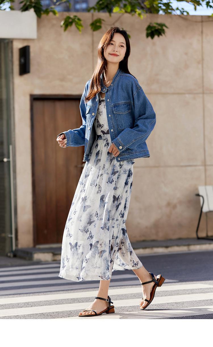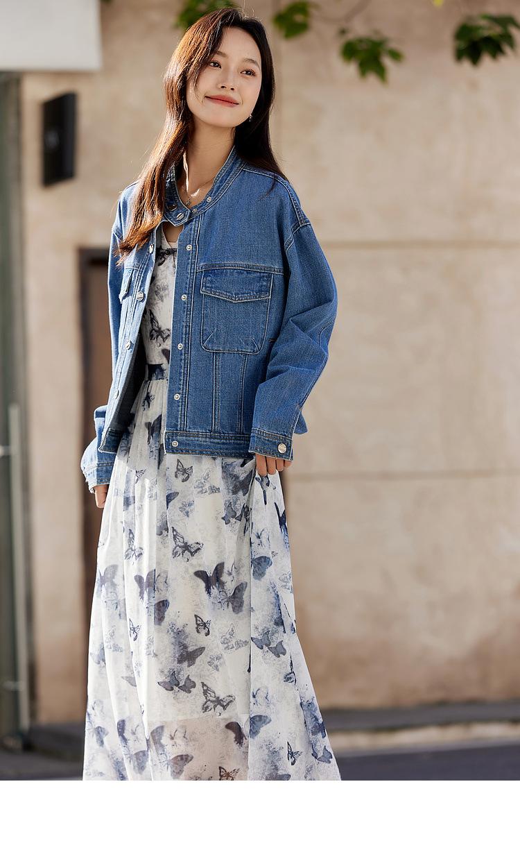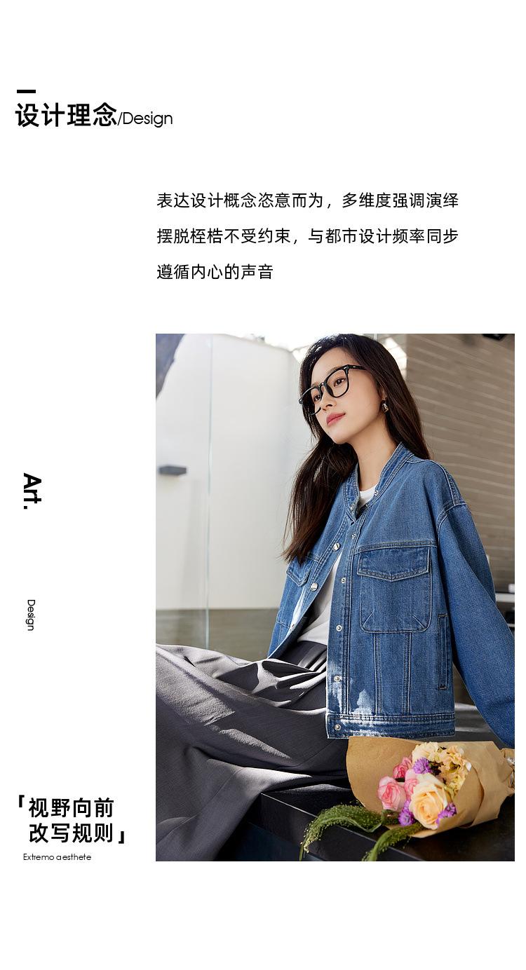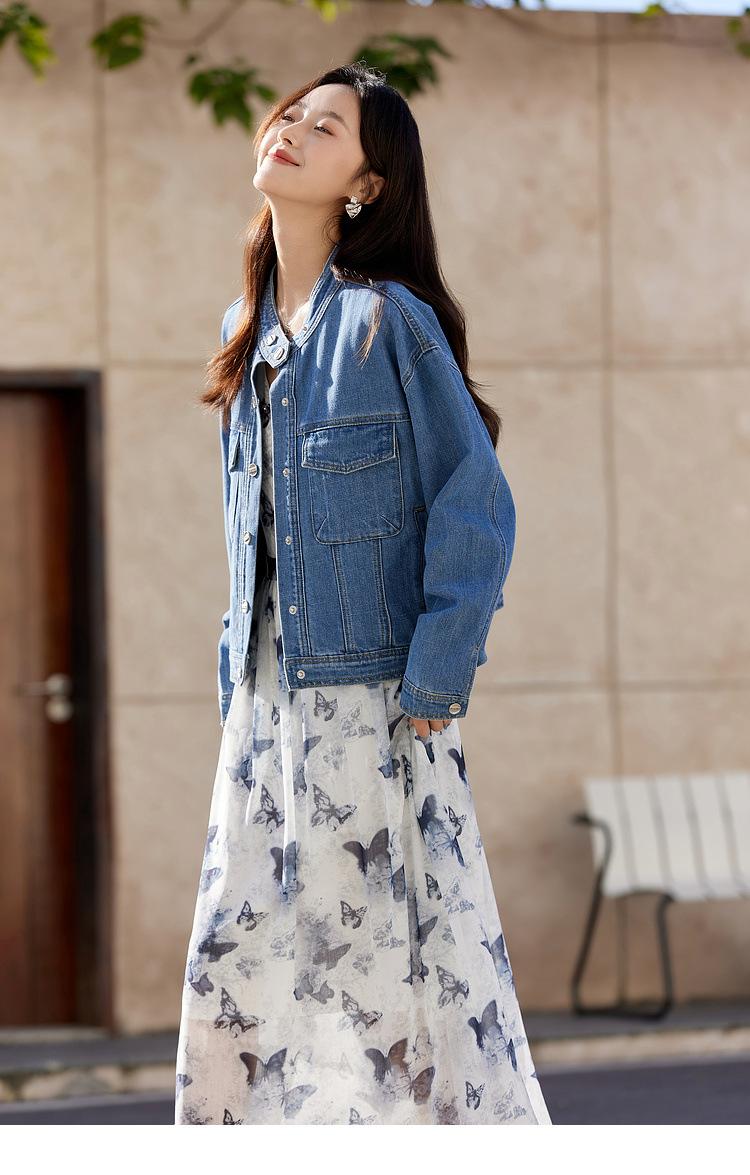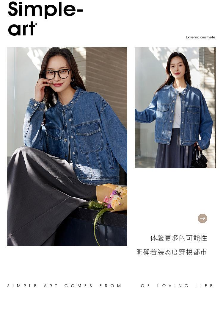Abrigo corto de mezclilla lavada recta, informal, de manga larga y cuello alto para mujer, de Zhen Xi, a la moda, combinable, CQ617
