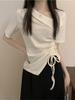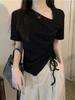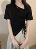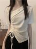 Estilo Lujuria Pura Look Adelgazante Cintura con Cordón Diseño Asimétrico Camiseta Cuello en V Nicho Ins Moda Top Versátil para Mujeres
