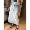 Culottes de mezclilla adelgazantes de cintura alta elásticos Moda para mujer Nuevo 2025 Azul retro Falda de cadera para mujer de alta gama
