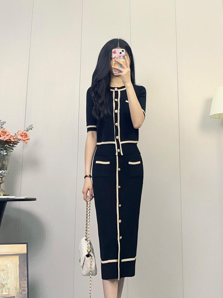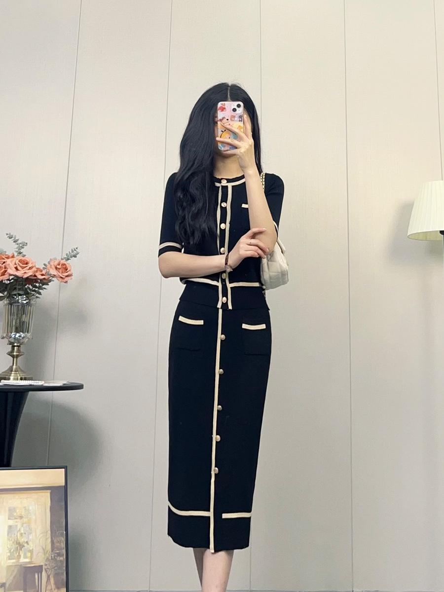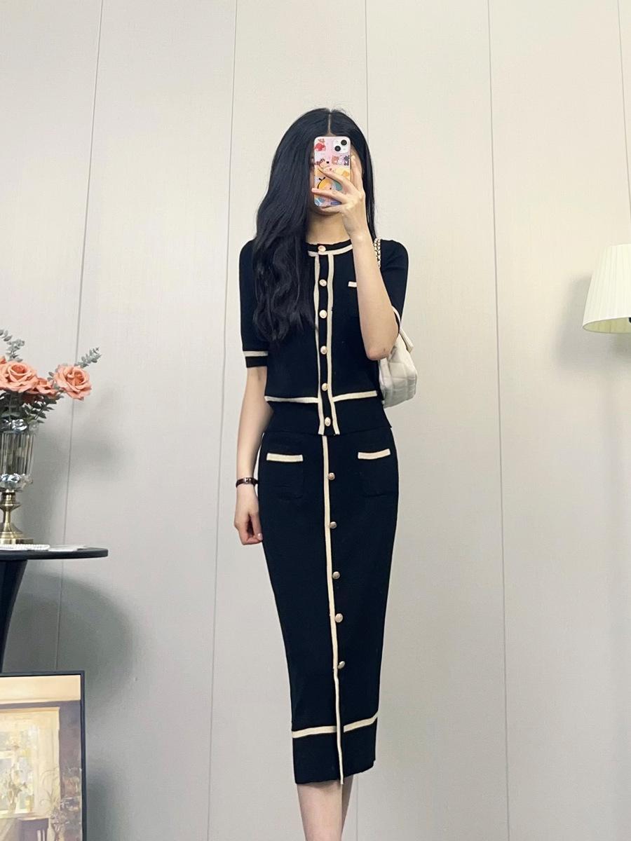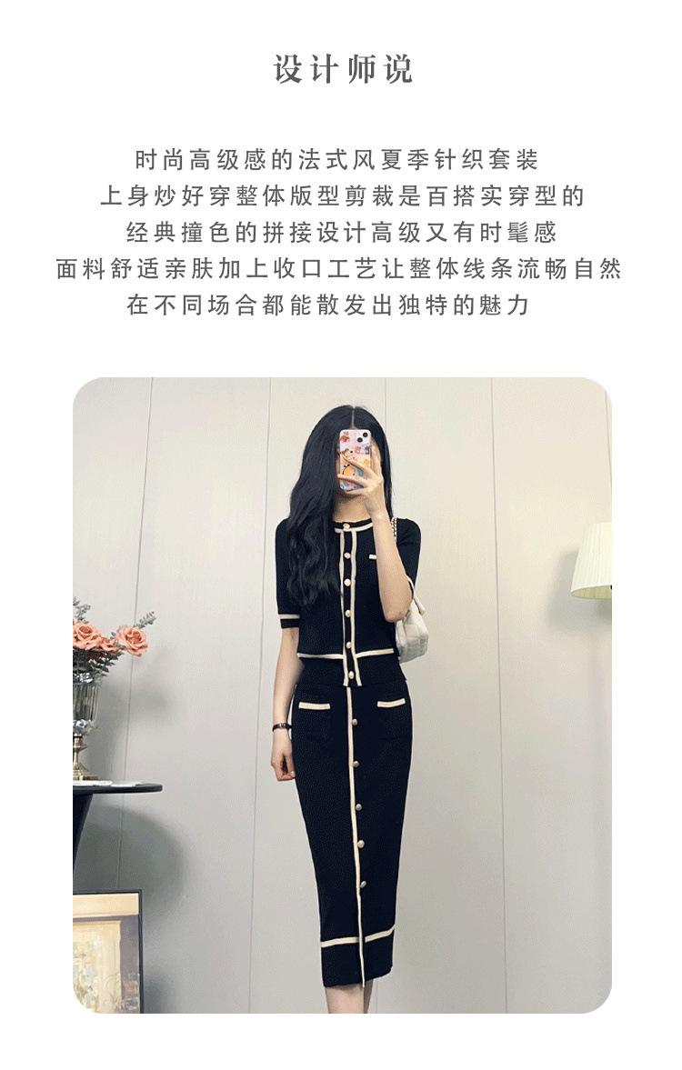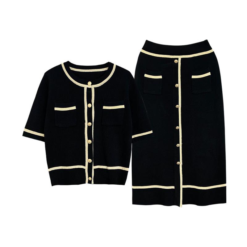 Traje de punto elegante de alta clase para el verano de 2025, nuevo conjunto de falda estilo Chanel estilo francés.