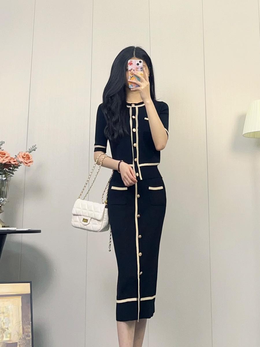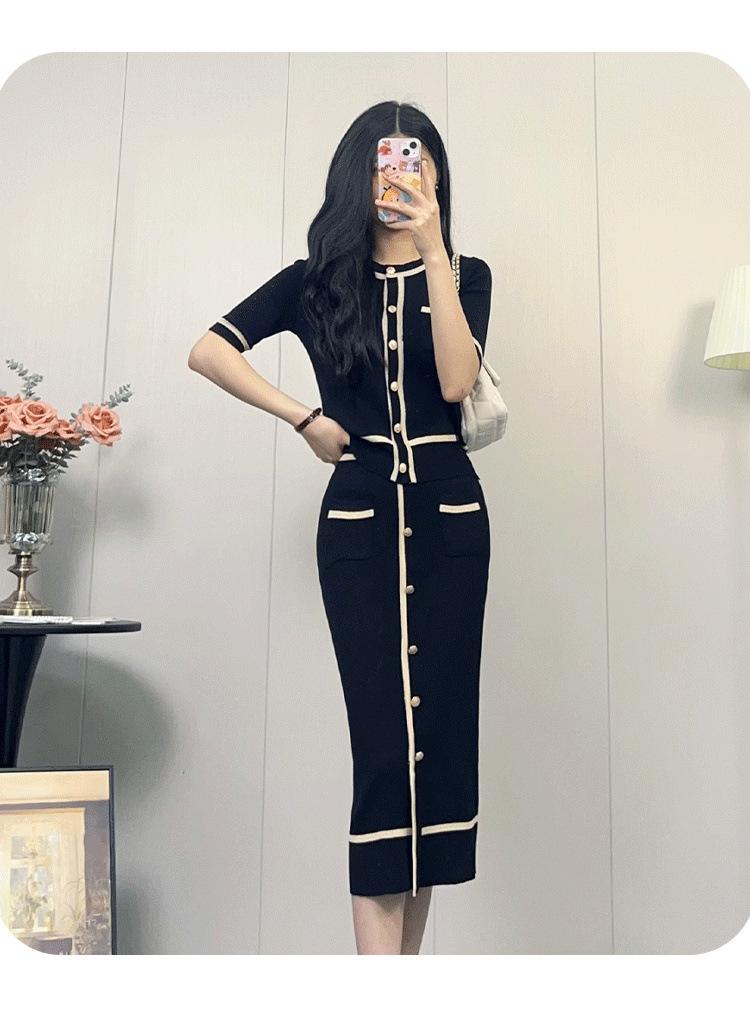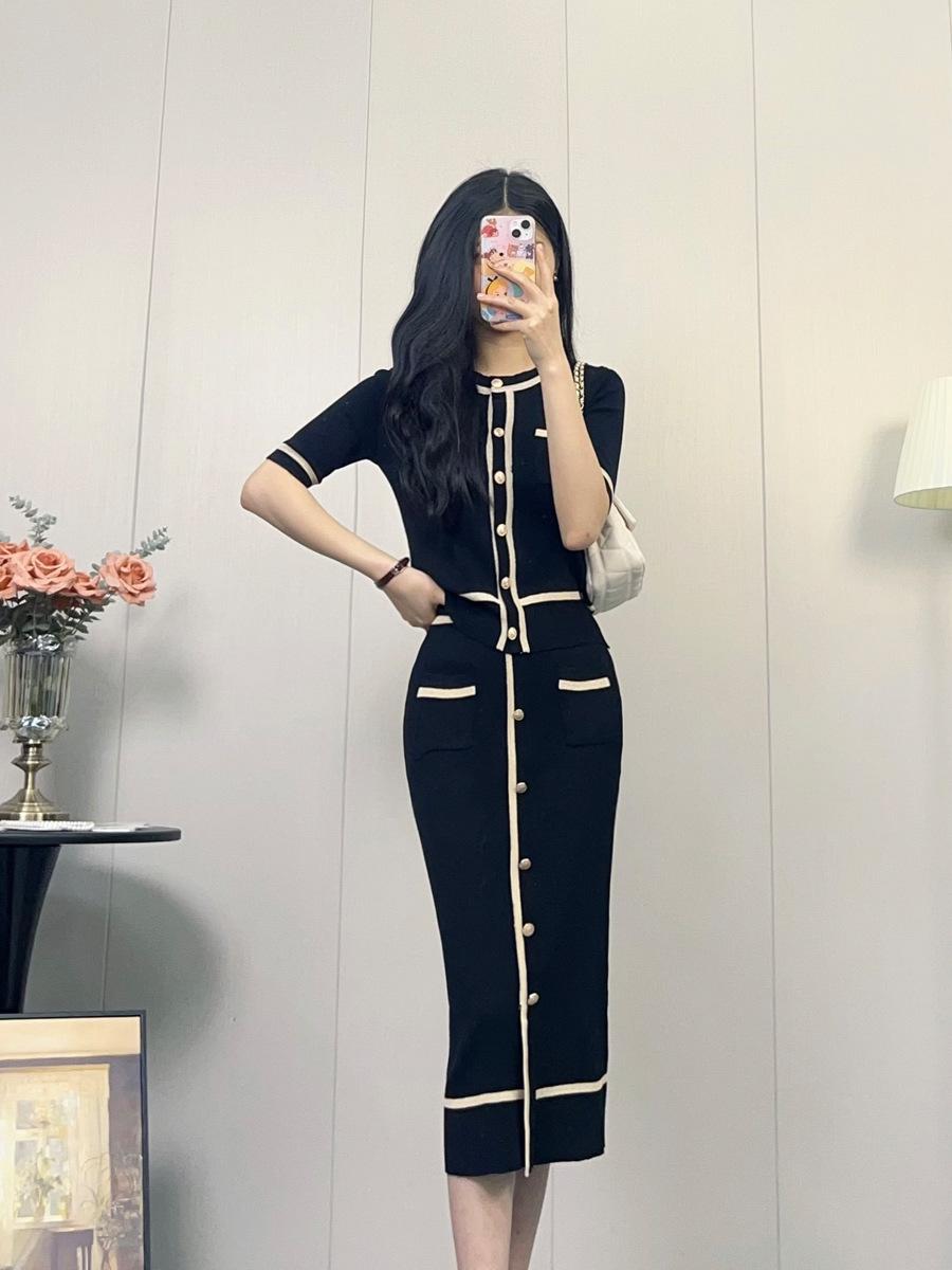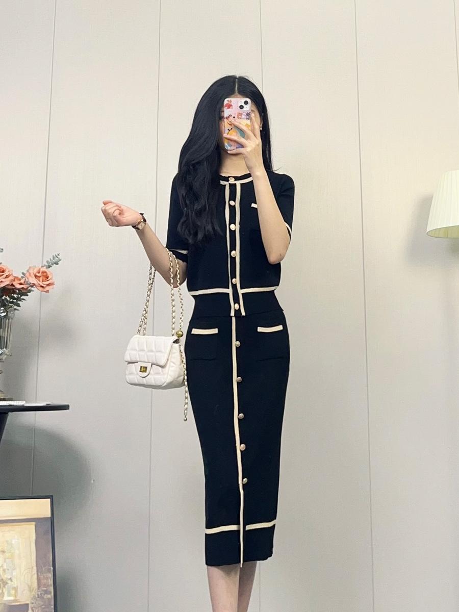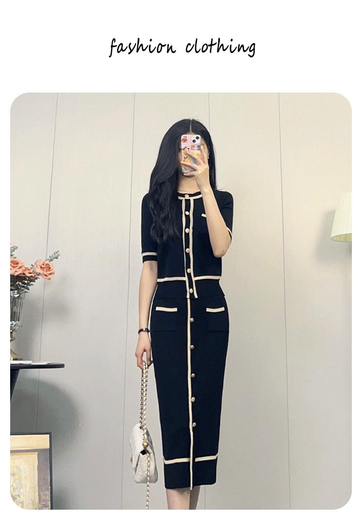 Traje de punto elegante de alta clase para el verano de 2025, nuevo conjunto de falda estilo Chanel estilo francés.