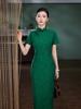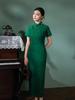Cheongsam de jacquard verde, nuevo, elegante y de alta gama, para mujer, estilo retro, elegante y de uso diario, 2025