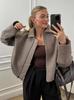 Venta al por mayor de comercio exterior estilo europeo y americano moda 2025 casual solapa corta suave tweed cremallera abrigo de lana para mujer A125010