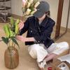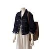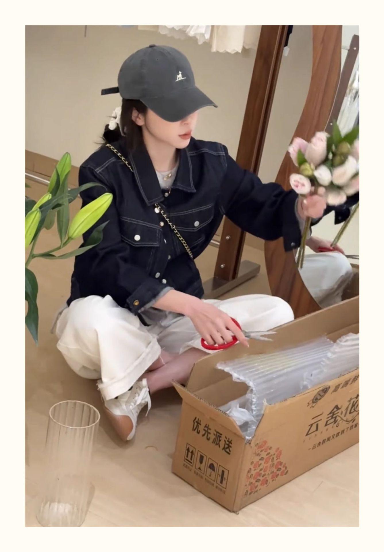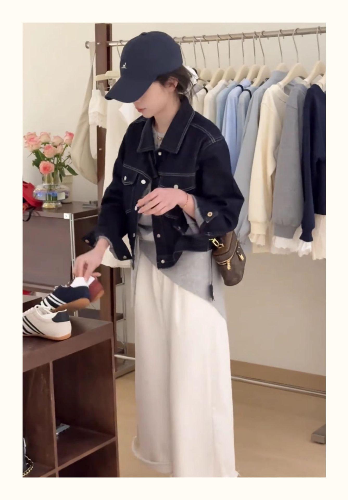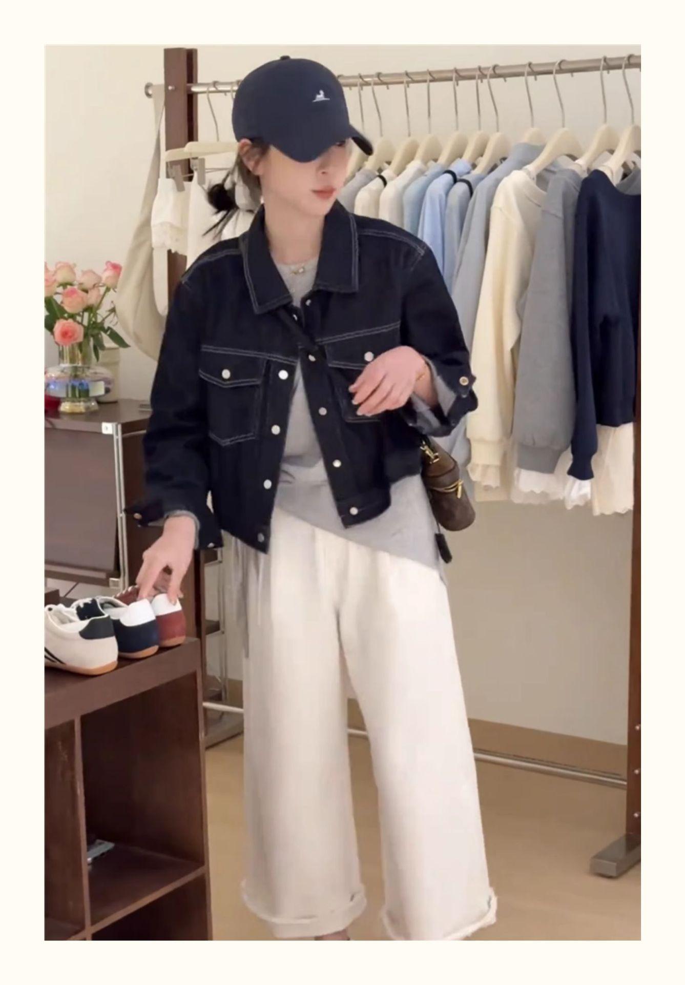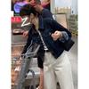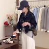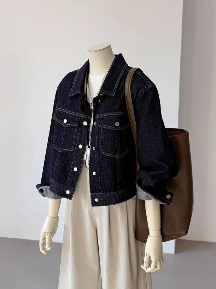 Chamarra de mezclilla azul oscuro retro coreana para mujer 2025 primavera nueva estilo holgazán chamarra corta holgada top