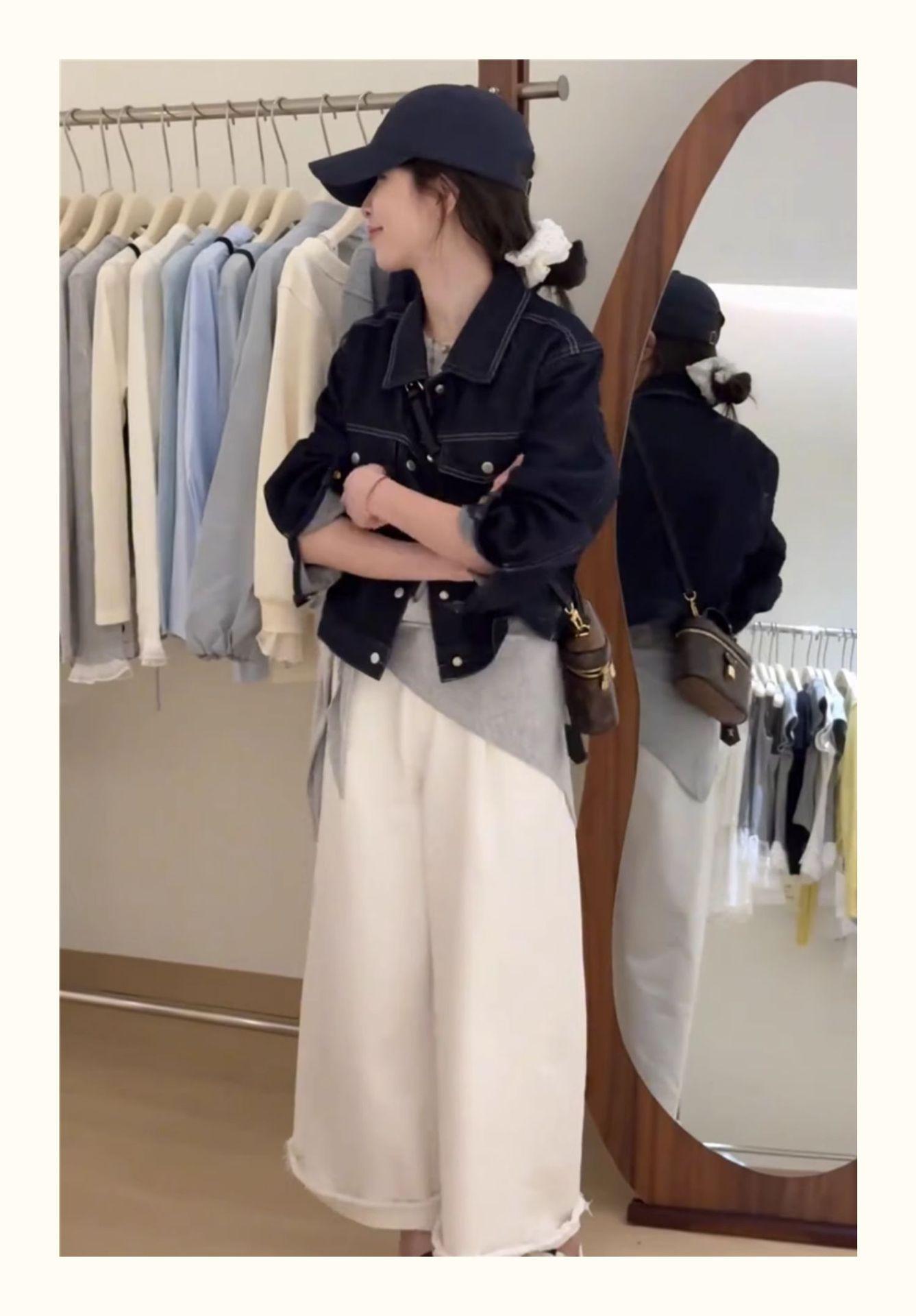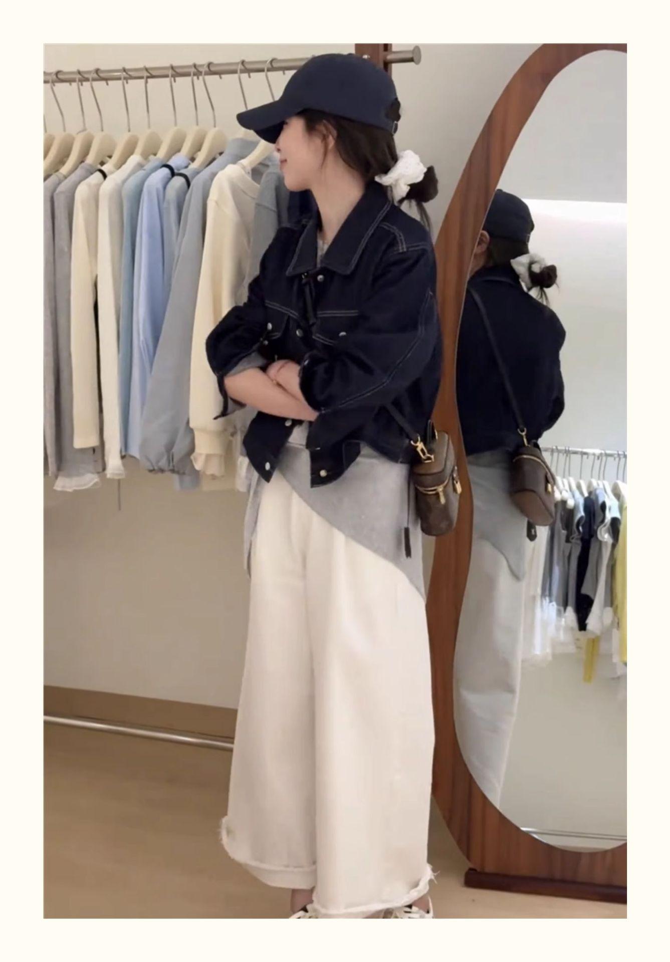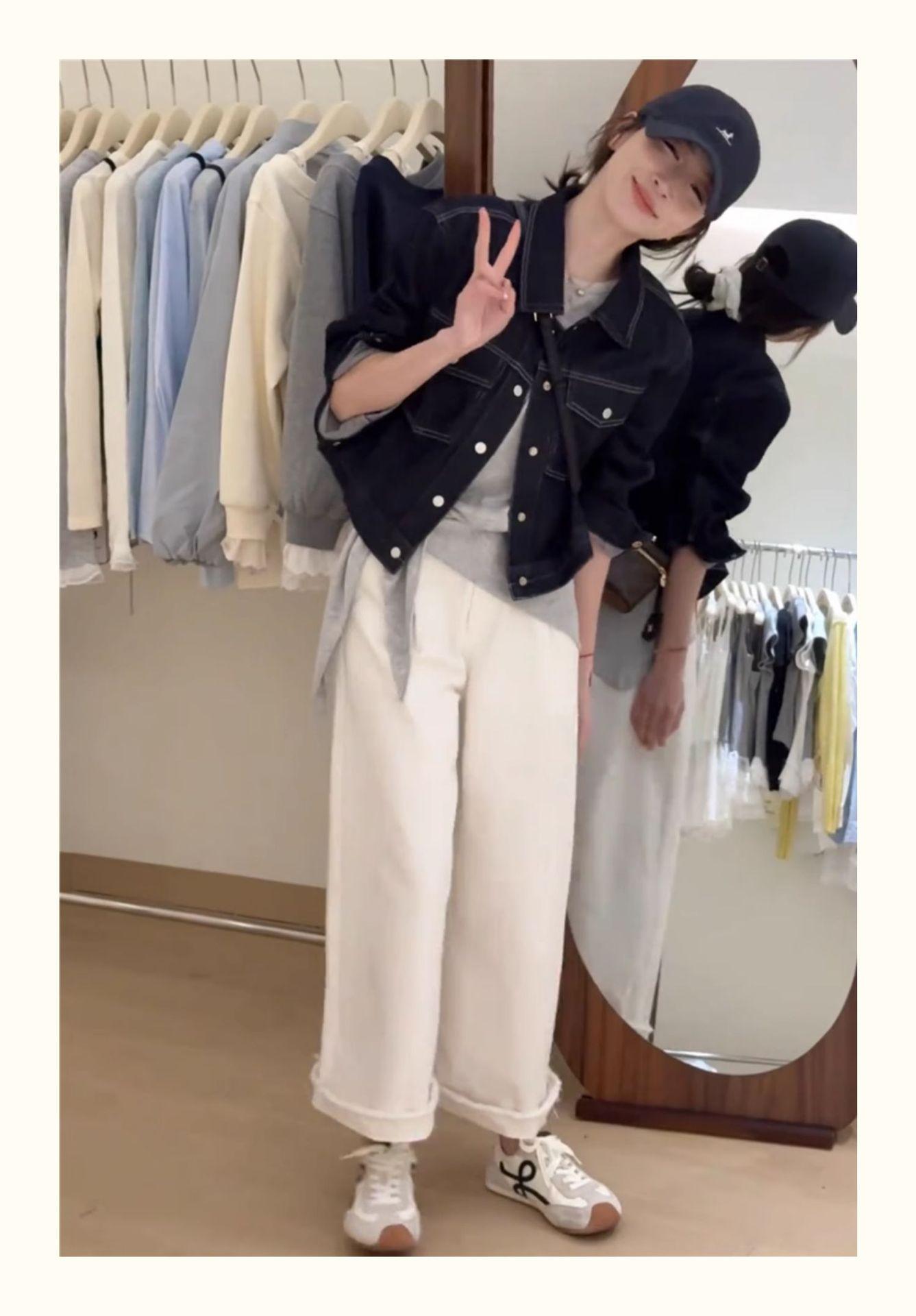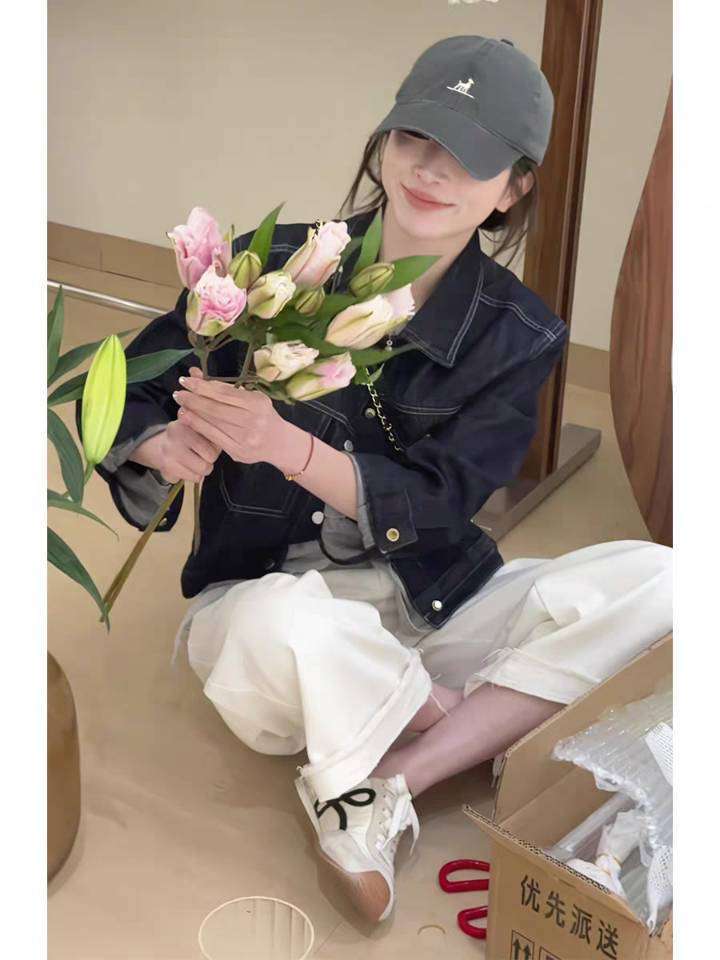Chamarra de mezclilla azul oscuro retro coreana para mujer 2025 primavera nueva estilo holgazán chamarra corta holgada top