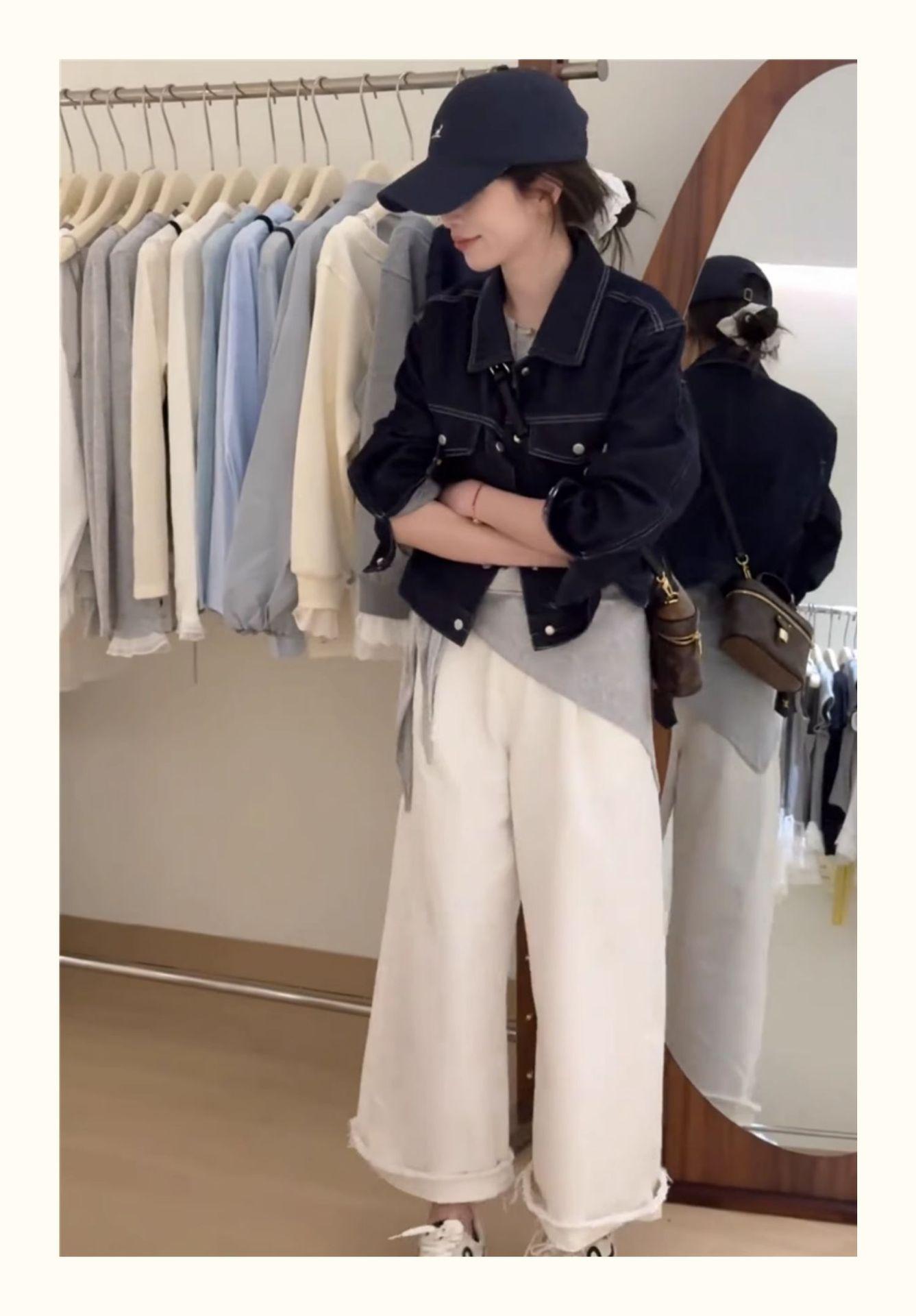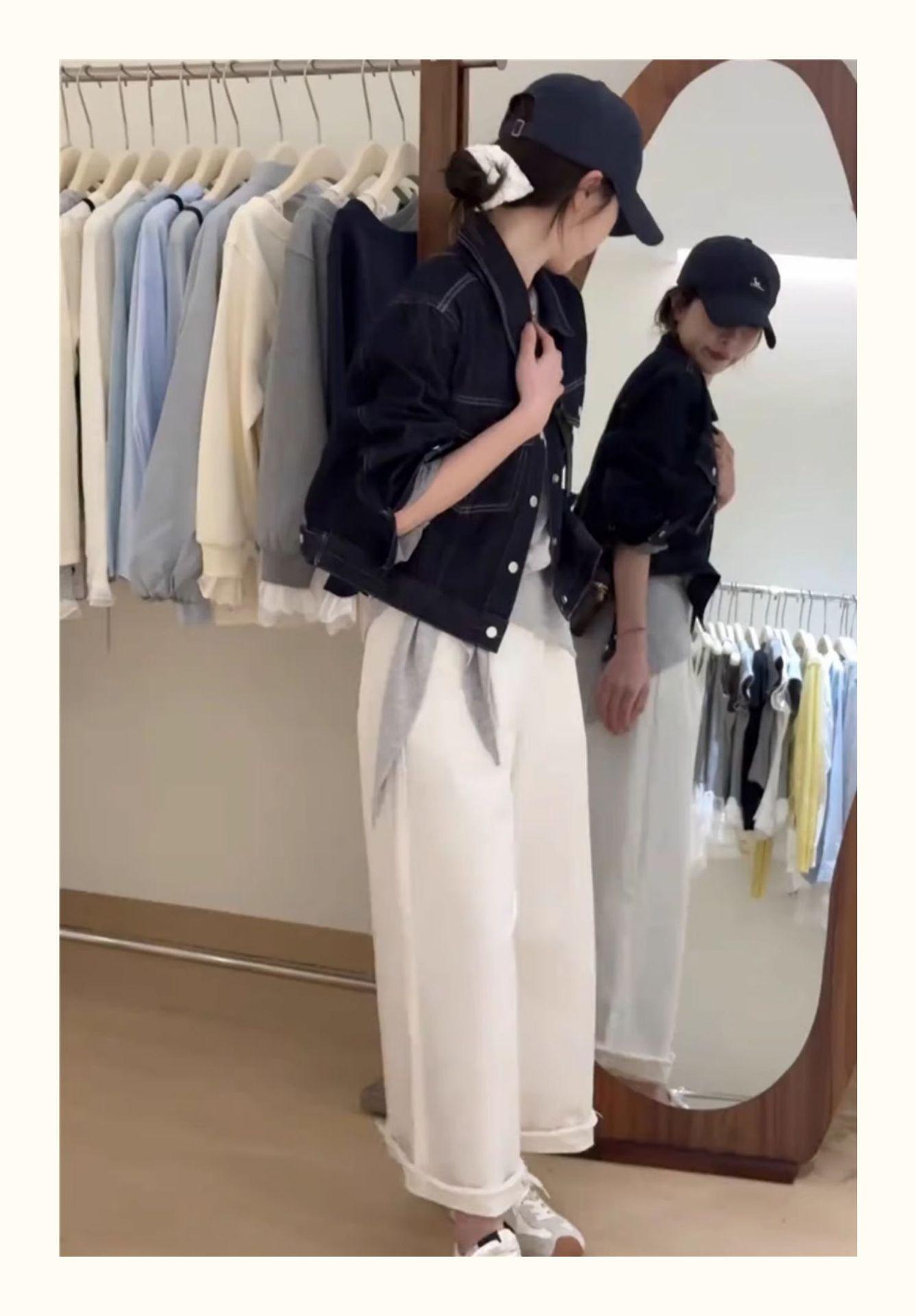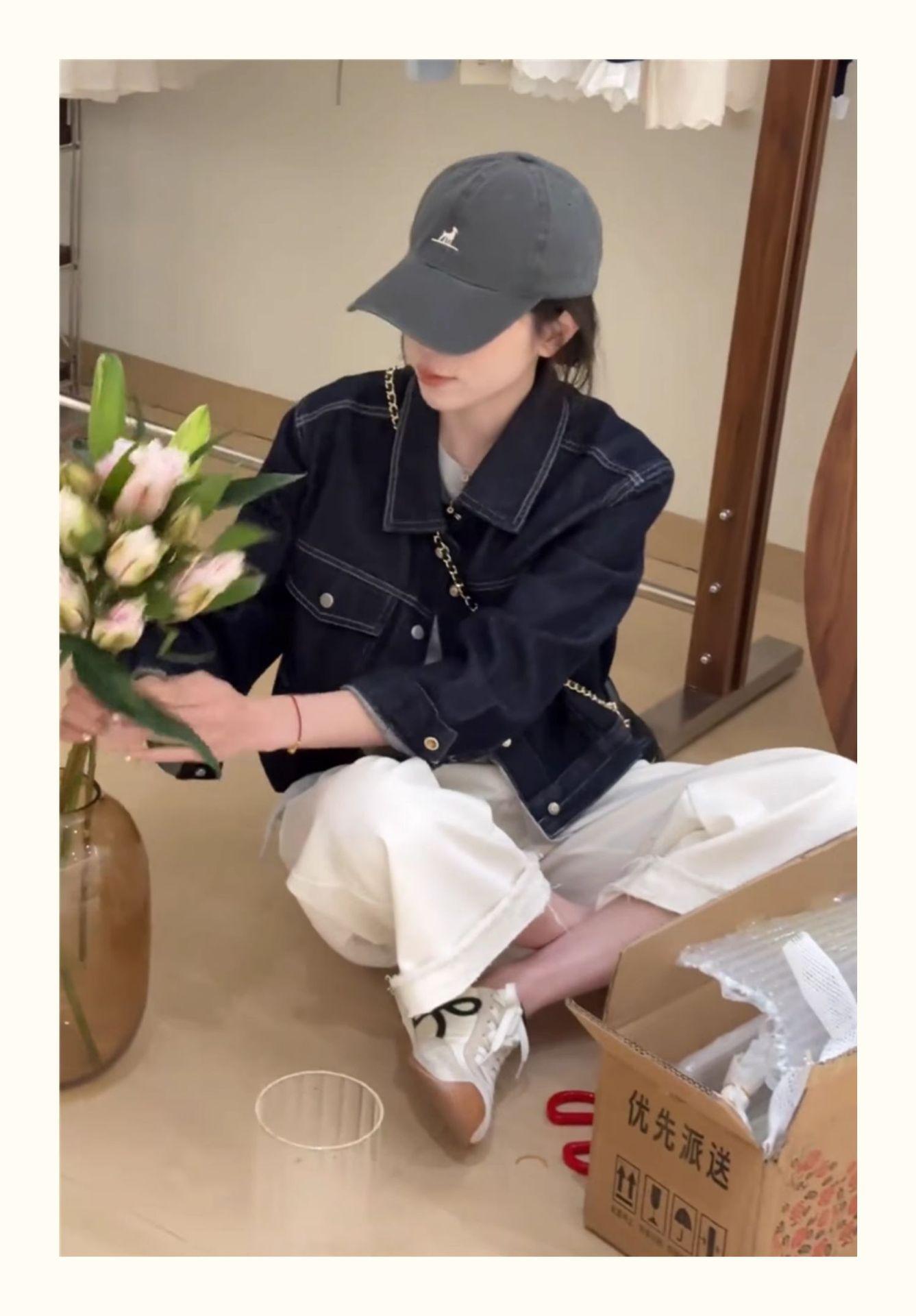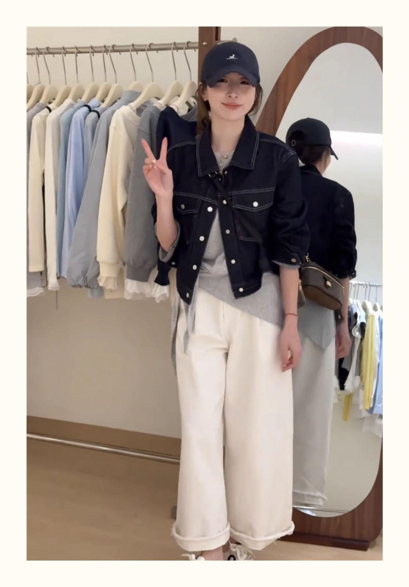 Chamarra de mezclilla azul oscuro retro coreana para mujer 2025 primavera nueva estilo holgazán chamarra corta holgada top