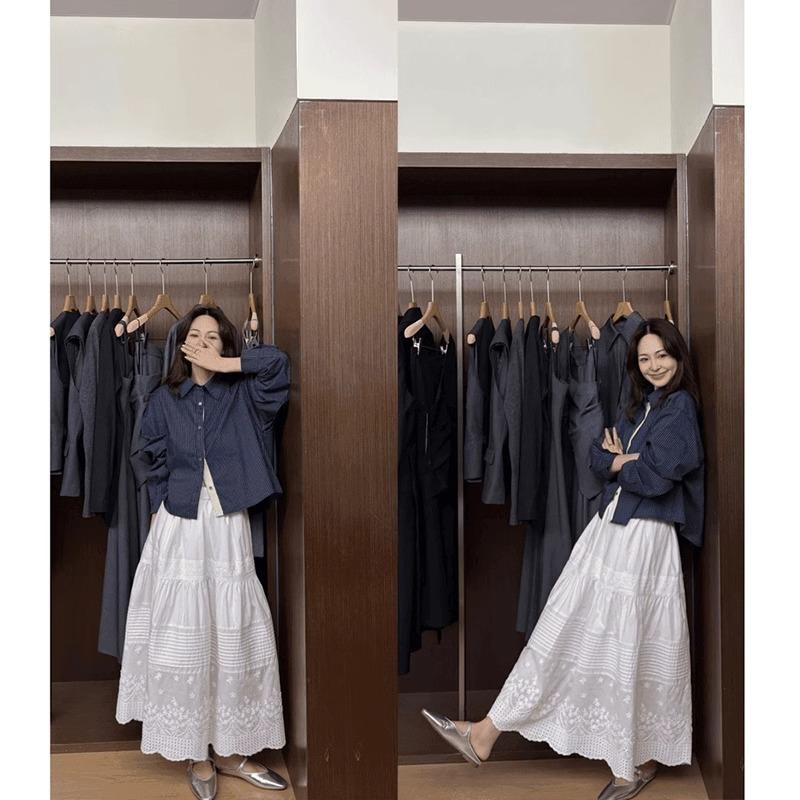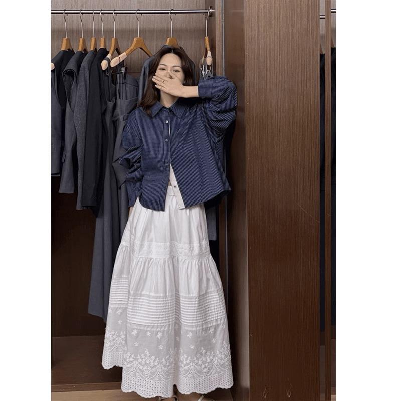 Falda de cintura alta con encaje retro francés para mujer en primavera, falda tipo paraguas holgada y ajustada de alta gama, falda de longitud media en forma de A