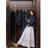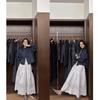 Falda de cintura alta con encaje retro francés para mujer, falda tipo paraguas holgada y ajustada de alta gama, de corte A y longitud media.