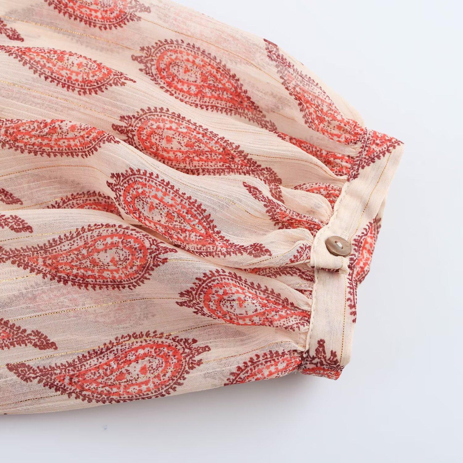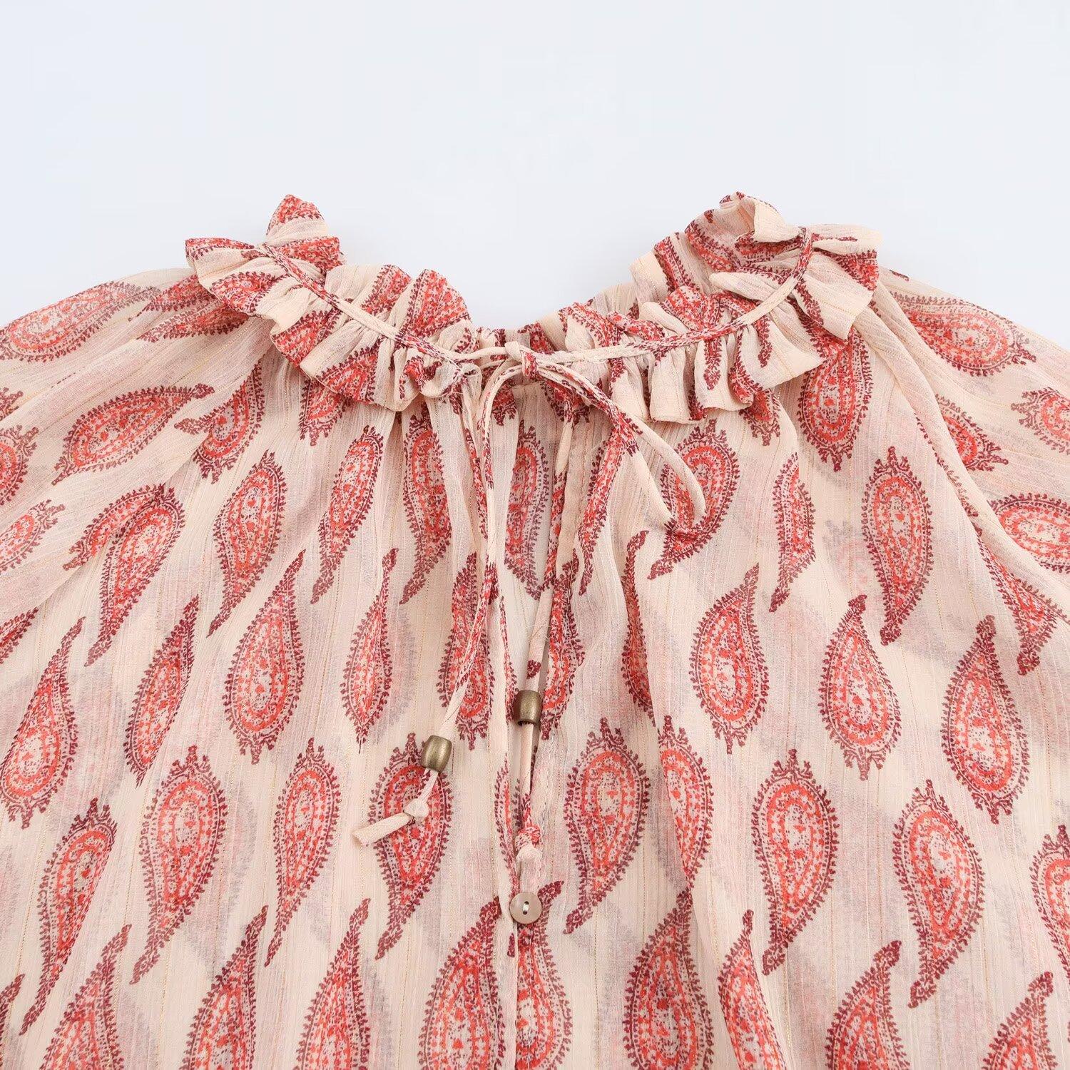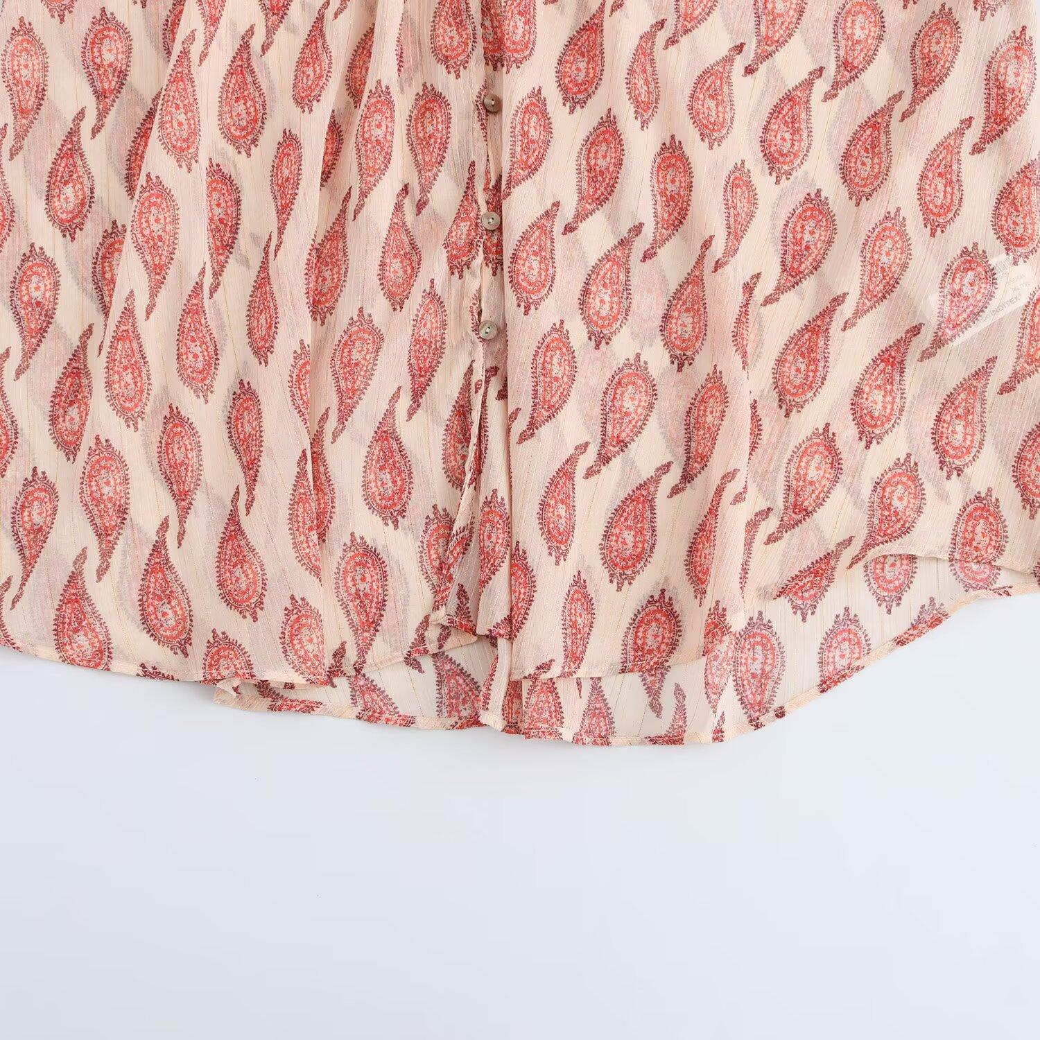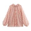 Ropa de mujer transfronteriza de comercio exterior 2025 Europa y Estados Unidos nueva moda color metálico estampado de líneas camisa con cuello de encaje F611199