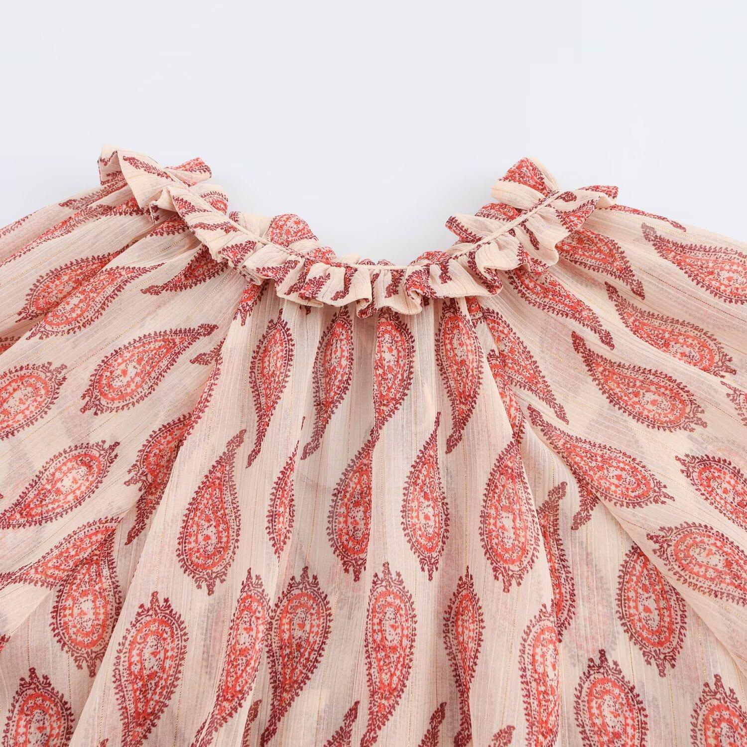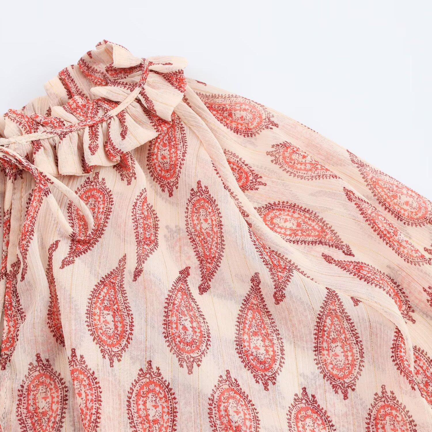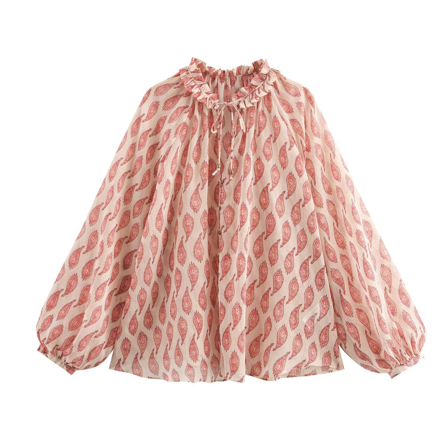 Ropa de mujer transfronteriza de comercio exterior 2025 Europa y Estados Unidos nueva moda color metálico estampado de líneas camisa con cuello de encaje F611199