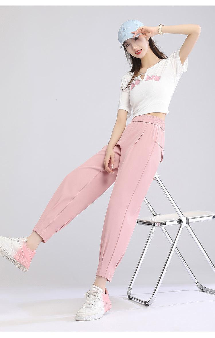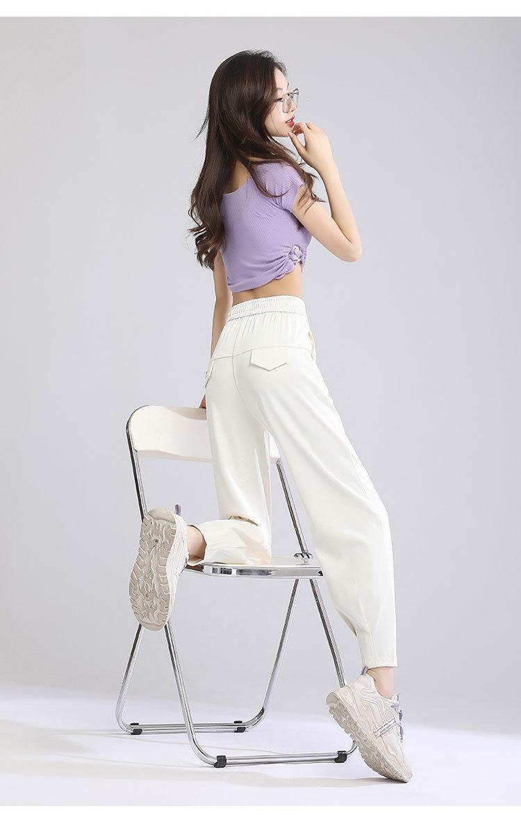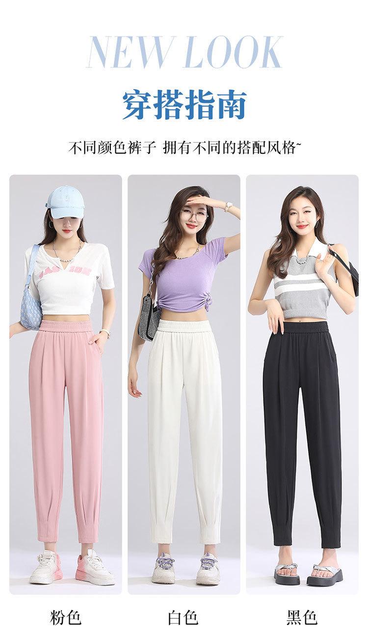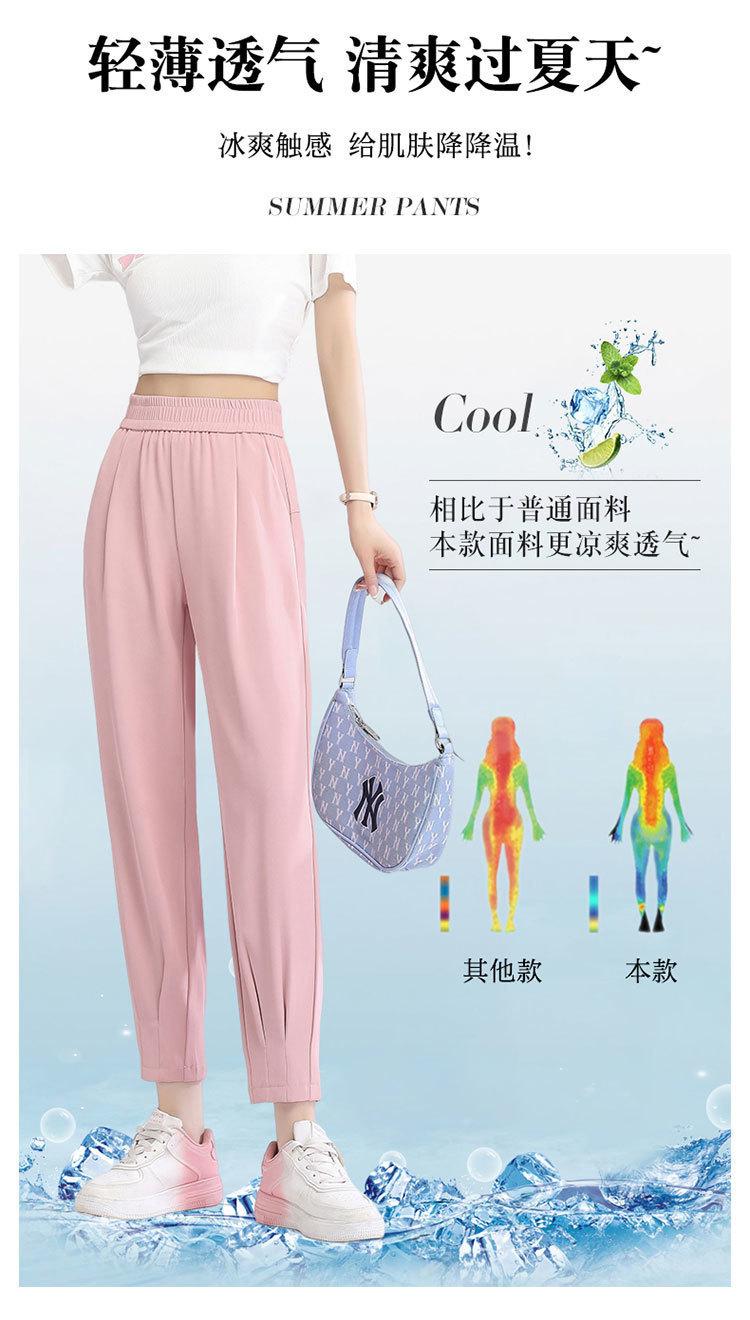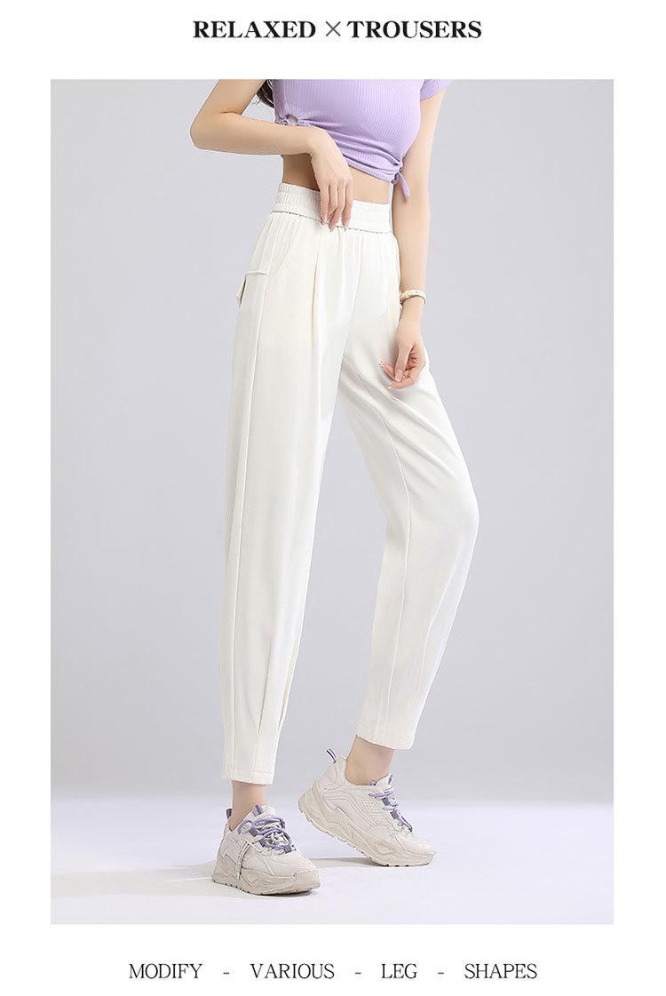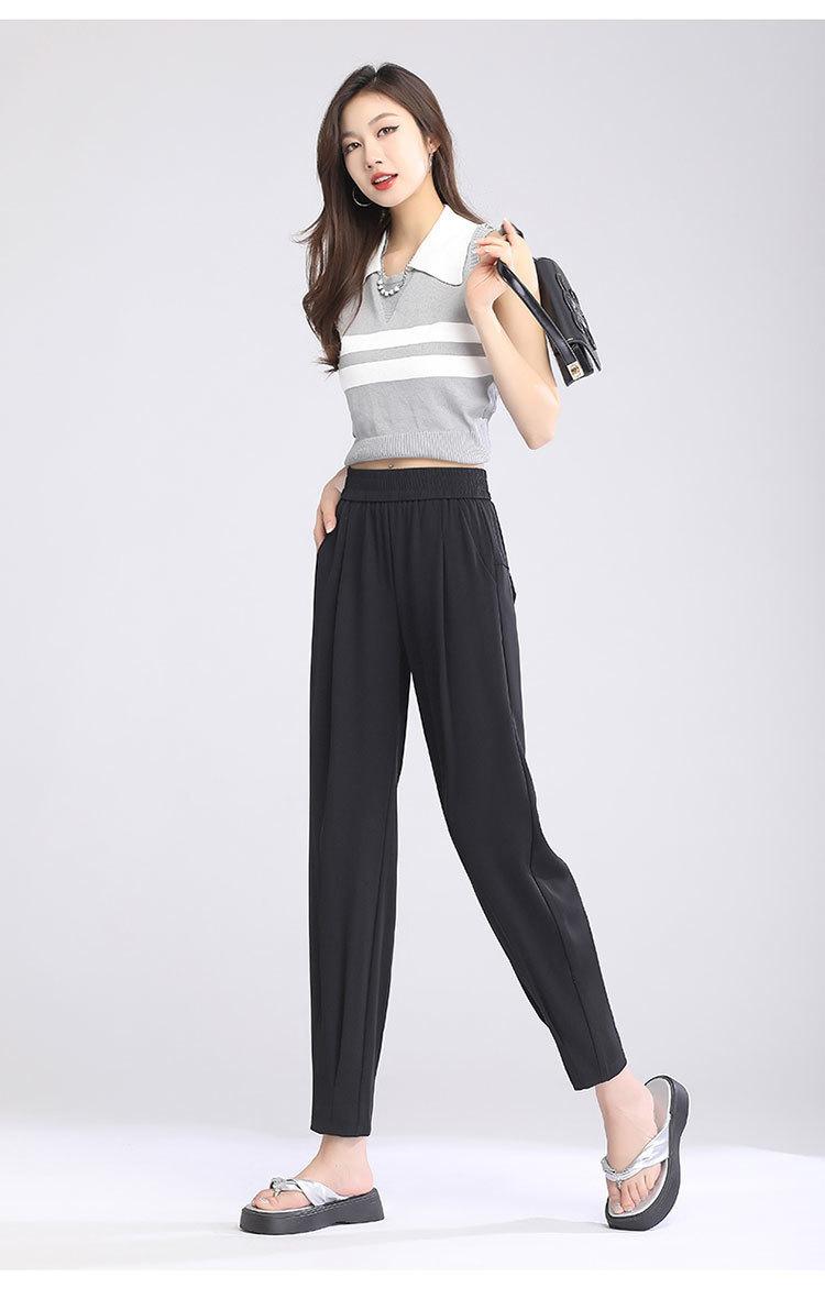 Pantalones Hallen Verano 2024 Nuevos Seda de Hielo Modernos para Mujer Delgados Aspecto Slim Casual Sueltos Recortados Cintura Alta