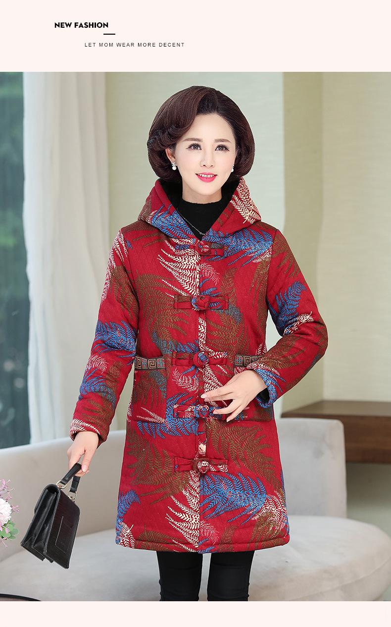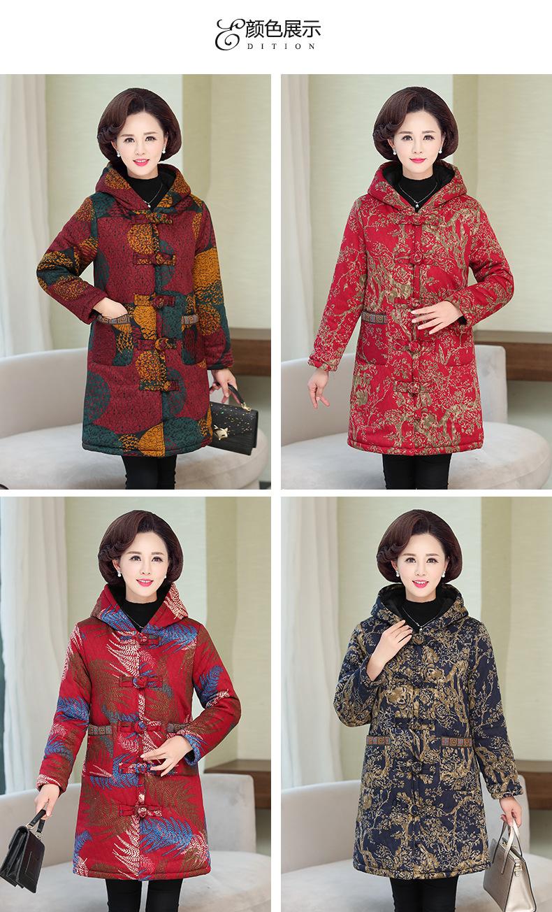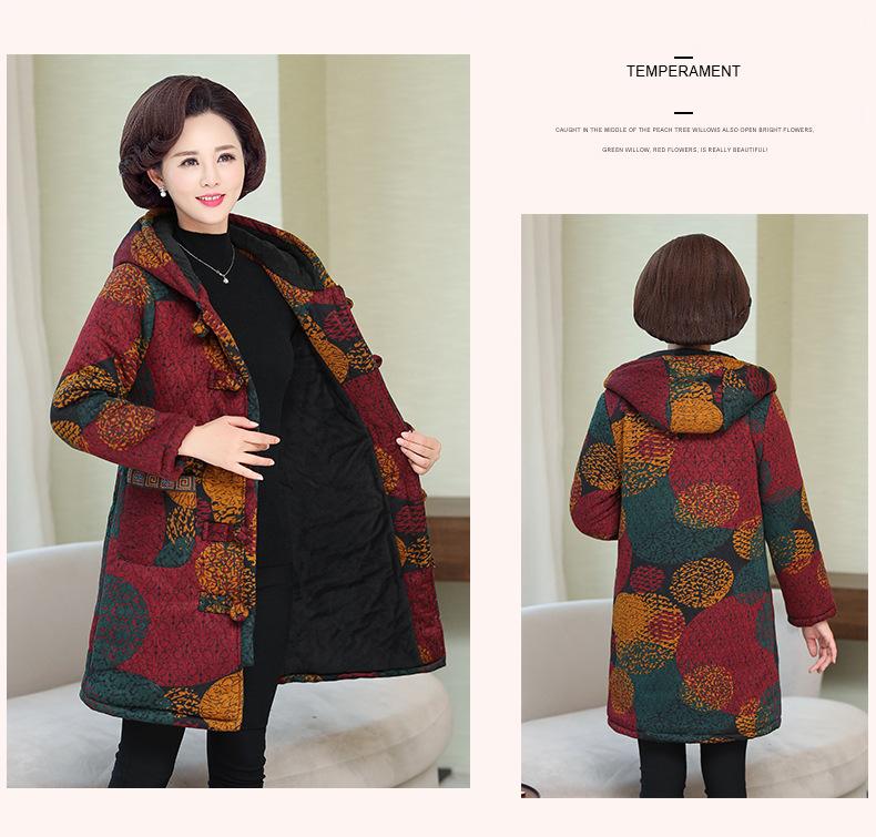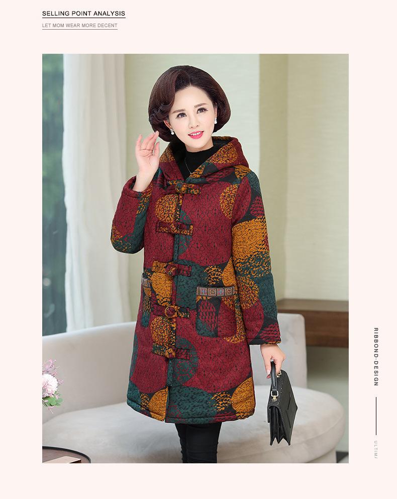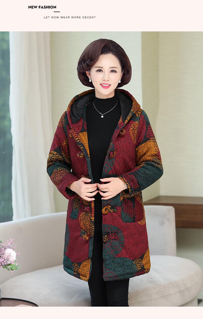 Abrigo grueso con forro polar de longitud media para mujeres de mediana edad y mayores, abrigo cálido de algodón acolchado con cintura, ropa de invierno, abrigo con capucha de algodón acolchado, ropa para madres