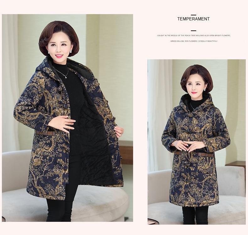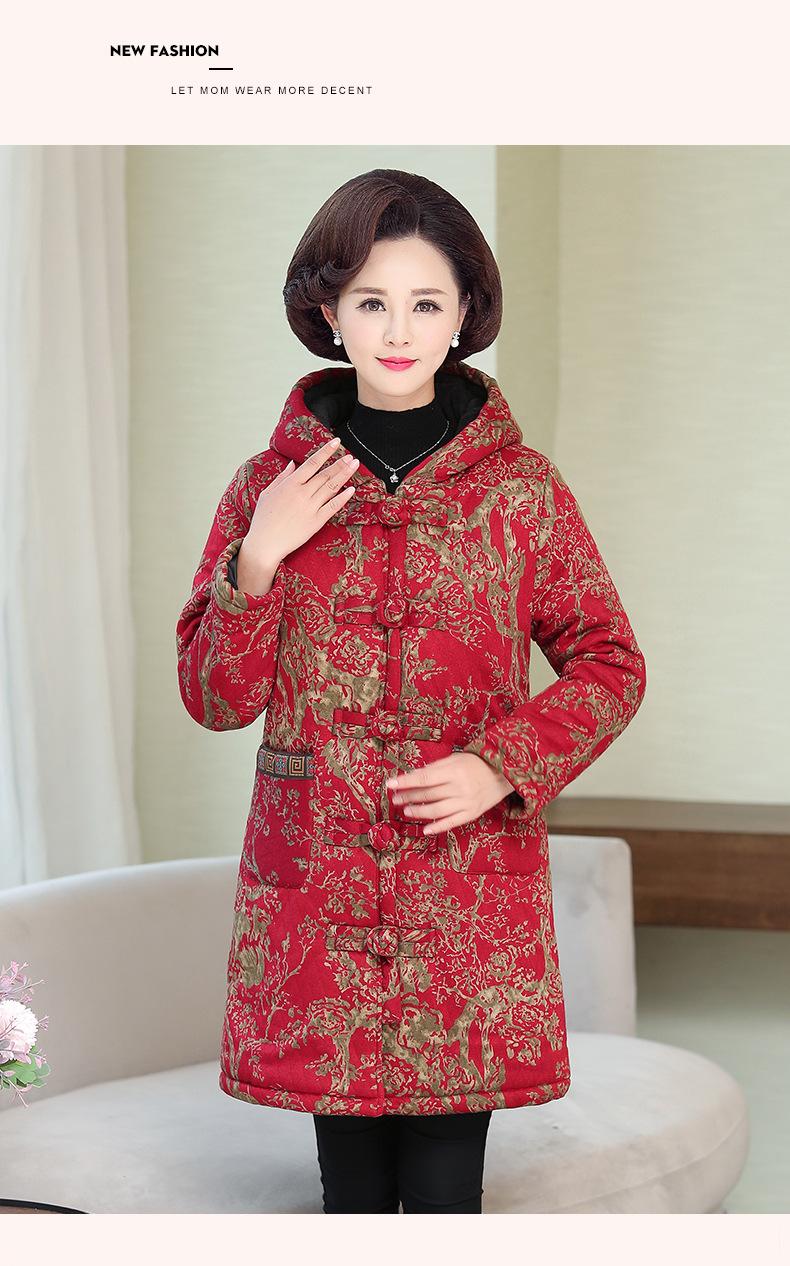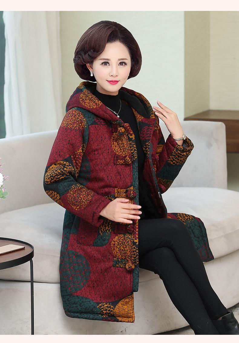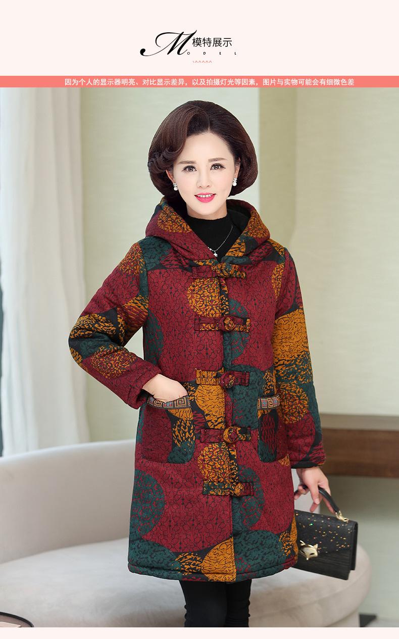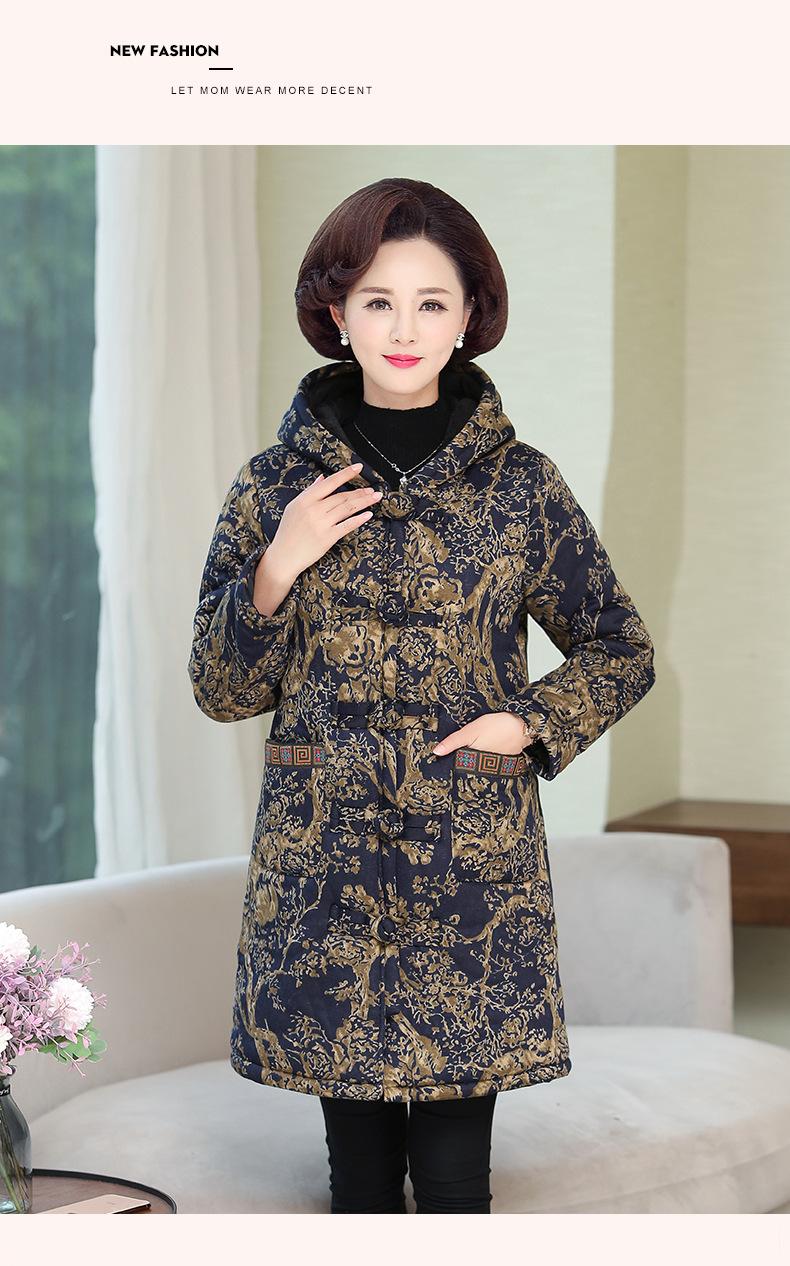 Abrigo grueso con forro polar de longitud media para mujeres de mediana edad y mayores, abrigo cálido de algodón acolchado con cintura, ropa de invierno, abrigo con capucha de algodón acolchado, ropa para madres