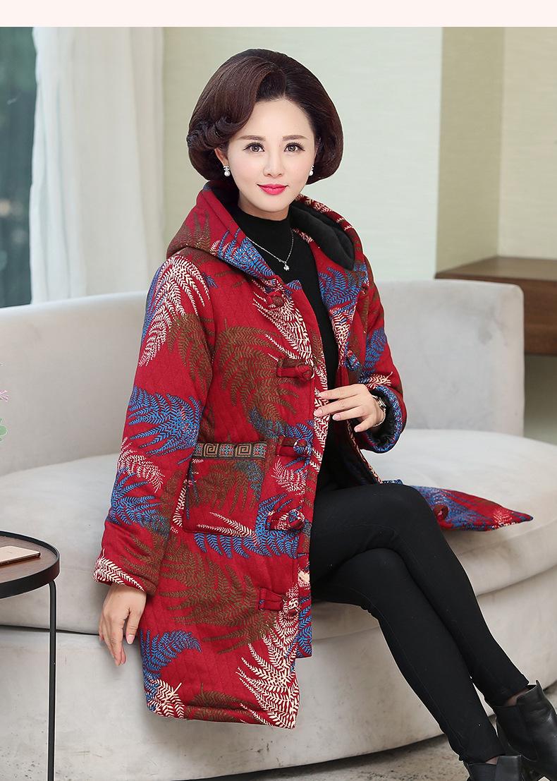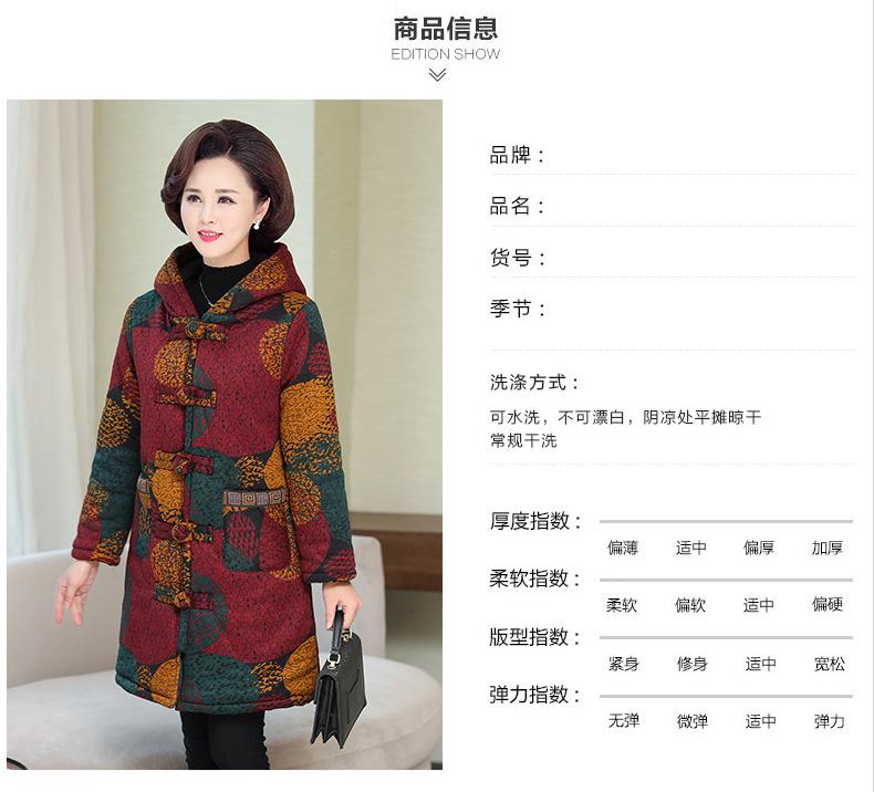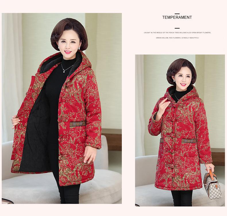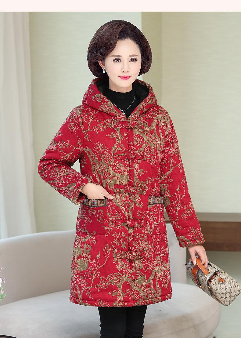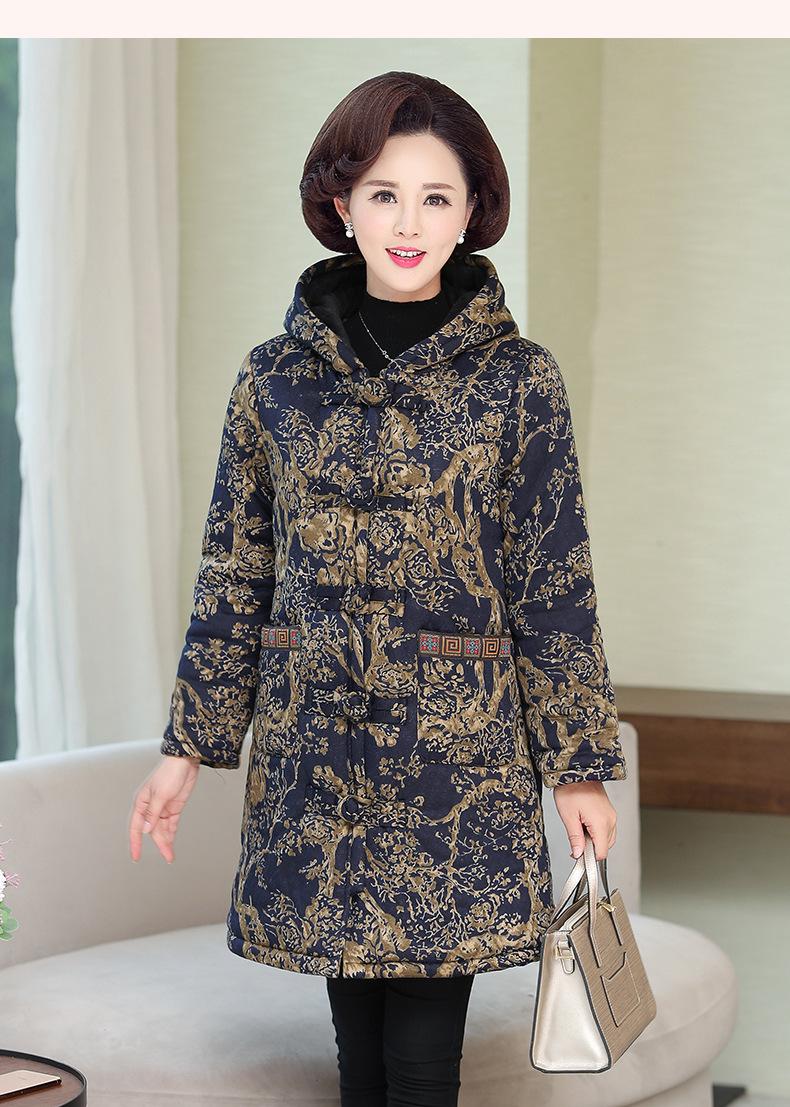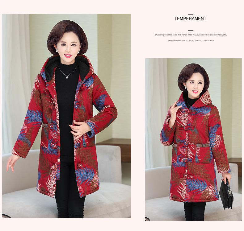 Abrigo grueso con forro polar de longitud media para mujeres de mediana edad y mayores, abrigo cálido de algodón acolchado con cintura, ropa de invierno, abrigo con capucha de algodón acolchado, ropa para madres