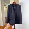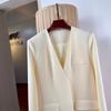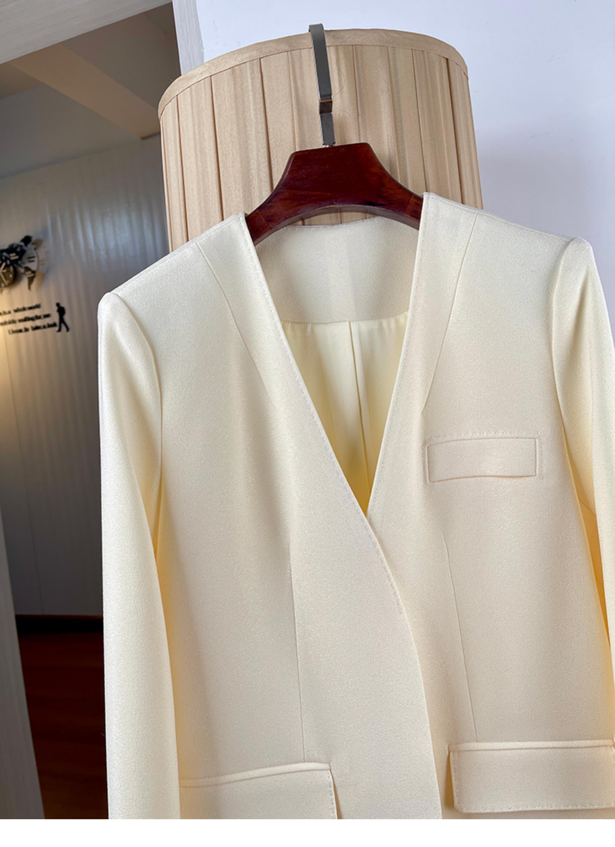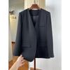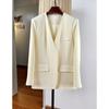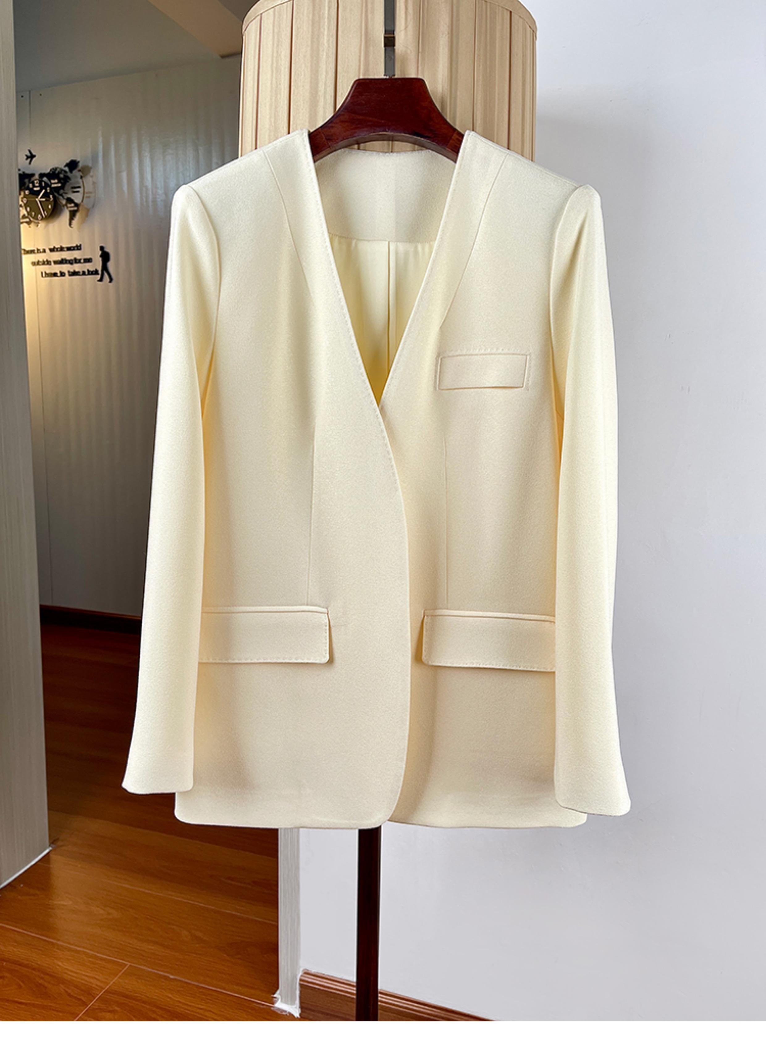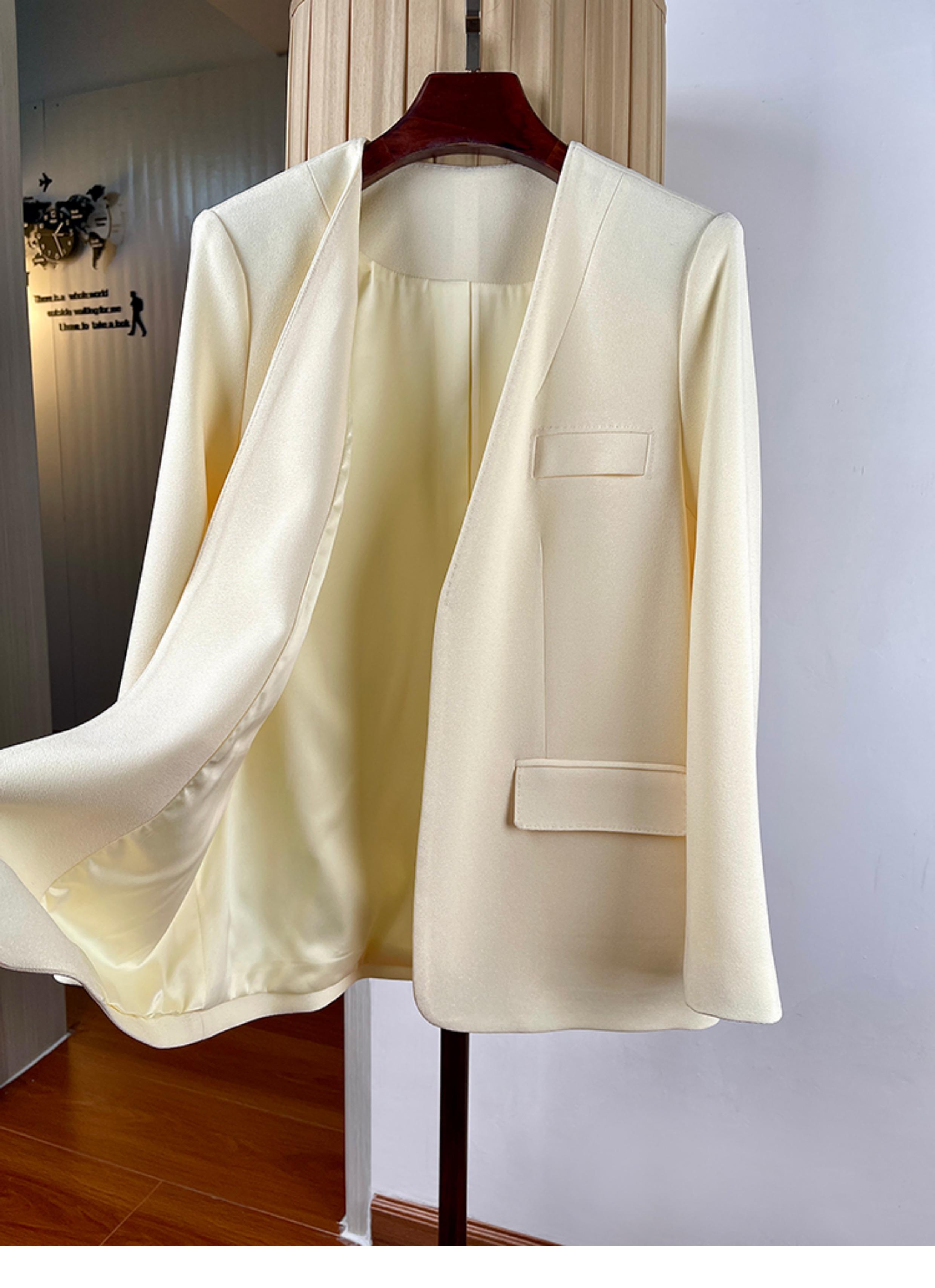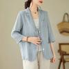 Chaqueta Cárdigan sin Hebilla Primavera Elegante para Viaje Holgada Atmosférica Acetato Lino para Mujer Top de Traje de Largo Medio