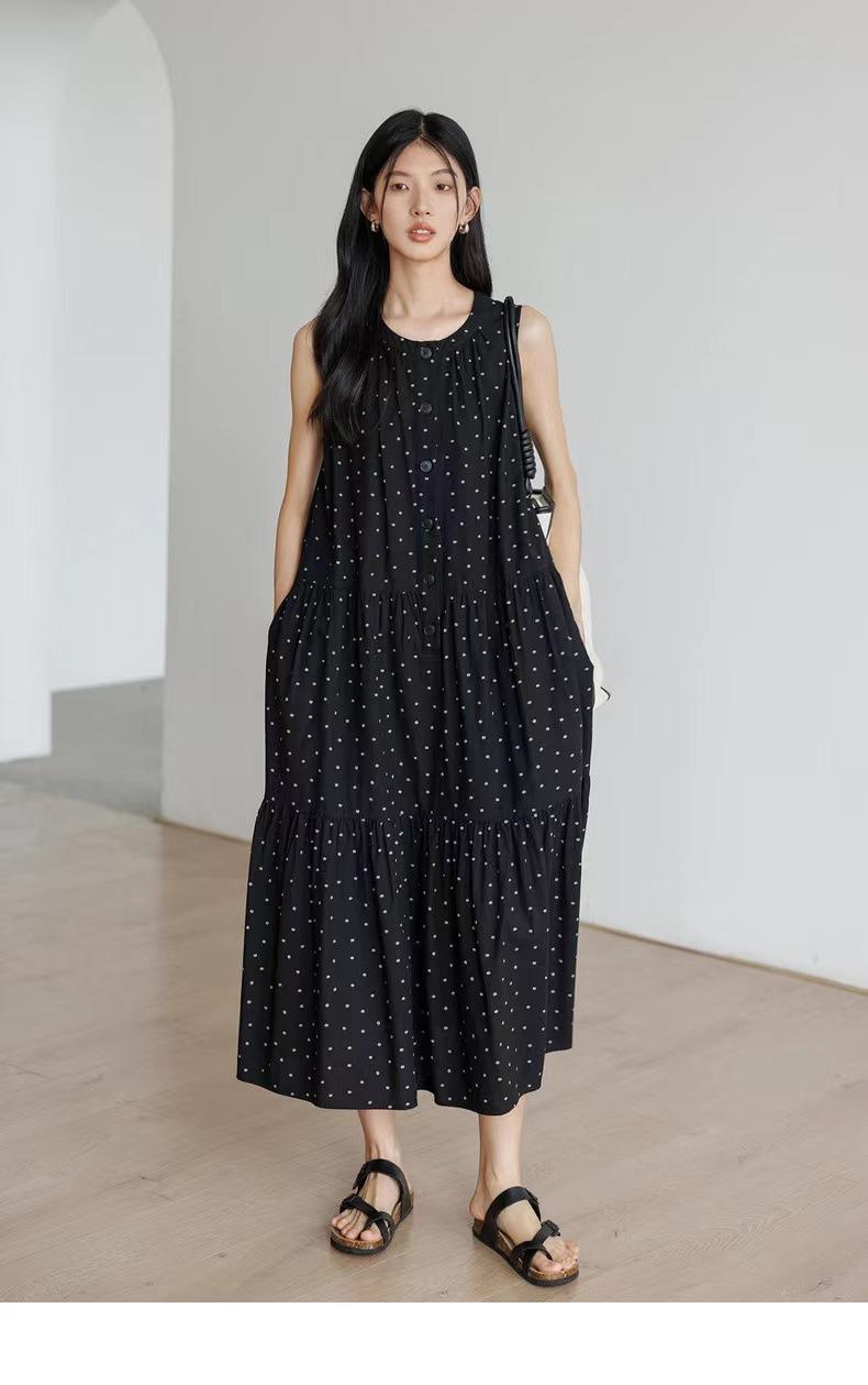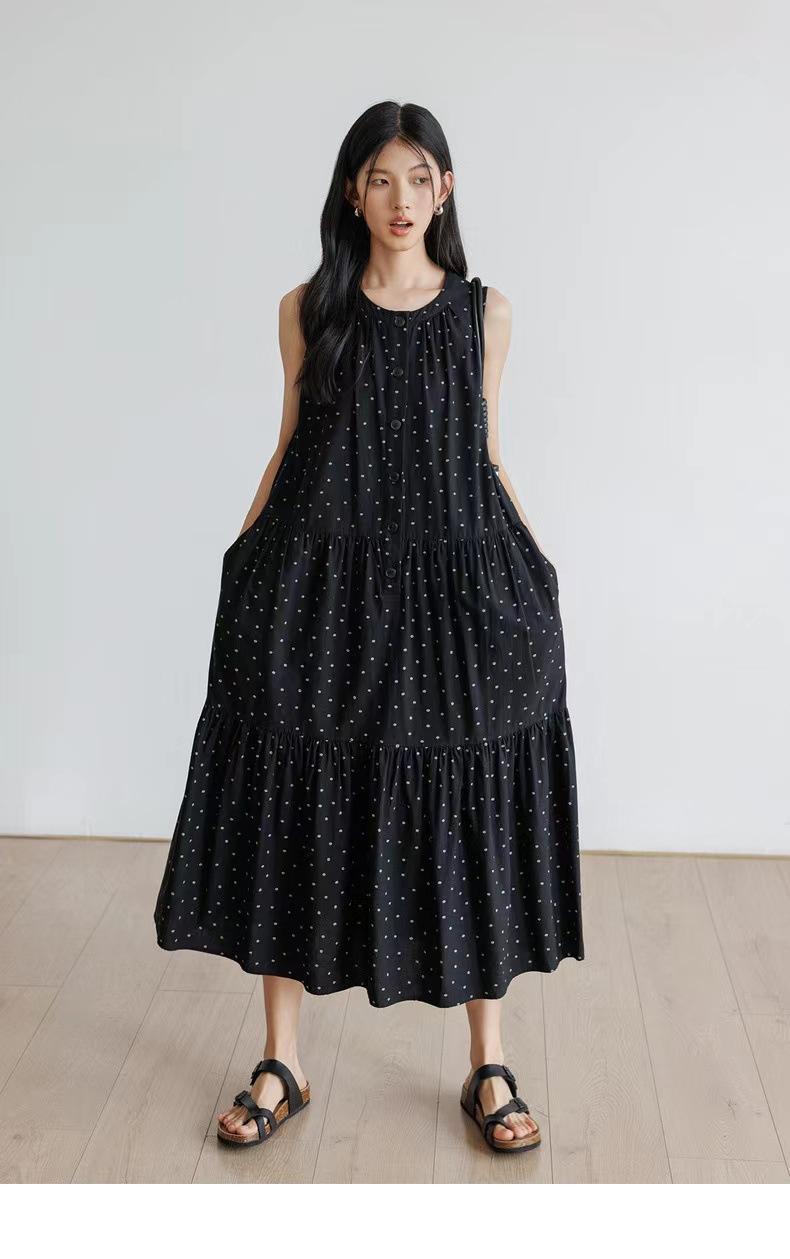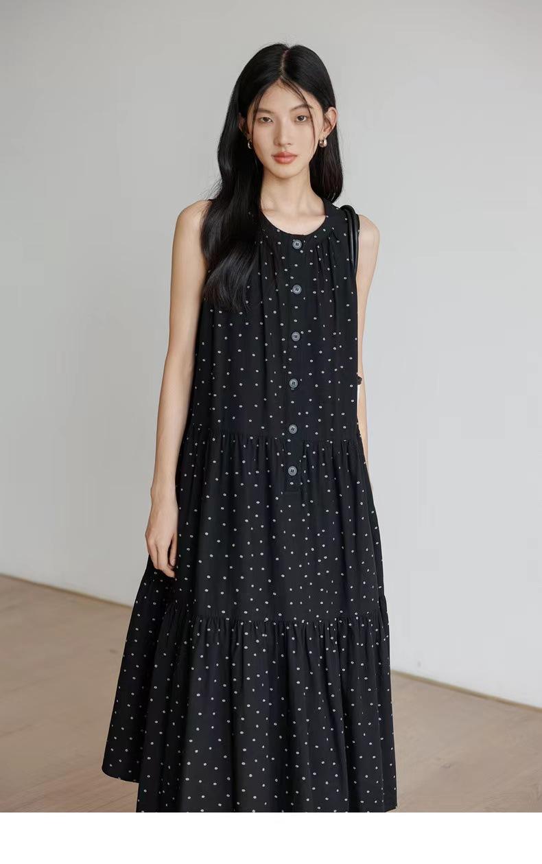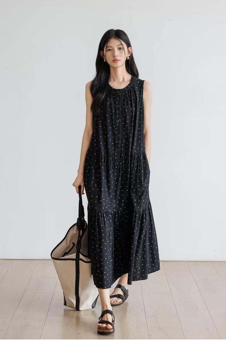 Primavera y verano 2025 Nuevo vestido estilo francés Vestido largo holgado sin mangas con estampado floral para mujer