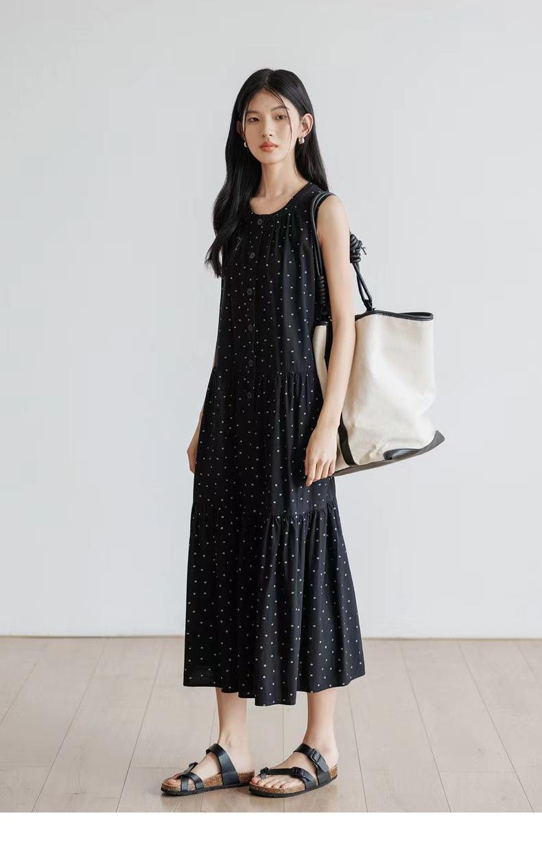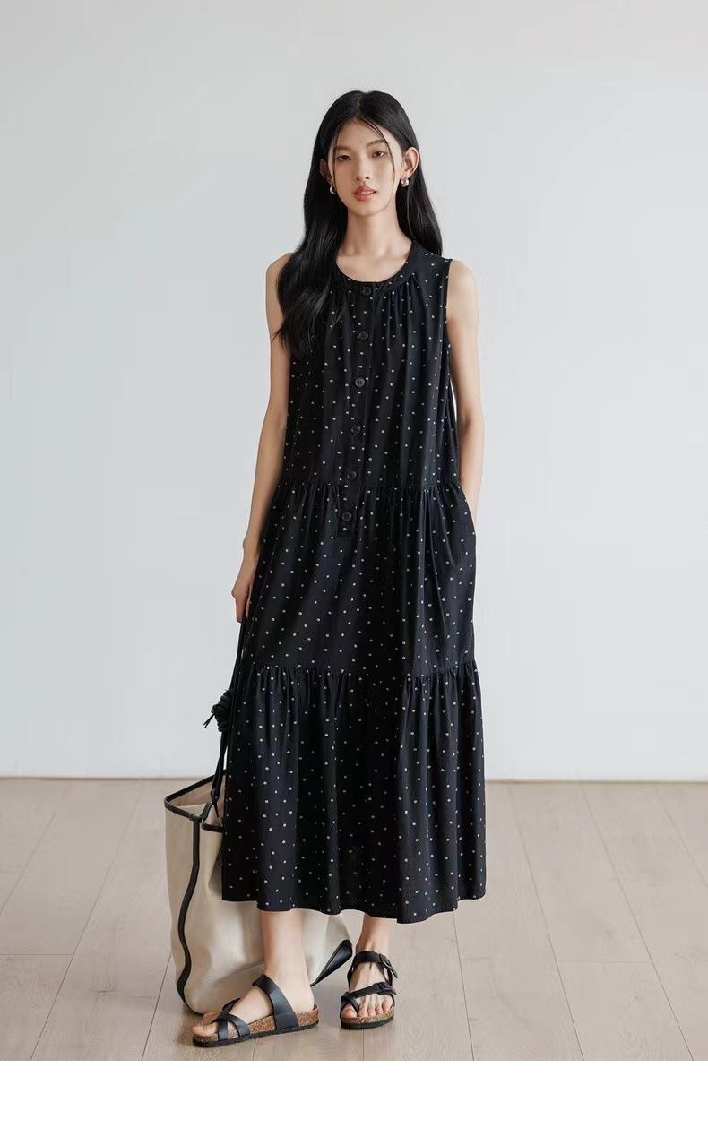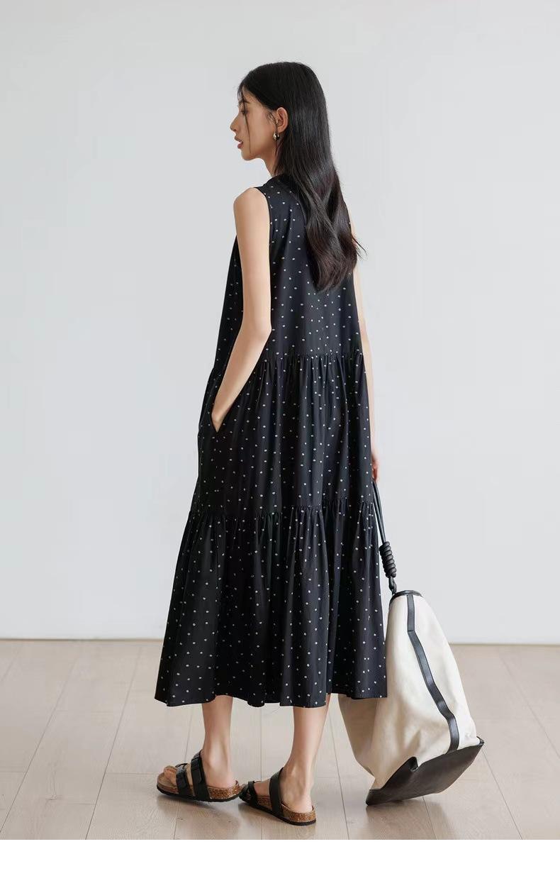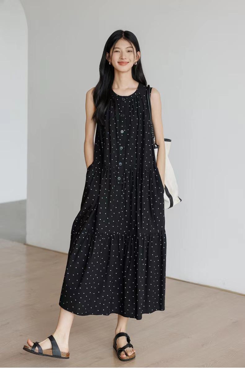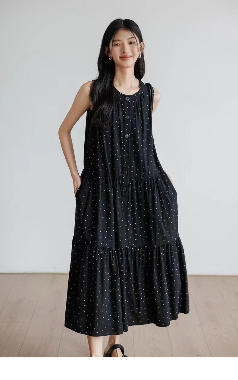 Primavera y verano 2025 Nuevo vestido estilo francés Vestido largo holgado sin mangas con estampado floral para mujer