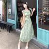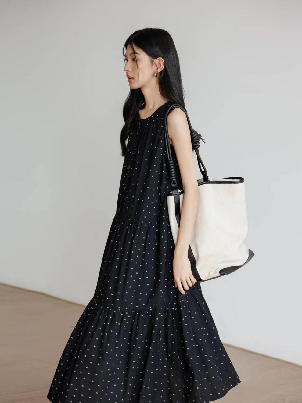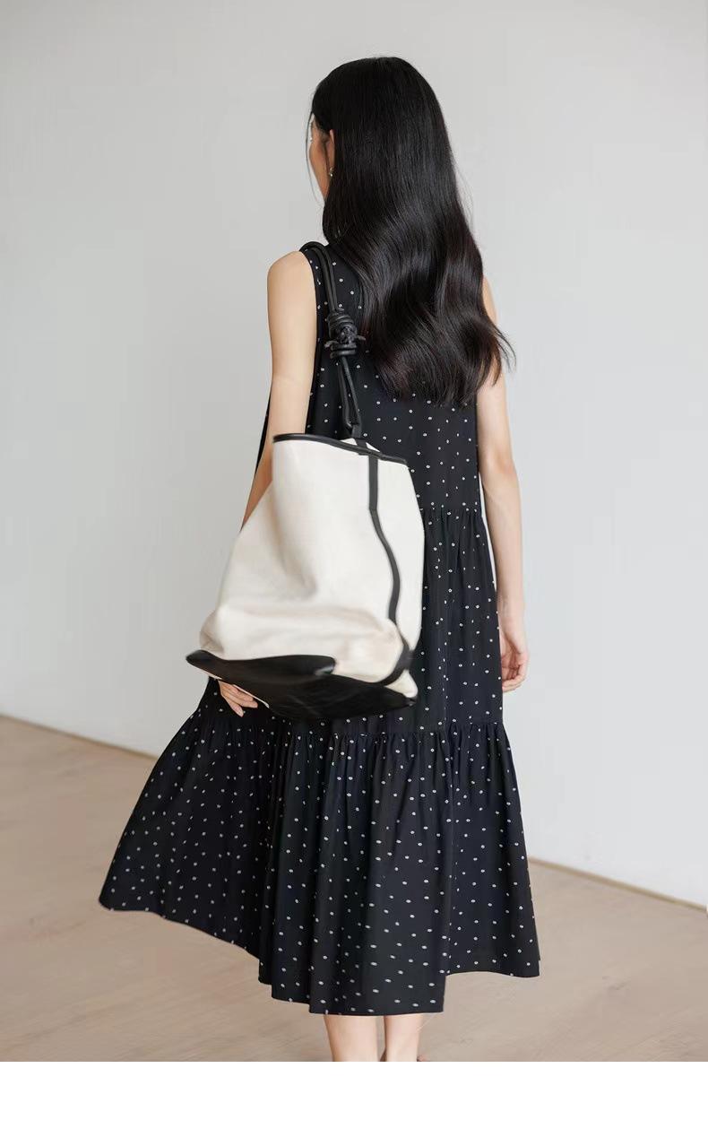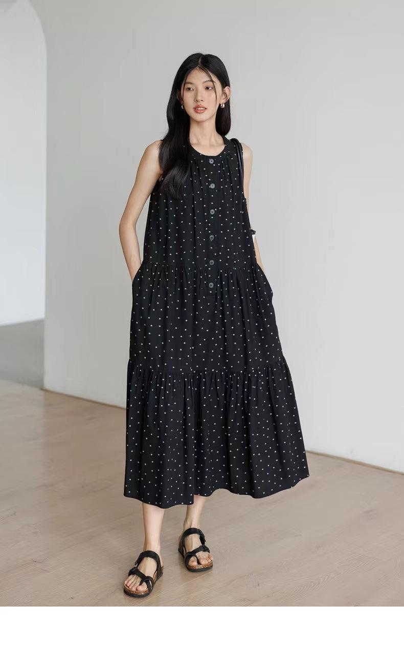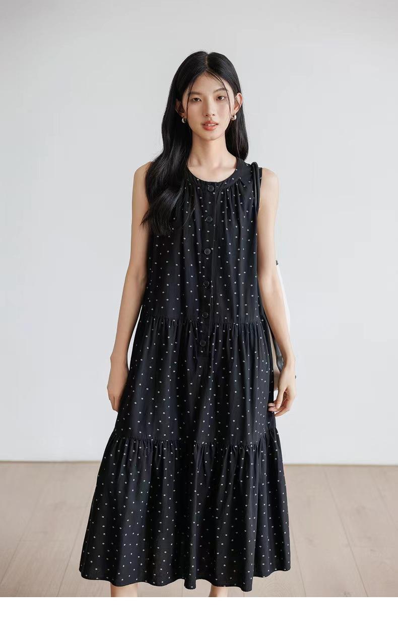 Primavera y verano 2025 Nuevo vestido estilo francés Vestido largo holgado sin mangas con estampado floral para mujer