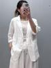 Chaqueta de Traje de Lino para Mujer Primavera y Verano 2025 Estilo Occidental Retro Literario Suelto Color Sólido Top Casual con C612