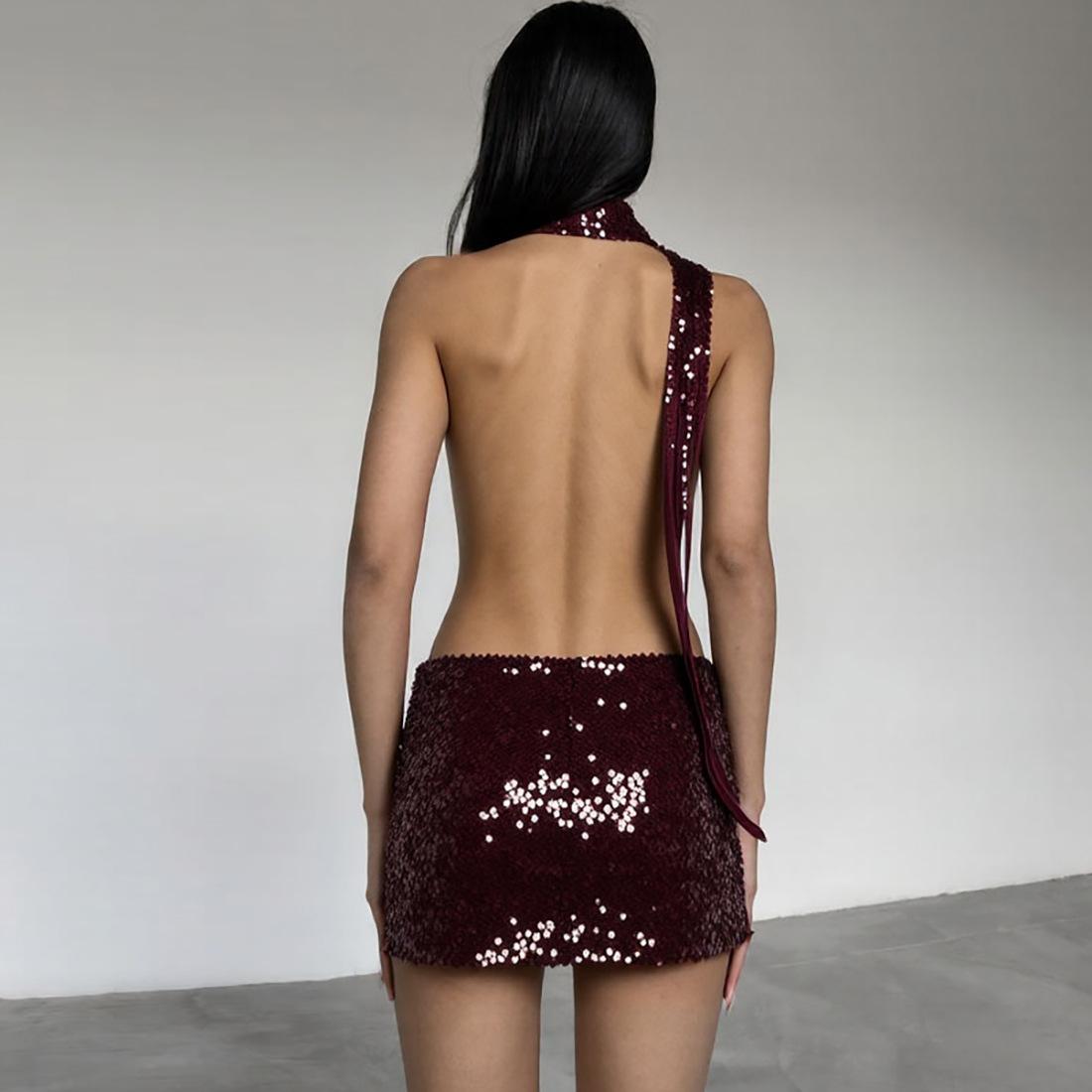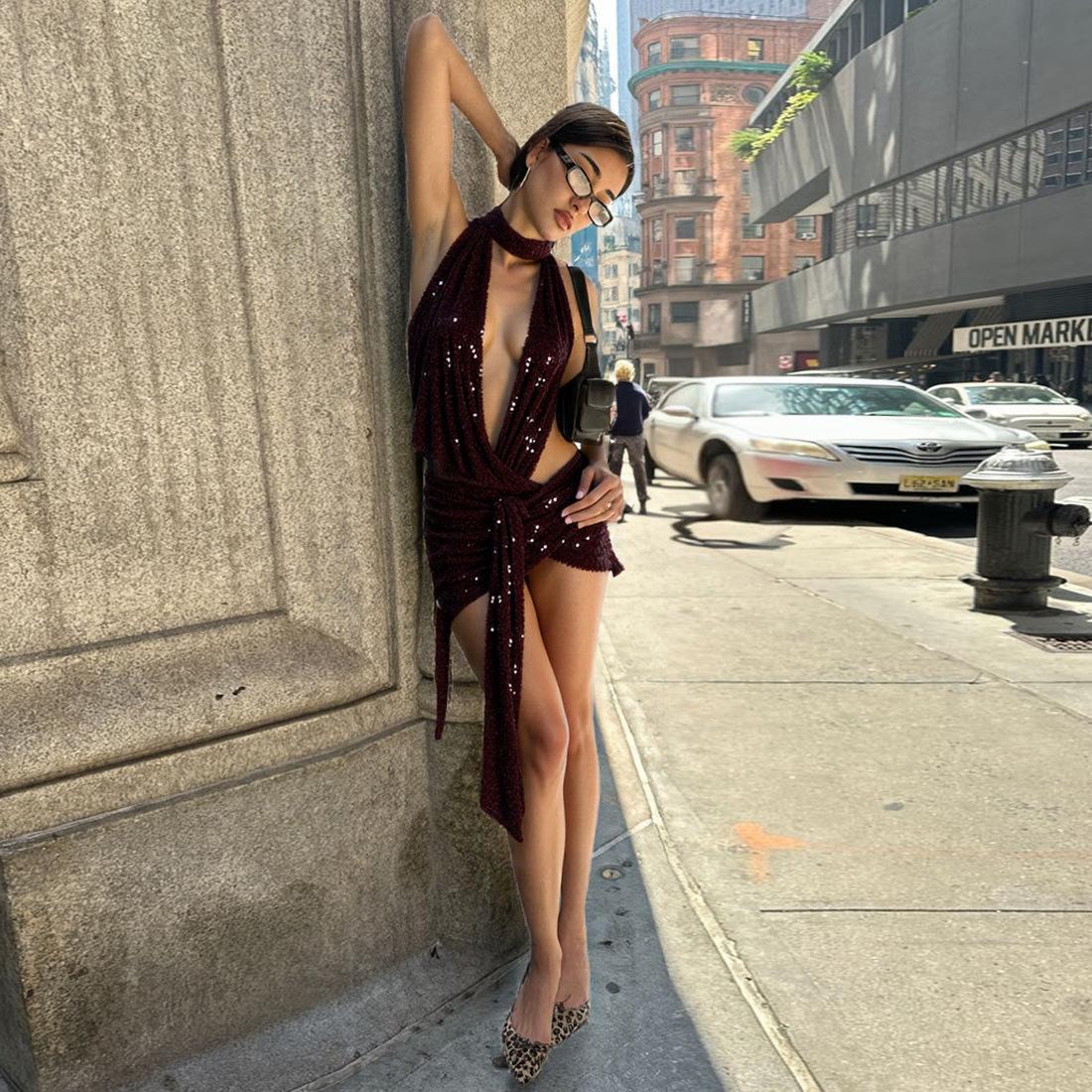 Vestido de primavera y verano 2025 con lentejuelas y escote en V profundo, estilo europeo y americano transfronterizo, para mujer, sexy, sexy, para chicas calientes