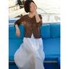 La modelo Xiaojing mide 166 cm y pesa 94 kg. Lleva una camiseta talla M.