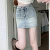 Falda de mezclilla elástica de cintura alta 2025 Nueva falda blanca Falda sexy ajustada a las caderas Falda corta petite