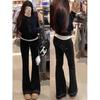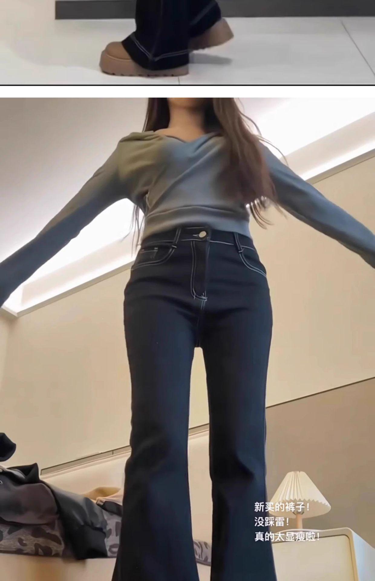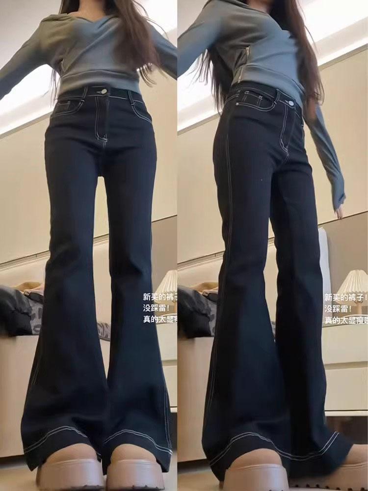 Pantalones vaqueros ajustados negros de talla grande para mujer, primavera y otoño, nuevos pantalones de herradura de cintura alta bordados con bolsillo ajustado para chica gordita