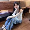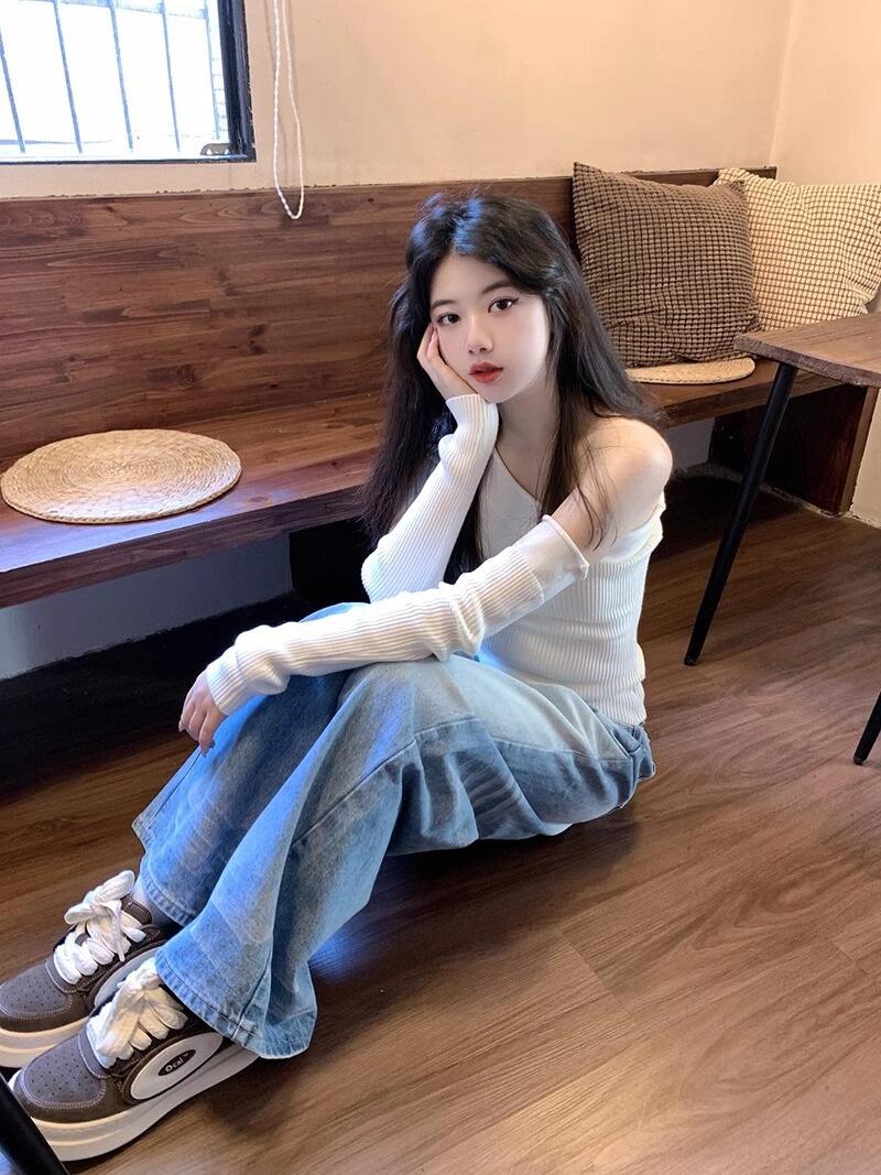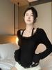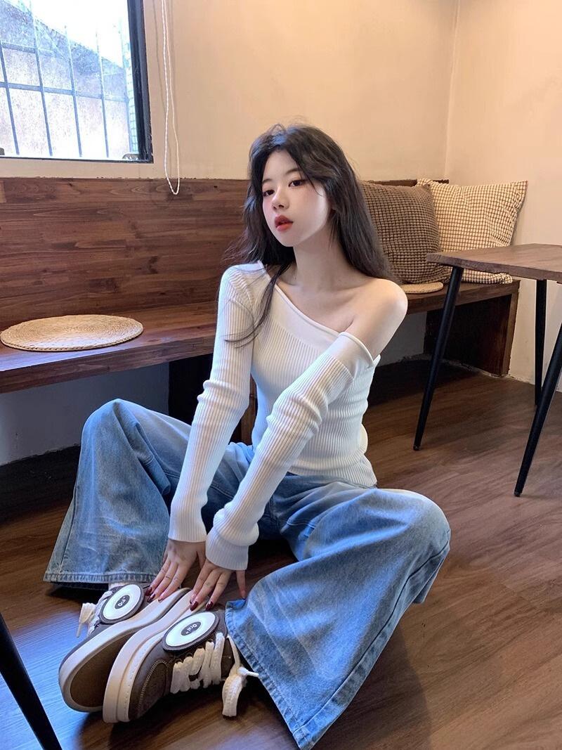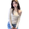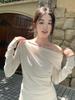 Camiseta de punto de manga larga con cuello halter y hombros descubiertos, estilo Pure Desire, para mujer, estilo Spice Girls, de principios de otoño, estilo sexy, ajustado y adelgazante.