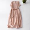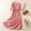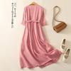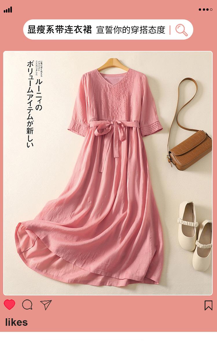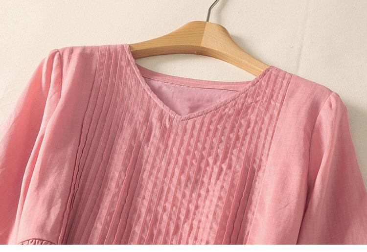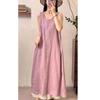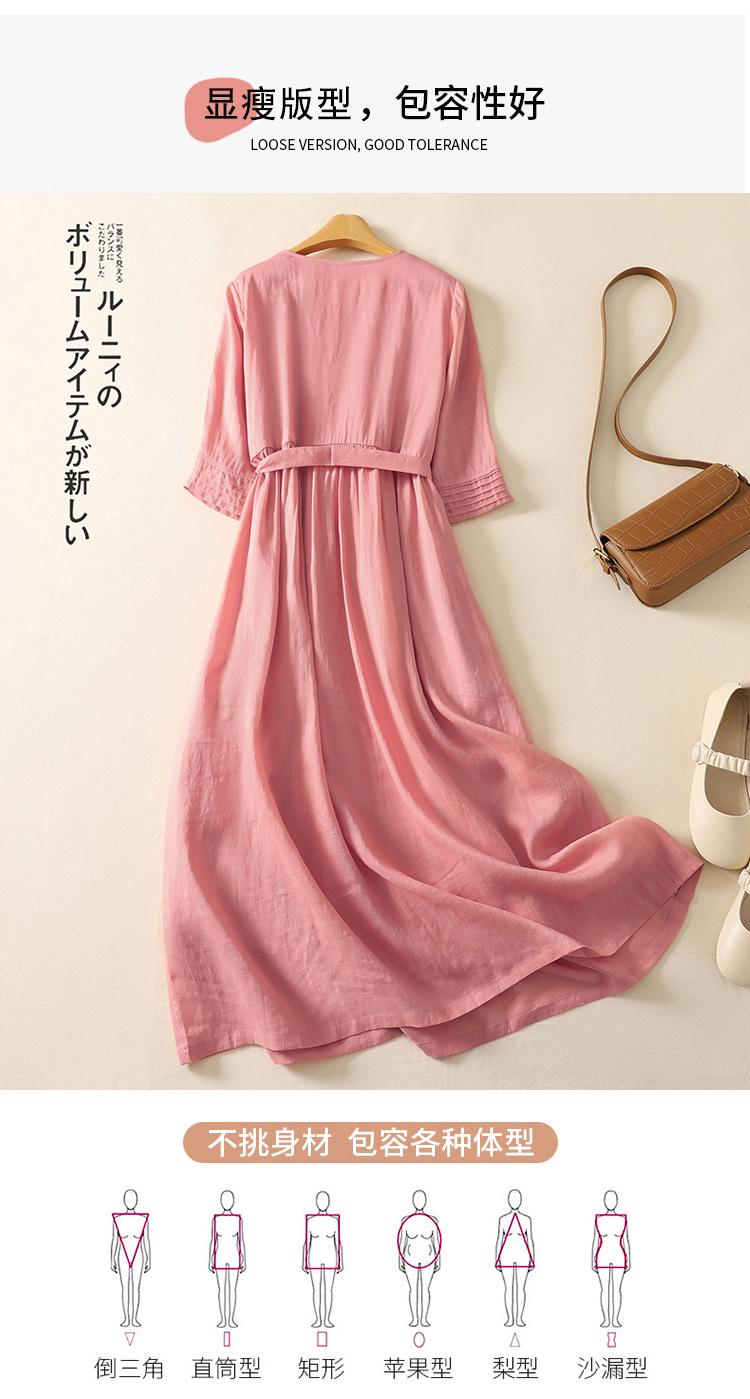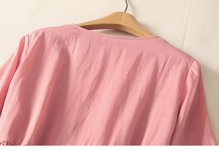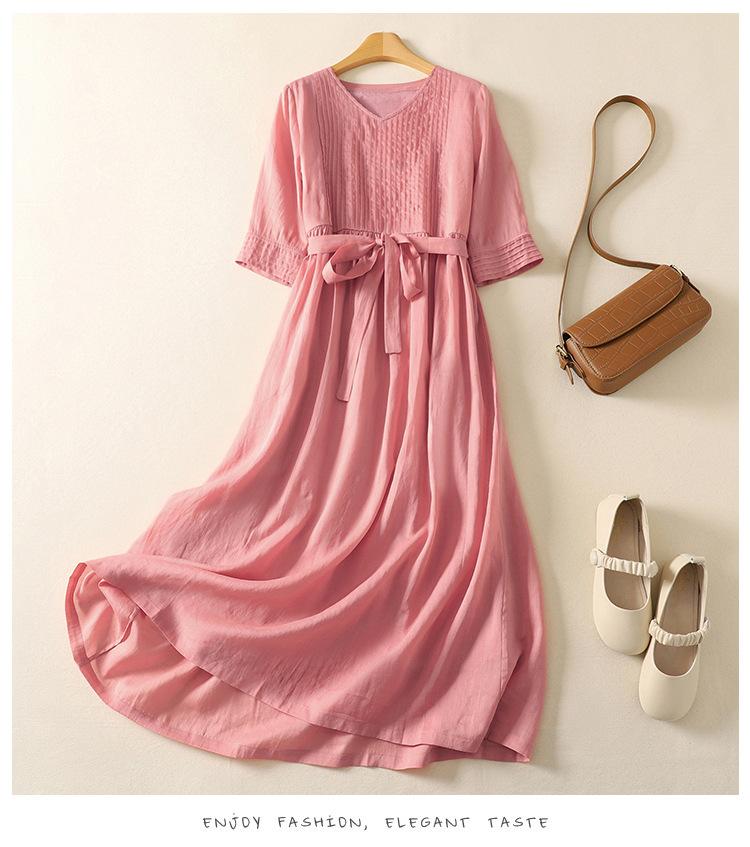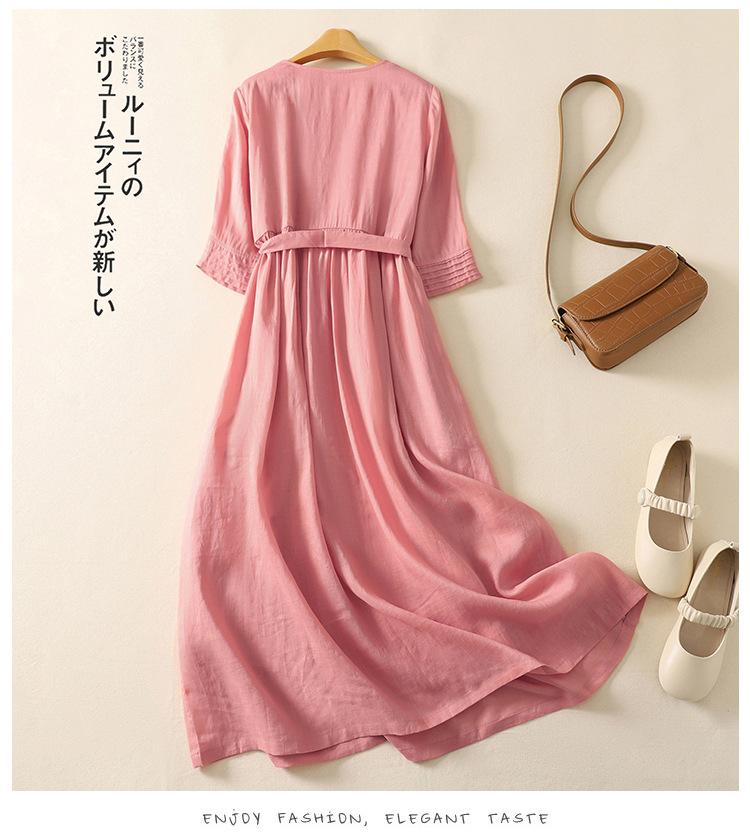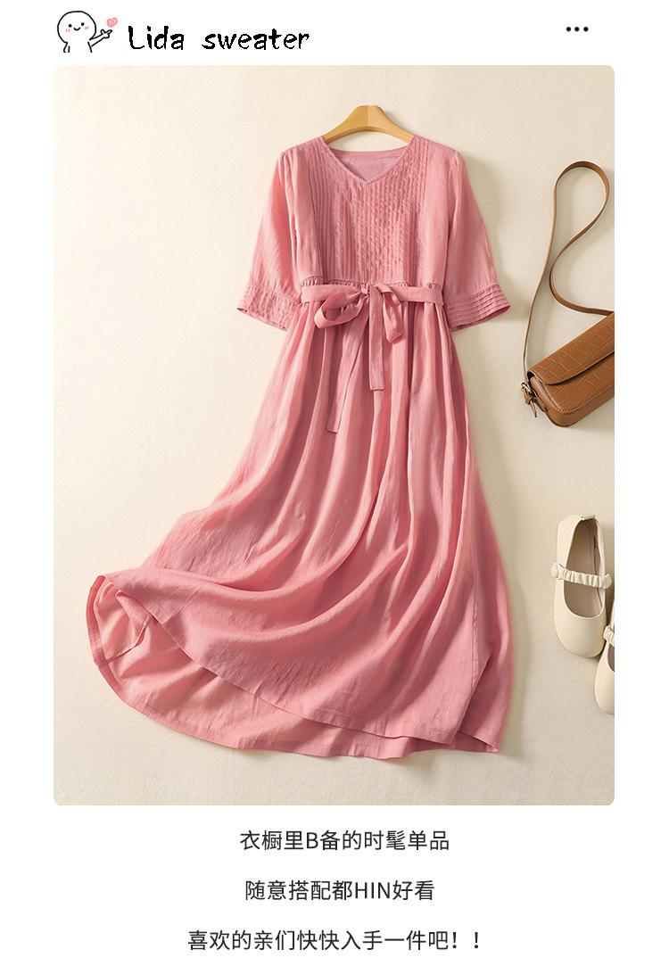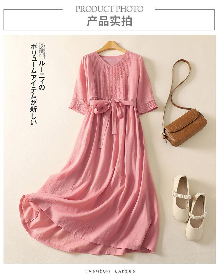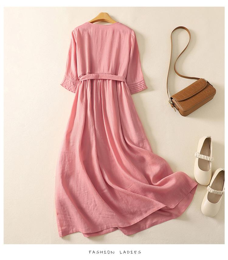 2025 tiro real verano nuevo algodón y lino literario fresco dulce cuello en v vestido largo mujeres
