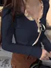 Camiseta de manga larga ajustada con encaje y costuras estilo Pure Desire para otoño, nueva prenda sexy para chicas.