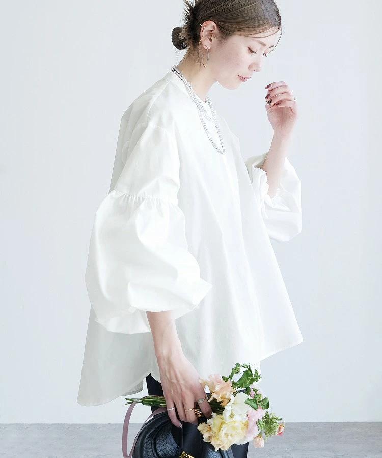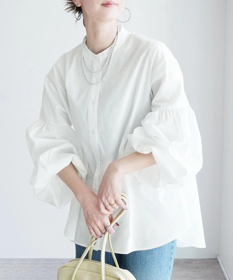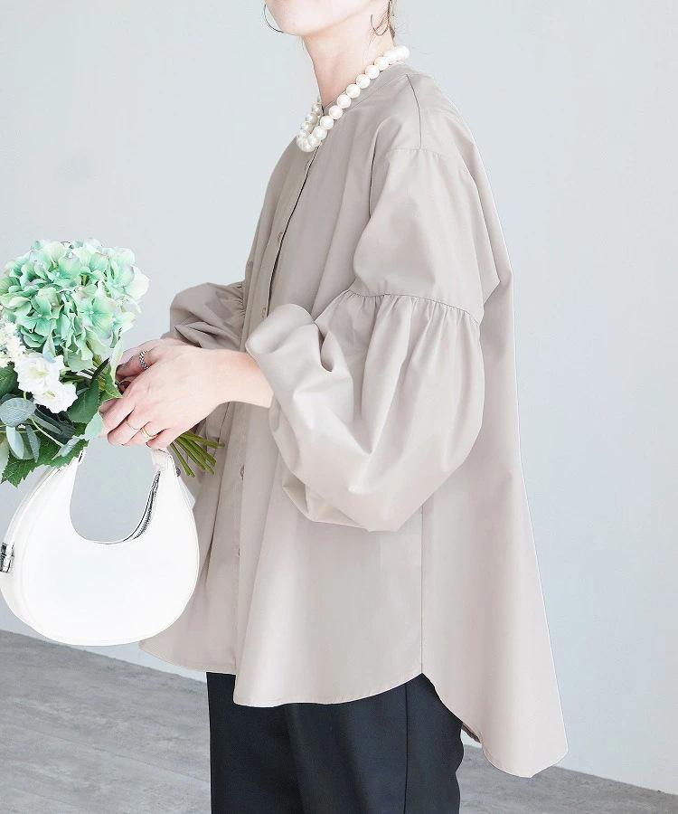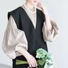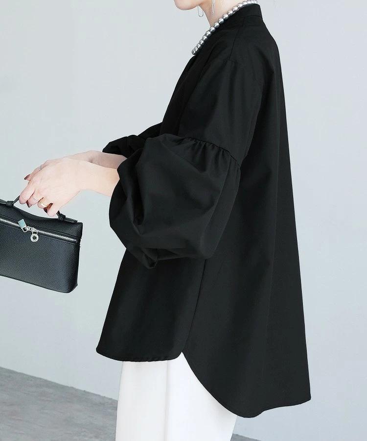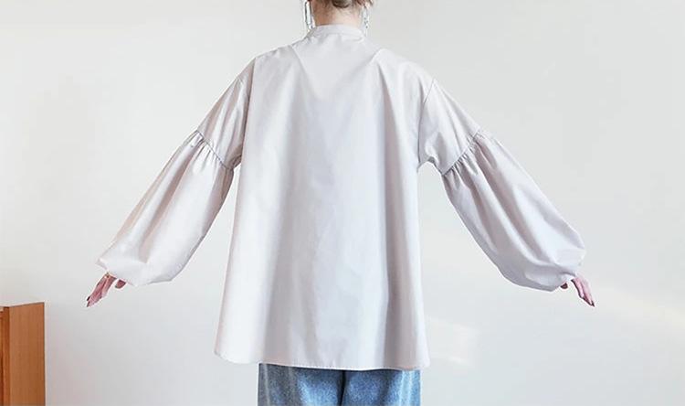 Camisa japonesa de manga abullonada para mujer, diseño de nicho, holgada, informal, de color liso, combinable con todo.