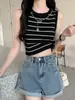 Suéter sin mangas ajustado con hombros descubiertos y cuello alto estilo coreano para mujer, moda de verano 2025, ropa exterior, chaleco interior
