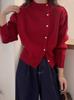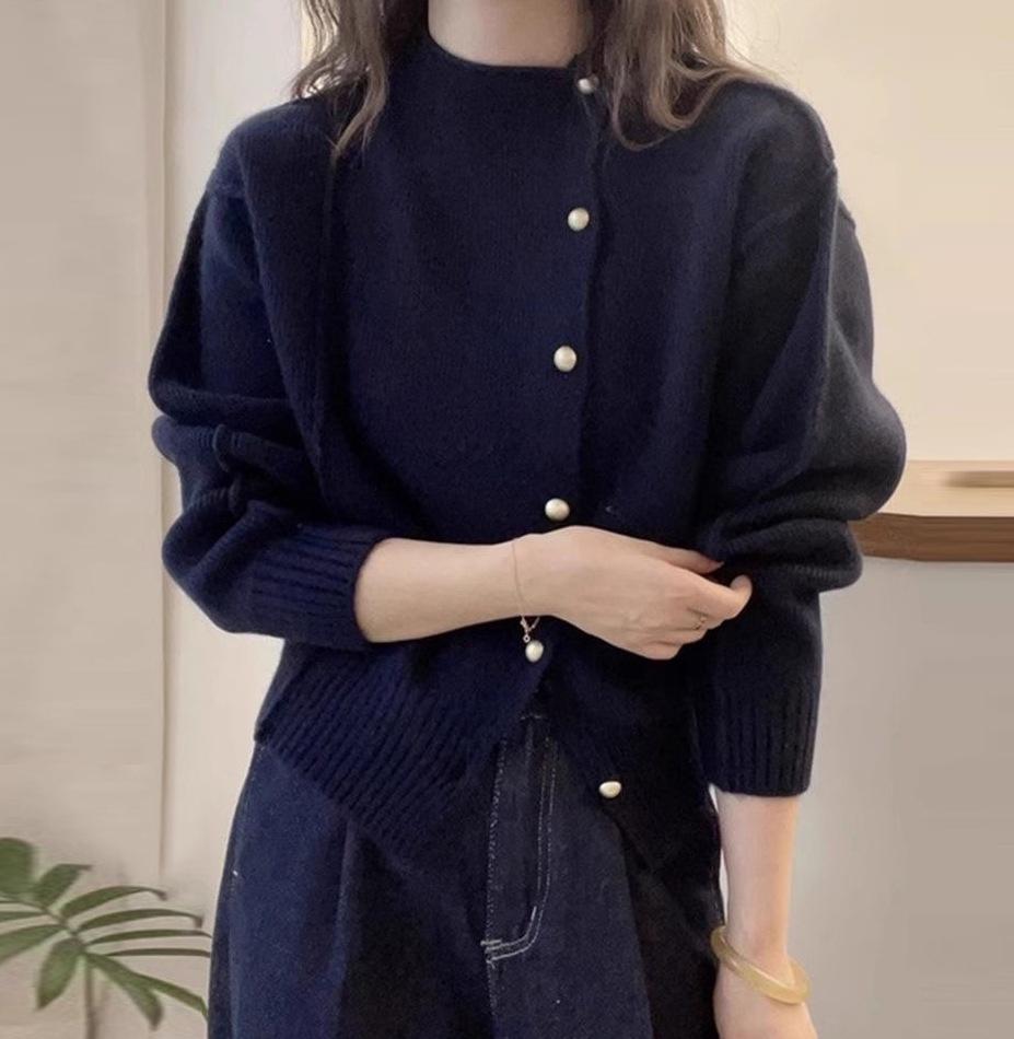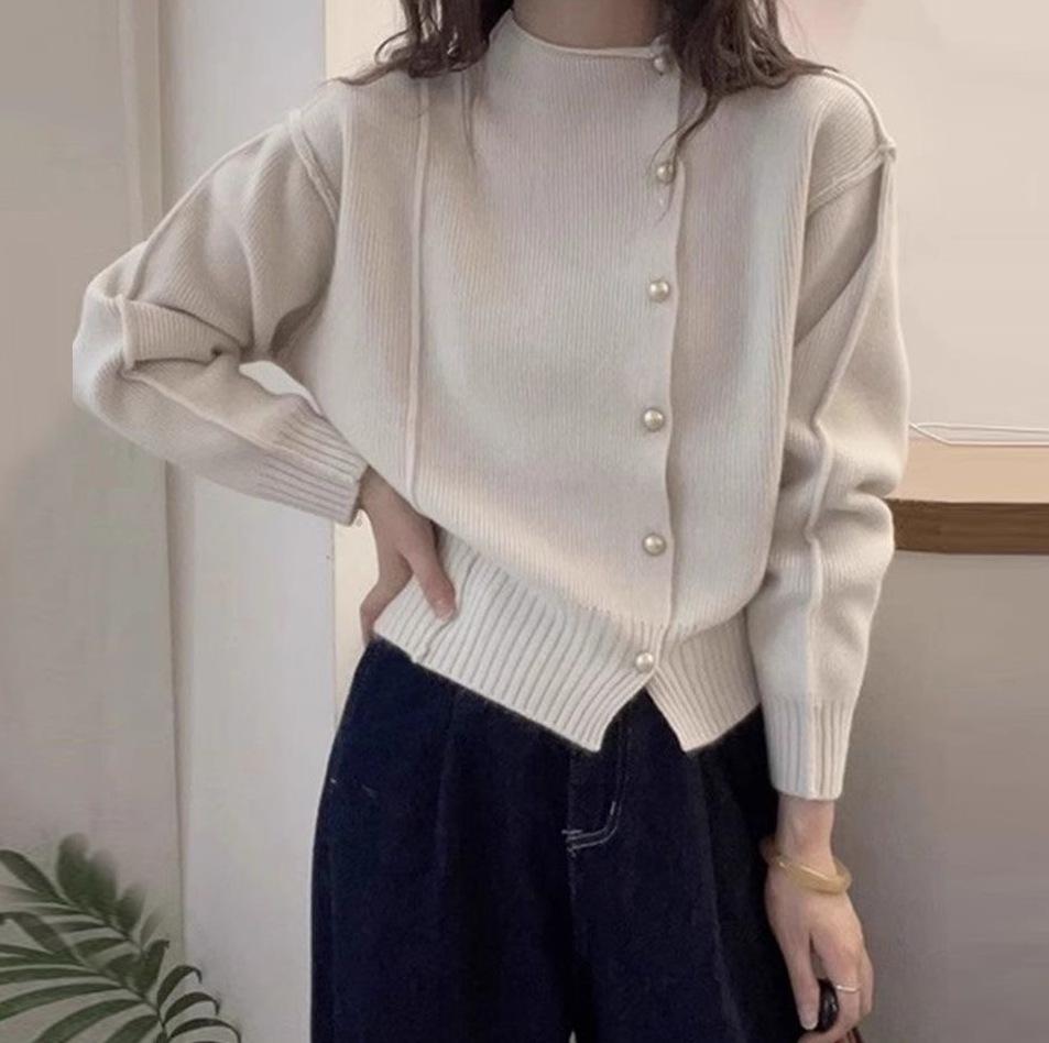 Suéter de punto con hebilla oblicua y diseño de estación europea, moderno, para primavera y otoño, cómodo, estilo occidental, abrigo adelgazante de moda para mujer.