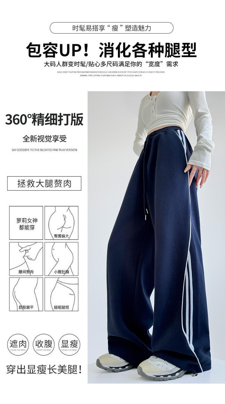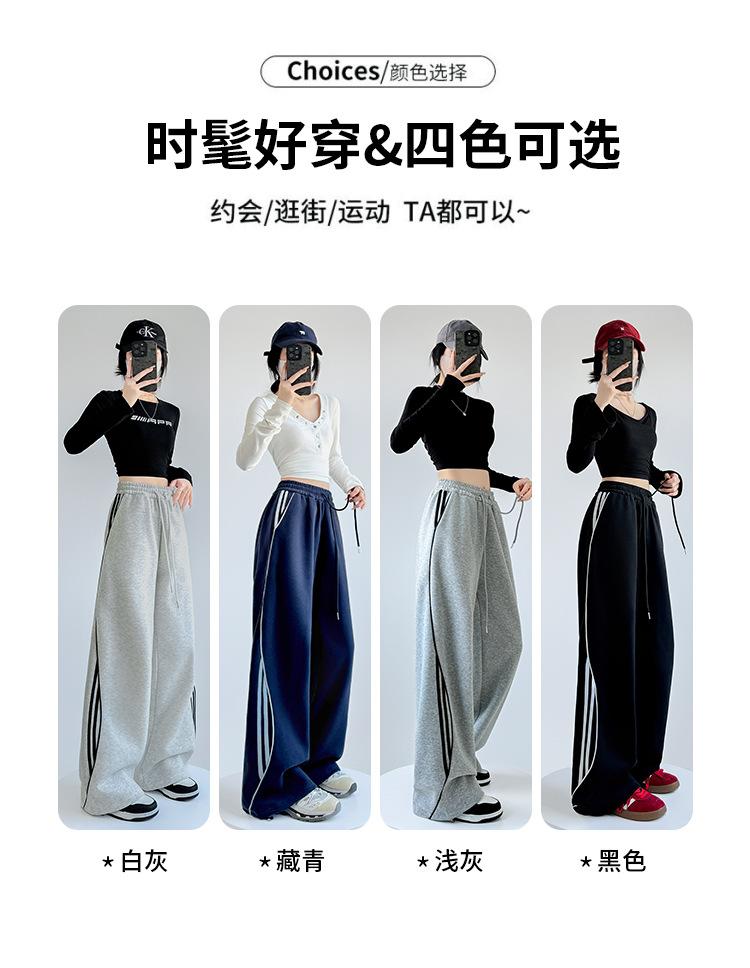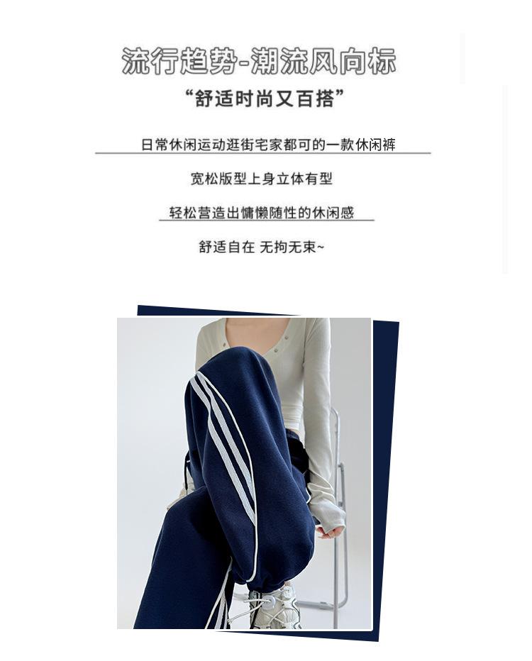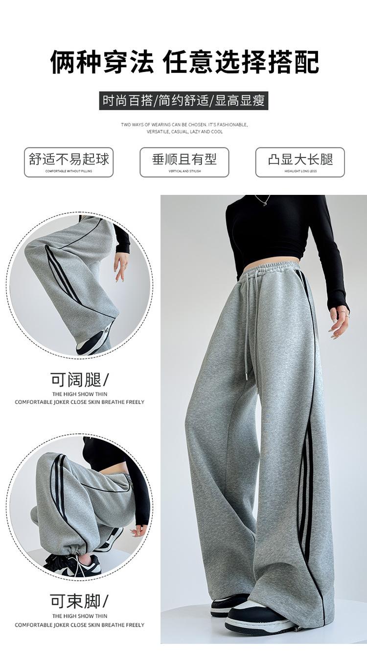 Pantalones deportivos americanos para mujer, novedad de 2025, diseño de primavera y otoño, pantalones casuales de pierna ancha, pantalones deportivos rectos con rayas.
