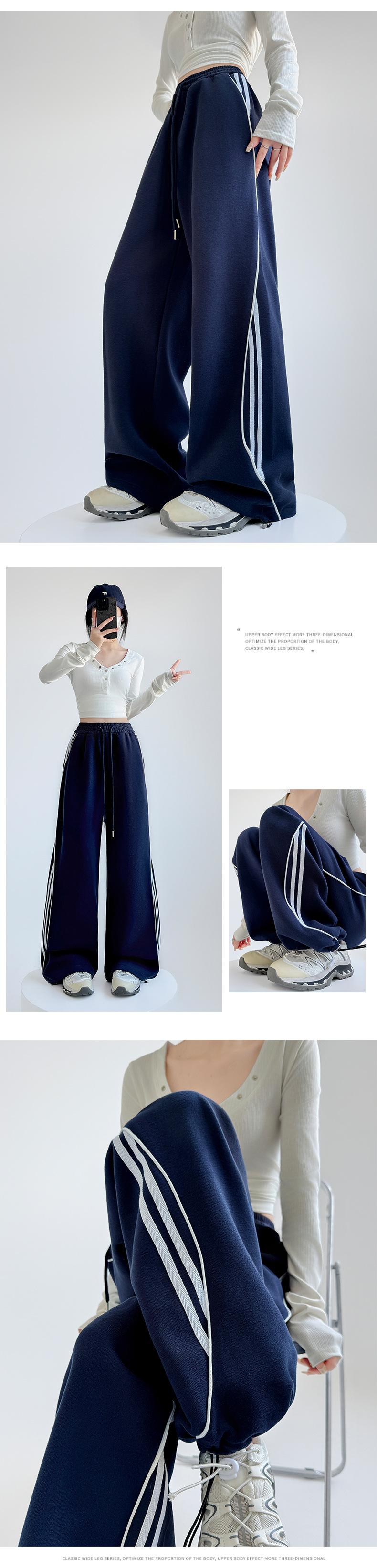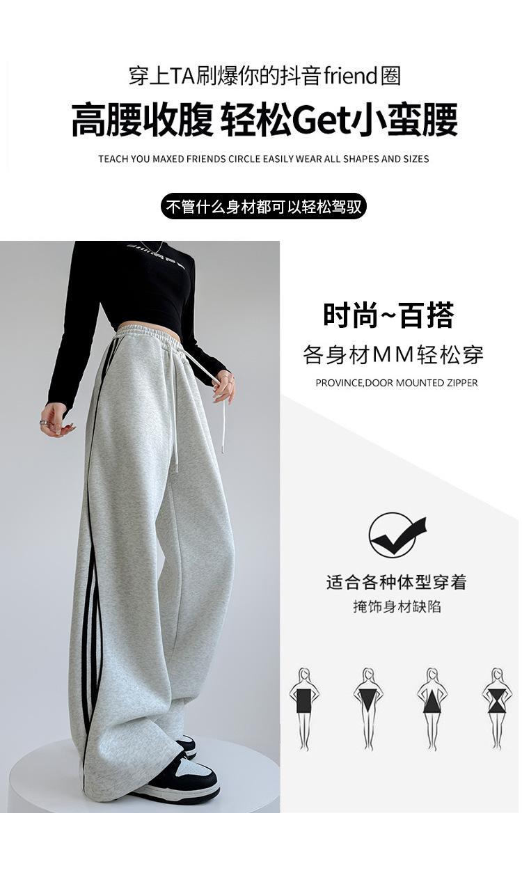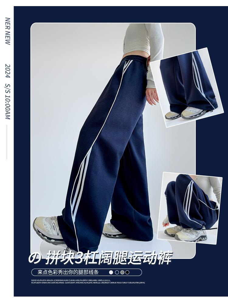Pantalones deportivos americanos para mujer, novedad de 2025, diseño de primavera y otoño, pantalones casuales de pierna ancha, pantalones deportivos rectos con rayas.