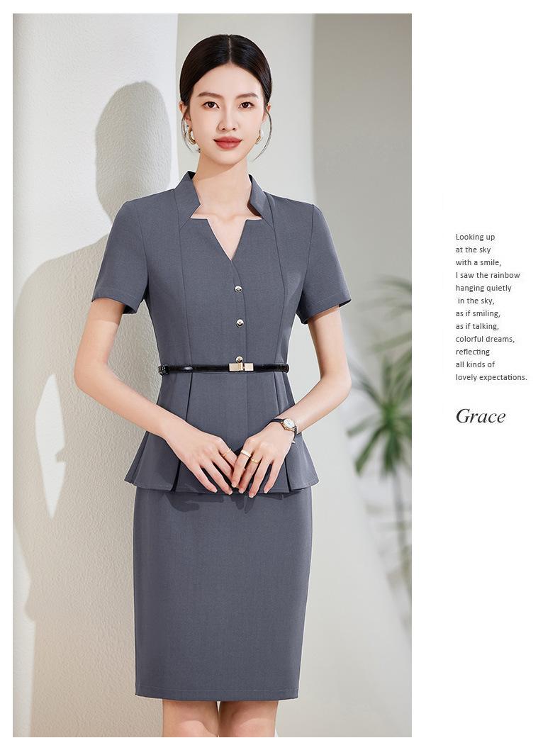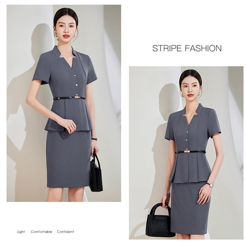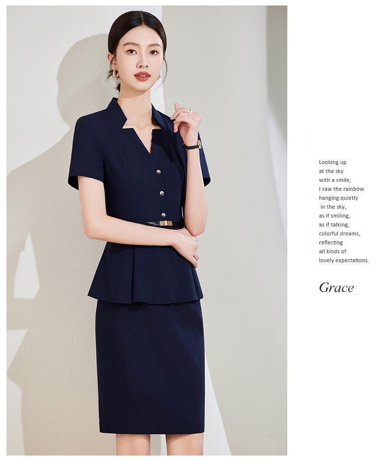 Trajes profesionales de manga corta de verano de moda para mujer, trajes de falda, ropa de trabajo de joyería de esteticista, ropa de trabajo de recepción de hotel