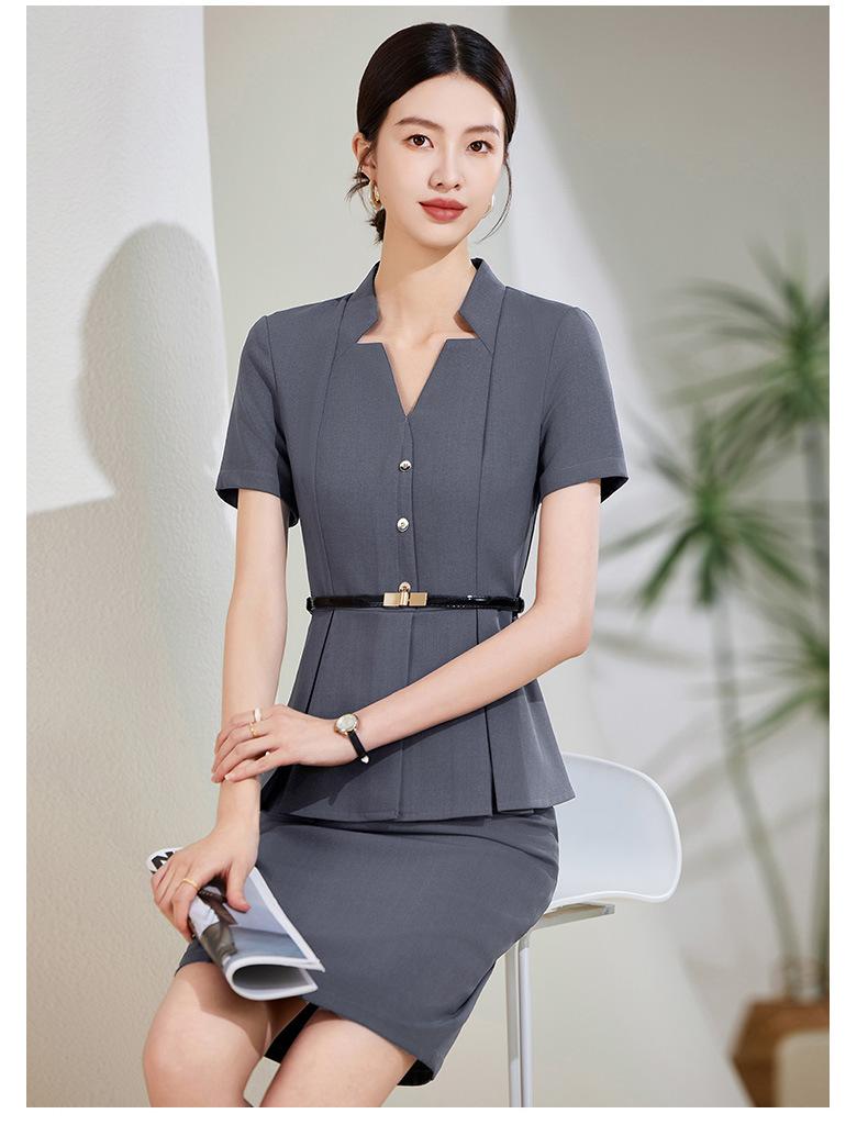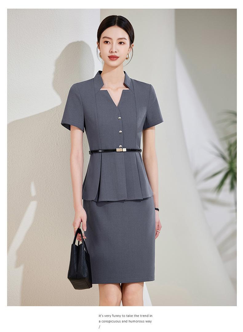 Traje de verano con cuello alto fino, falda, ropa formal para mujer, traje profesional de moda, ropa de trabajo para tienda de oro, ropa de trabajo para tienda de joyería de hotel