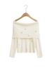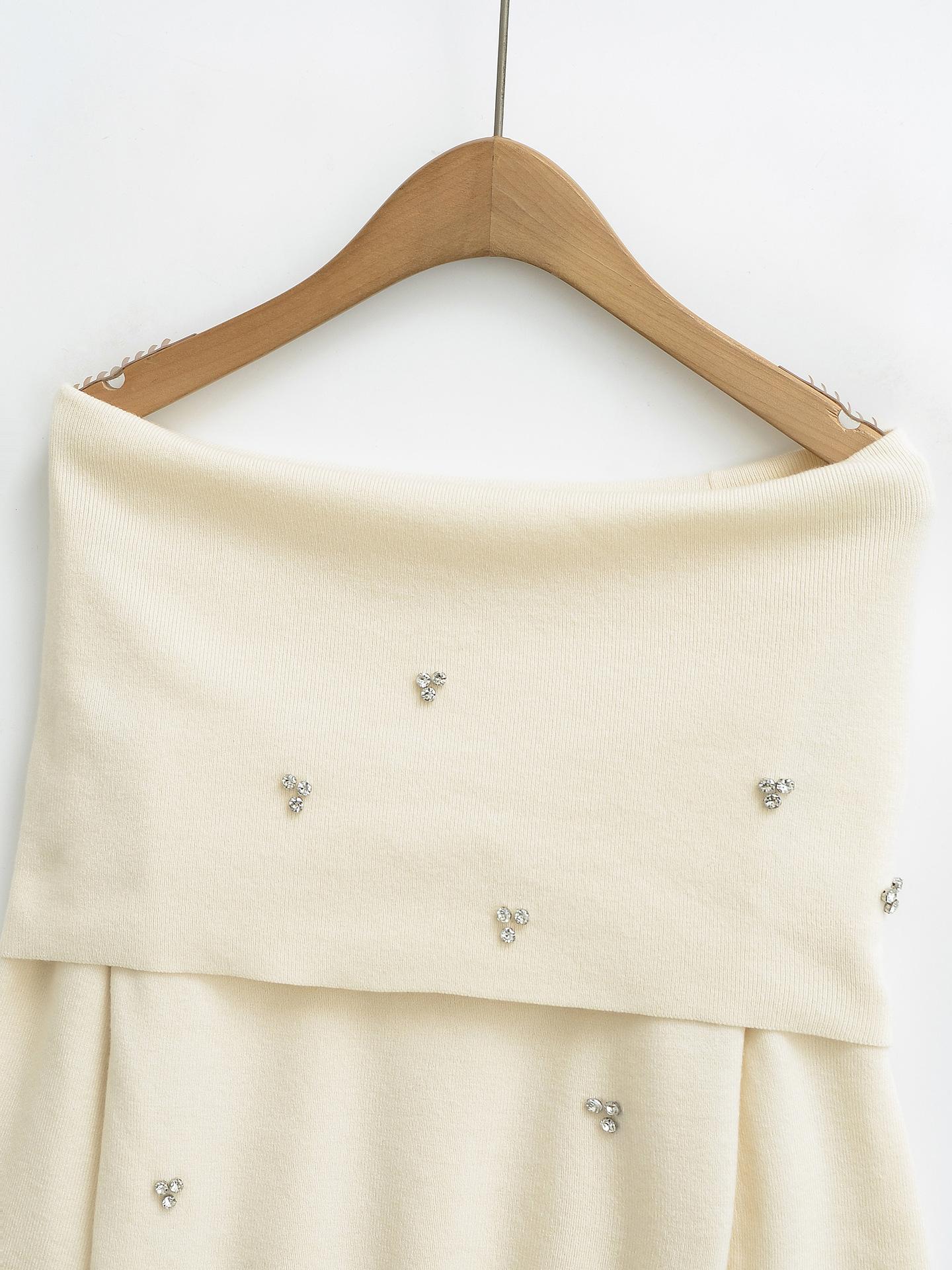 Ropa de Mujer Europea y Americana Transfronteriza 2025 Primavera Nuevo Taladro de Uñas Decorativo Tejido de Punto con Hombros Descubiertos UWG950017