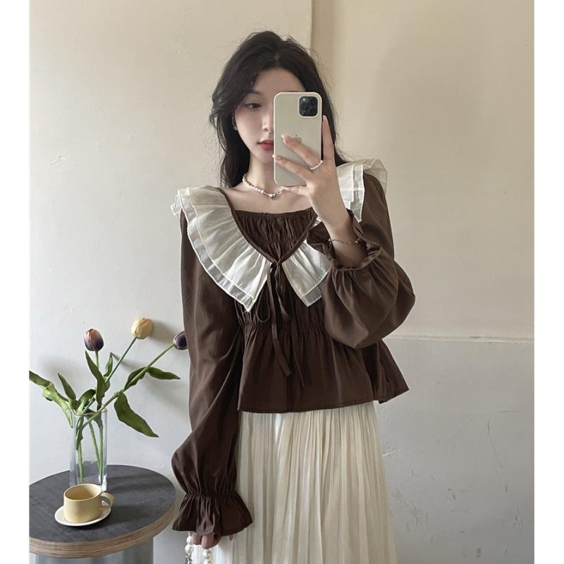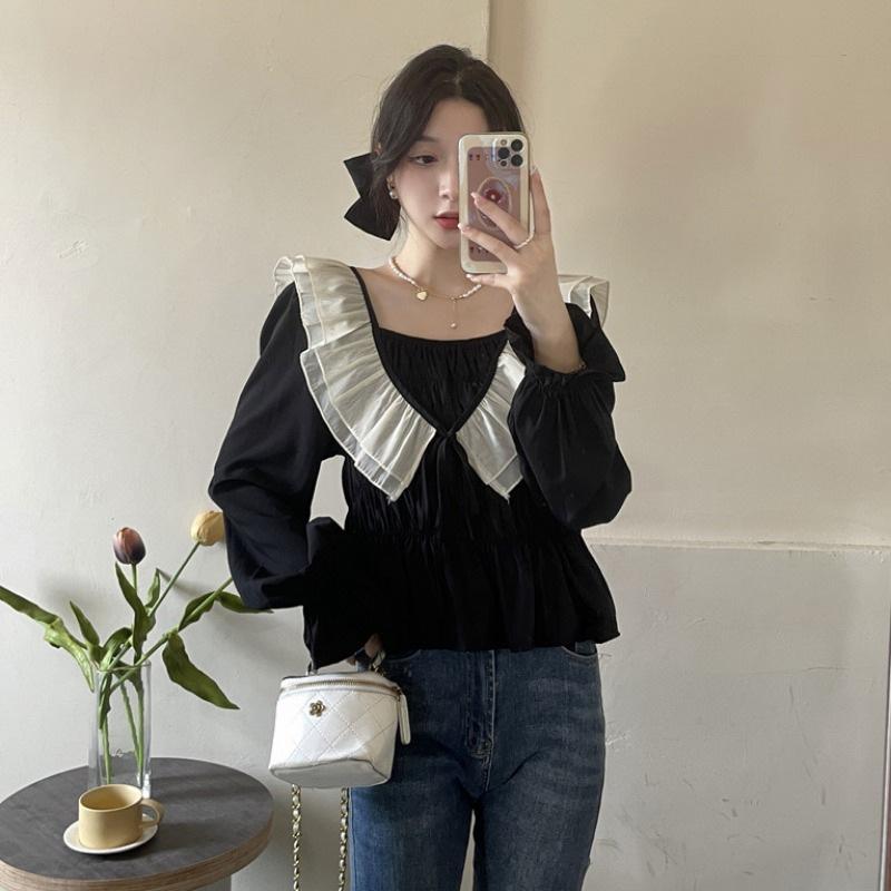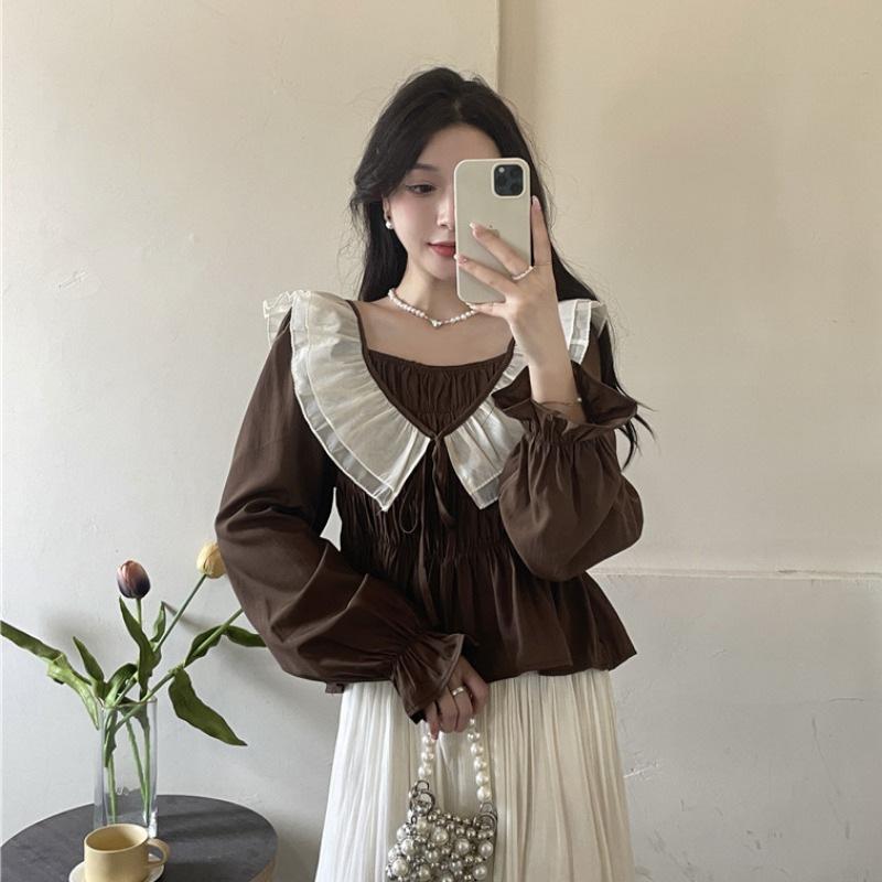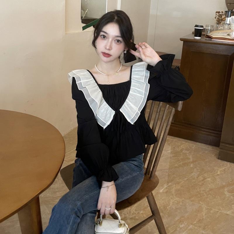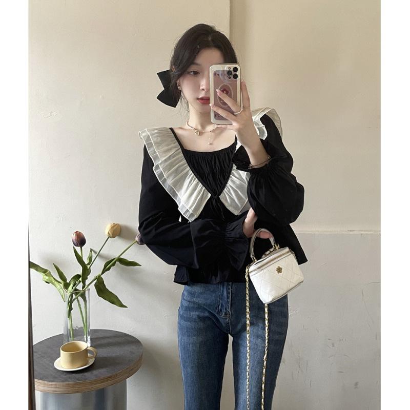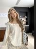 Camiseta de Manga Larga Sexy Spice Girl con Costuras Fruncidas Francesas Elegante Nuevo Estilo Deseo Puro Nicho Moda Top Ins Mujeres