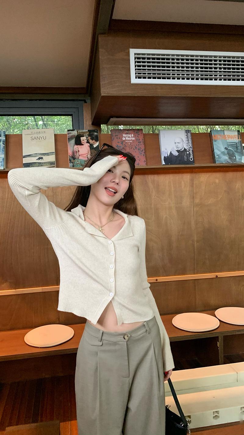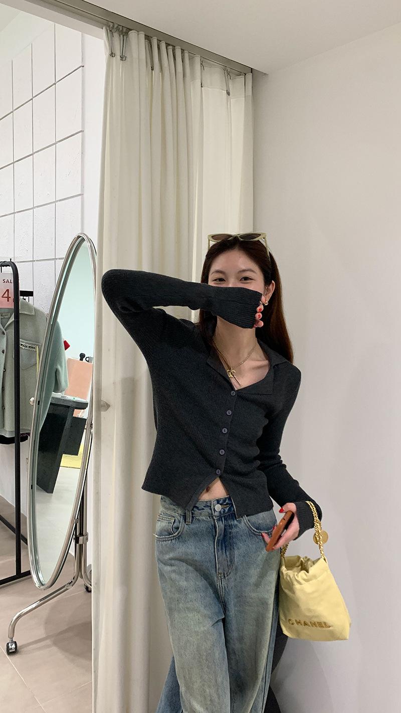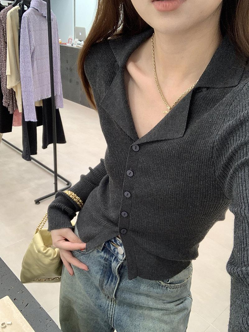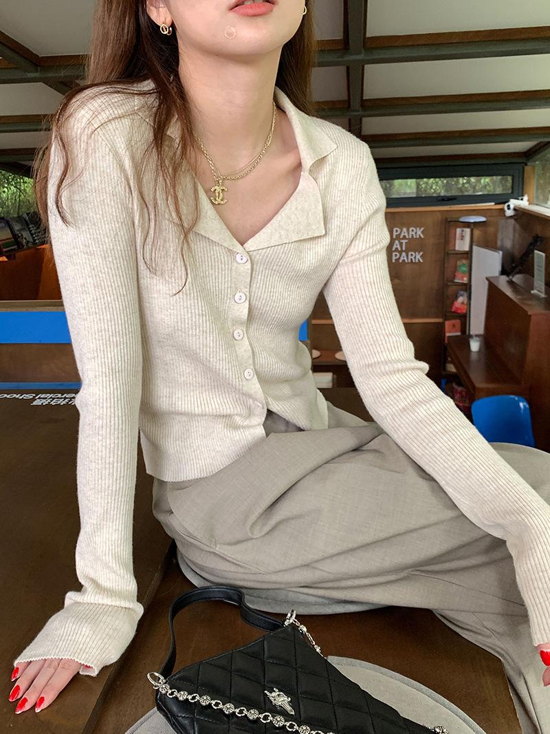 Cárdigan de punto con solapa de American Sweet Spice Girl, camiseta de manga larga, otoño e invierno, corte entallado, adelgazante, sexy, Pure Desire Top Ins