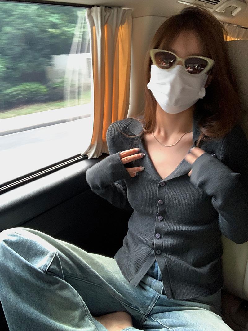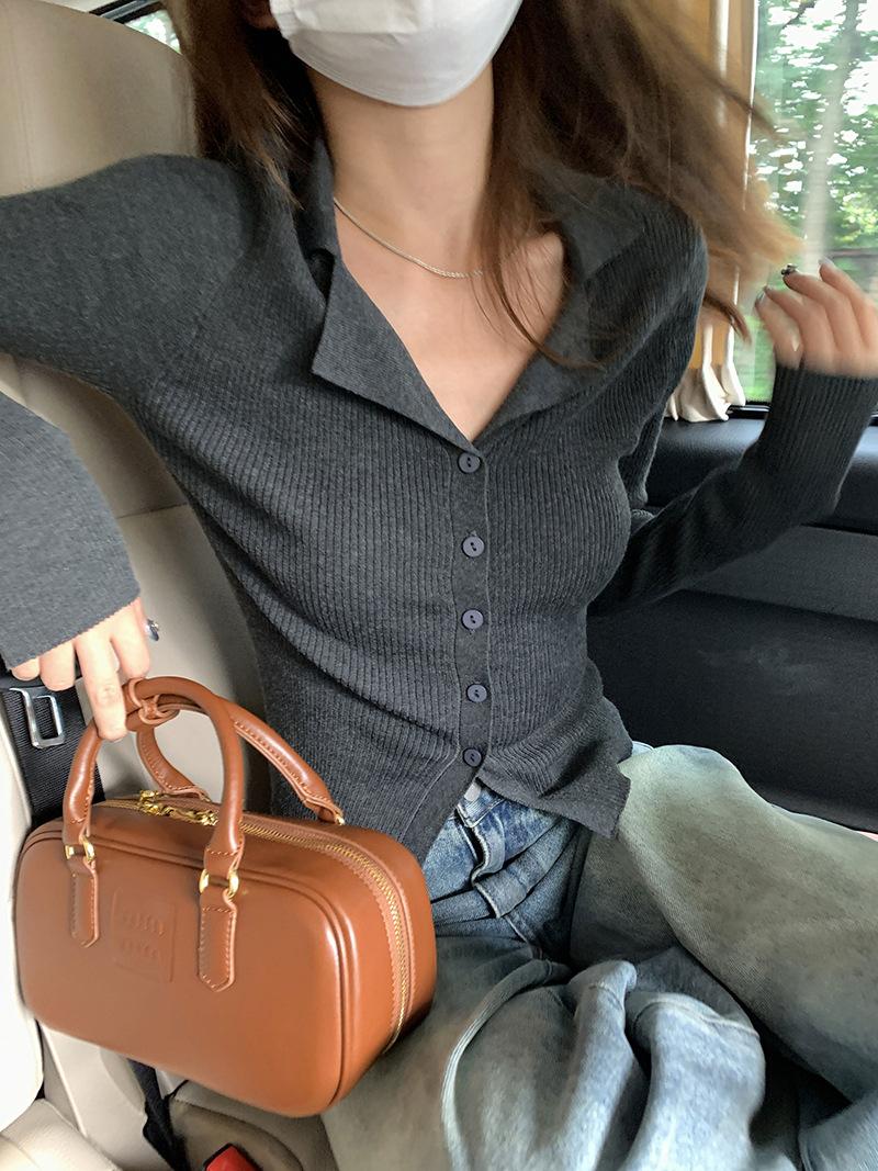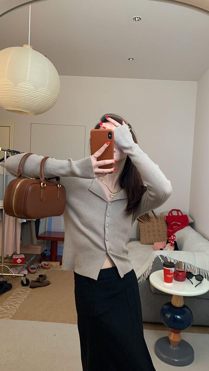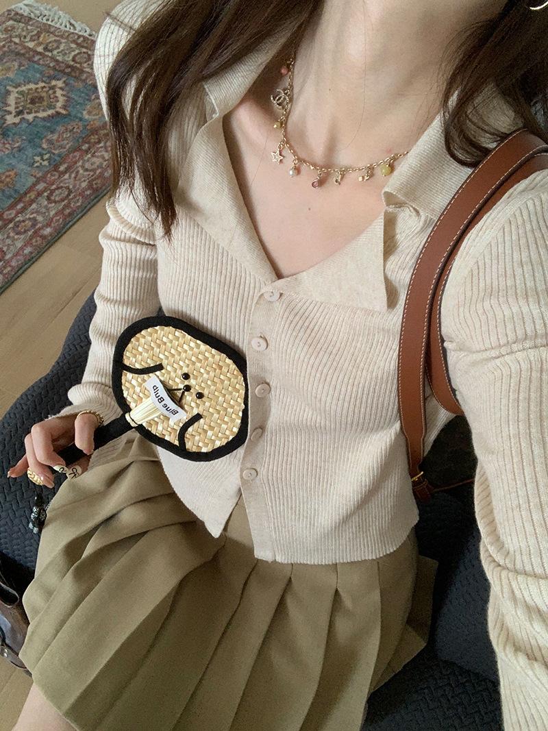 Cárdigan de punto con solapa de American Sweet Spice Girl, camiseta de manga larga, otoño e invierno, corte entallado, adelgazante, sexy, Pure Desire Top Ins