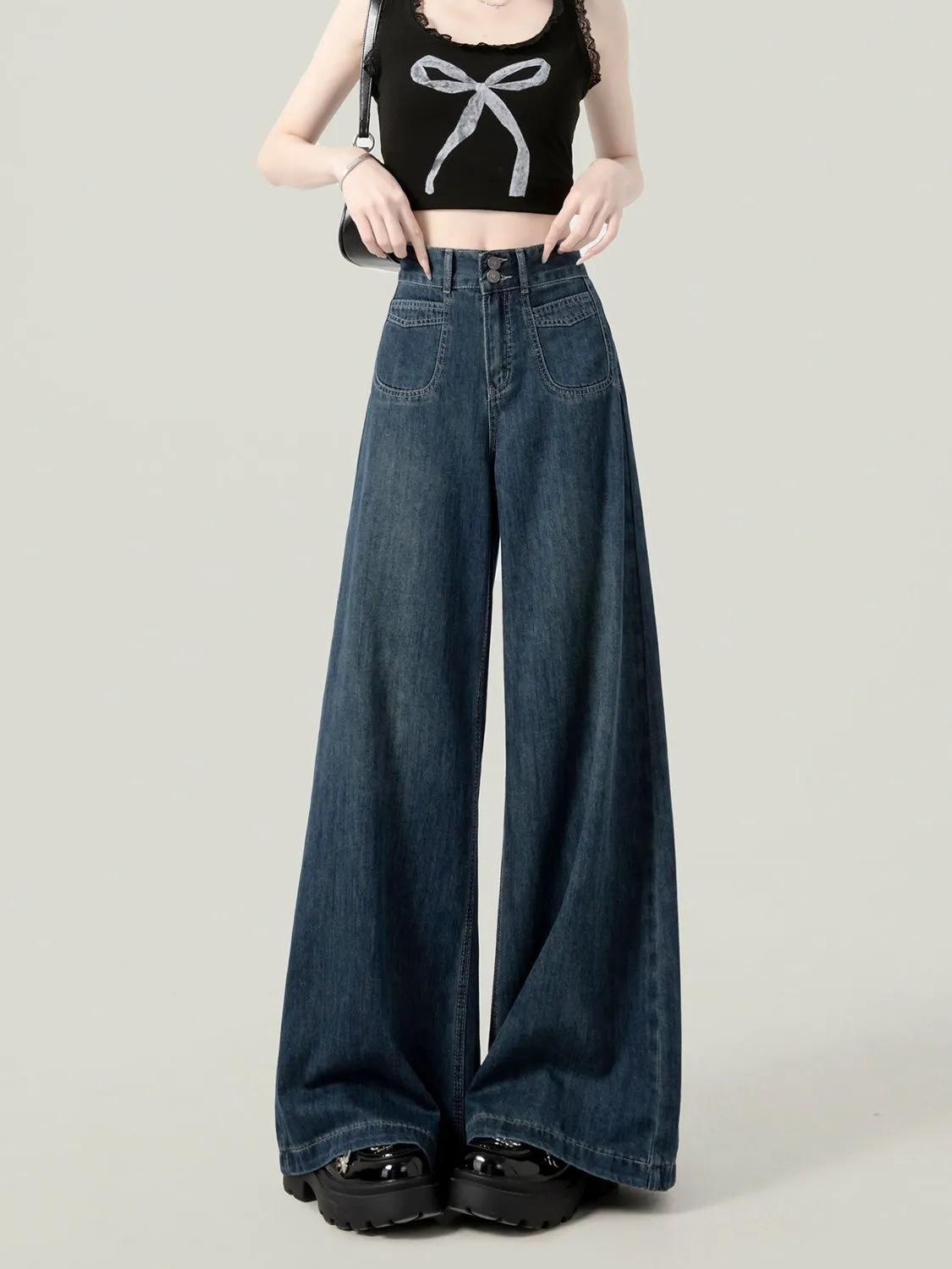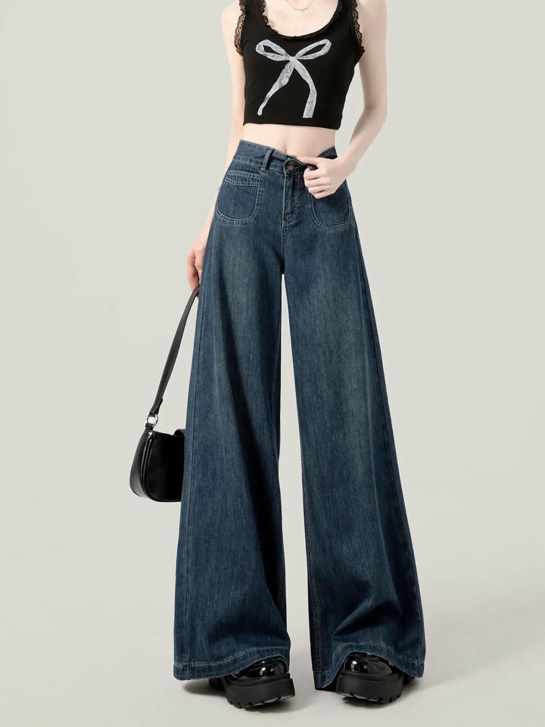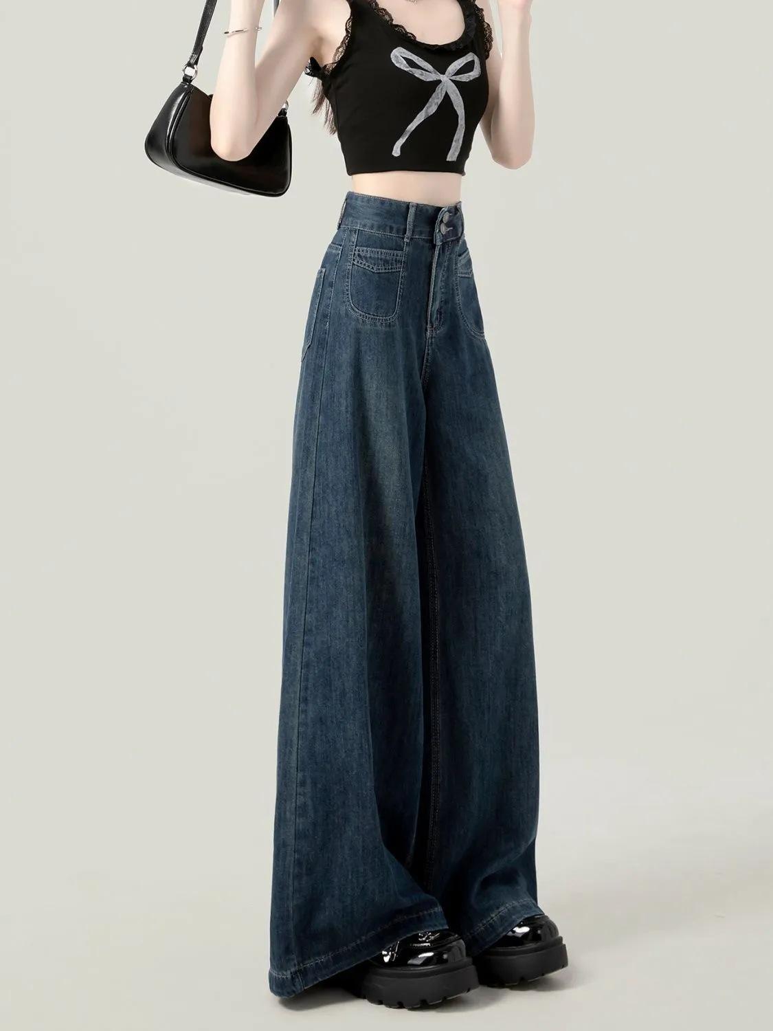 Pantalones vaqueros de pierna ancha y cintura alta estilo americano para mujer, primavera y otoño 2025, nuevos, retro, holgados y ajustados.