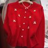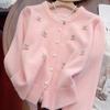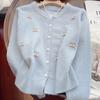 Cárdigan de punto de manga larga con cuello redondo estilo Chanel para mujer de principios de otoño de 2024.