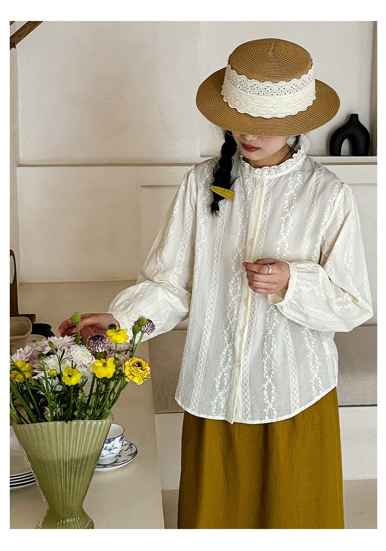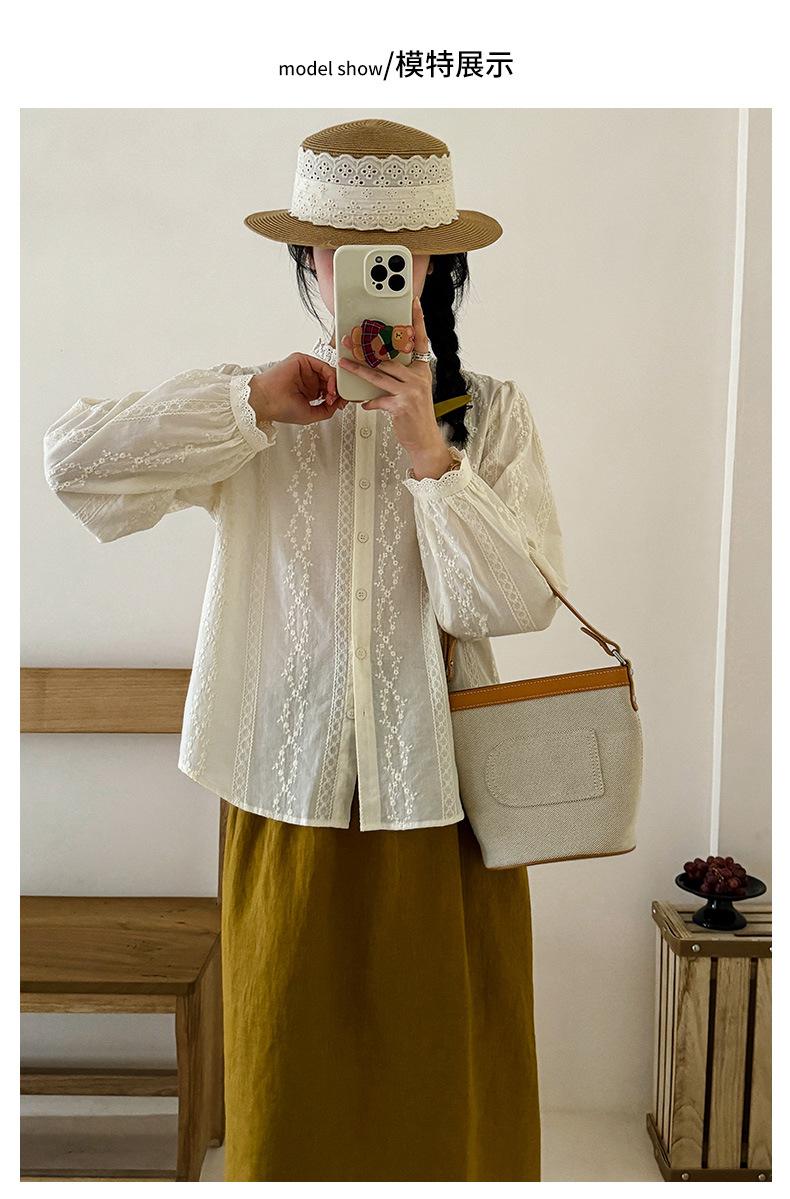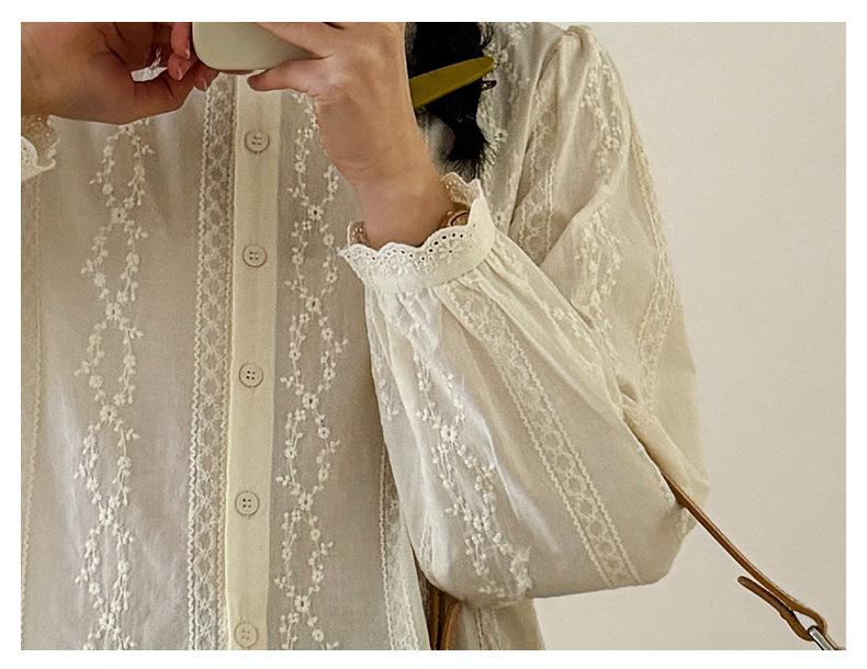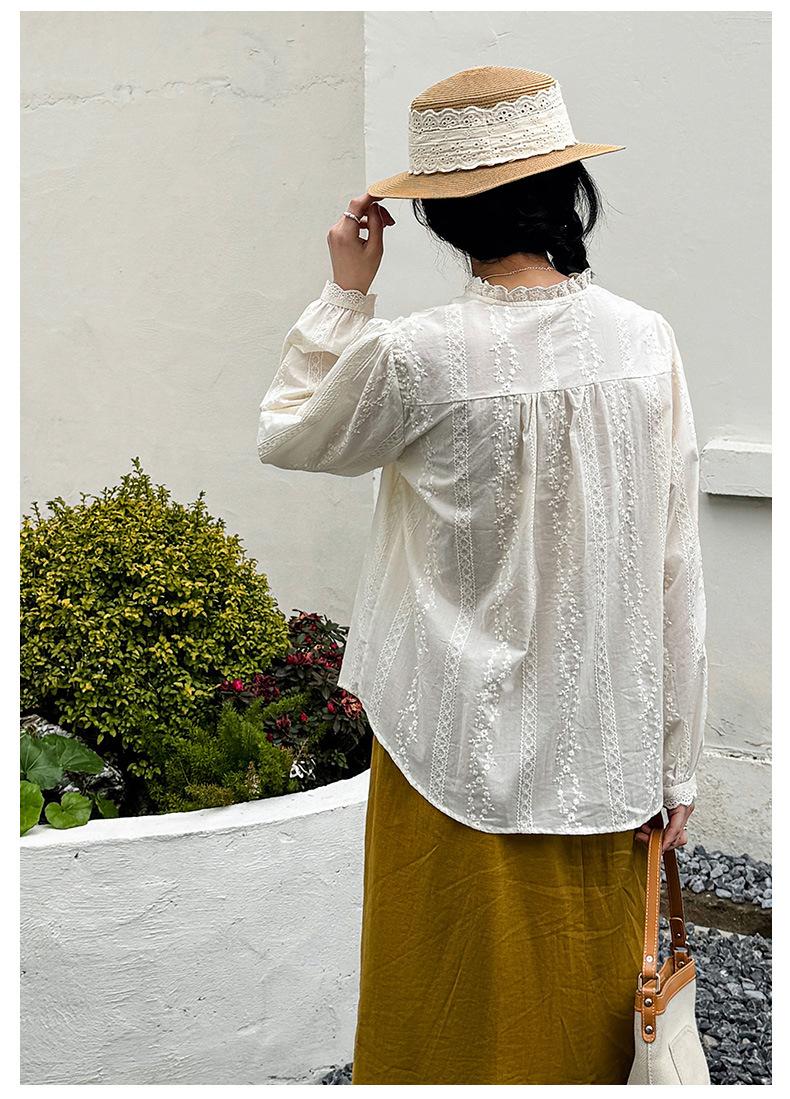 Venta Directa de Fábrica Camisa de Algodón Puro con Volantes Franceses para Mujer 2025 Otoño Nuevo Diseño Nicho con un Toque de Alta Gama