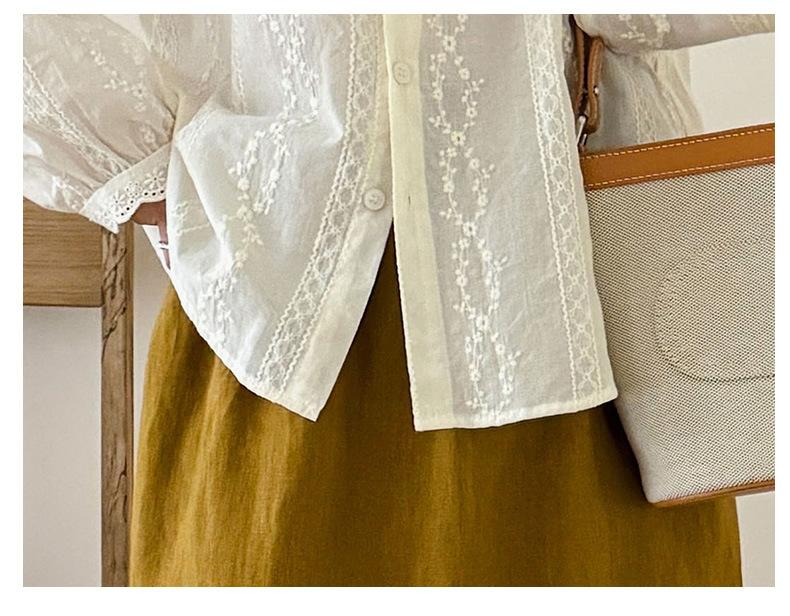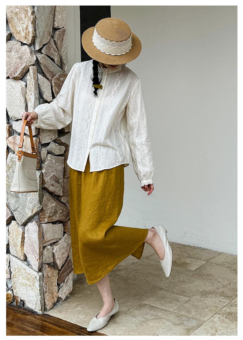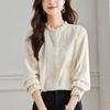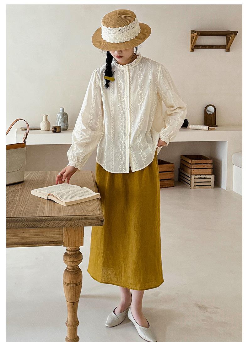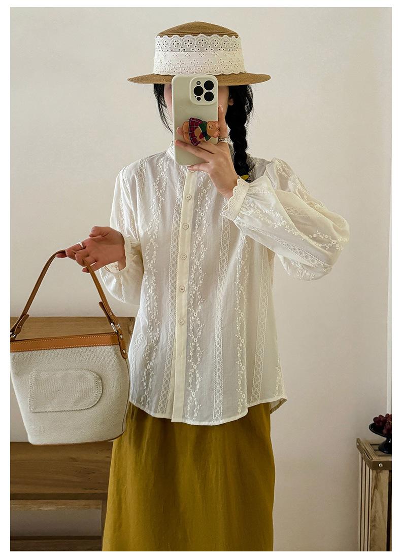 Venta Directa de Fábrica Camisa de Algodón Puro con Volantes Franceses para Mujer 2025 Otoño Nuevo Diseño Nicho con un Toque de Alta Gama