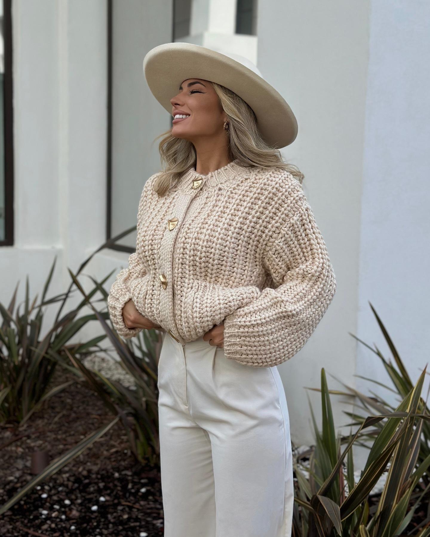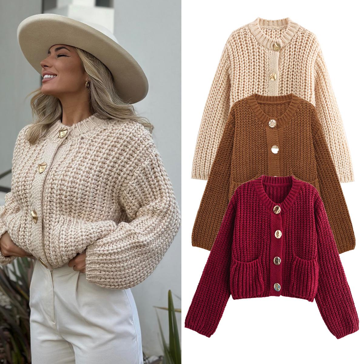 Comercio exterior 2025 primavera y otoño nueva moda europea y americana para mujer cuello redondo aguja gruesa manga larga suéter abrigo B62400